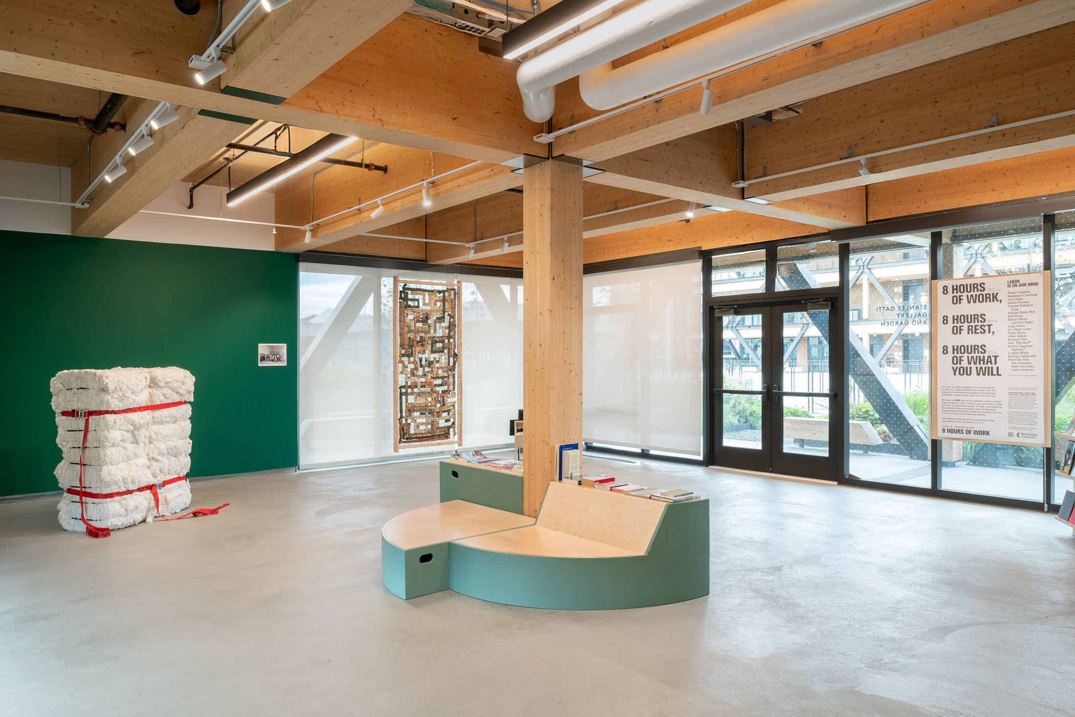 The first exhibition, 8 hours of work, brings together archival materials from the San Francisco Labor Archives, including ephemera from the California Labor School and photographs by Otto Hegel and Hansel Mieth, alongside works by artists Tania Candiani, Stephanie Comilang, Aria Dean, Harun Farocki, Adelita Husni-Bey, Josh Kline, Liz Magic Laser, Luigi Nono, Chantal Peñalosa Fong, Pedro Reyes, Kenneth Tam, Rodrigo Valenzuela, and Lindsey White.