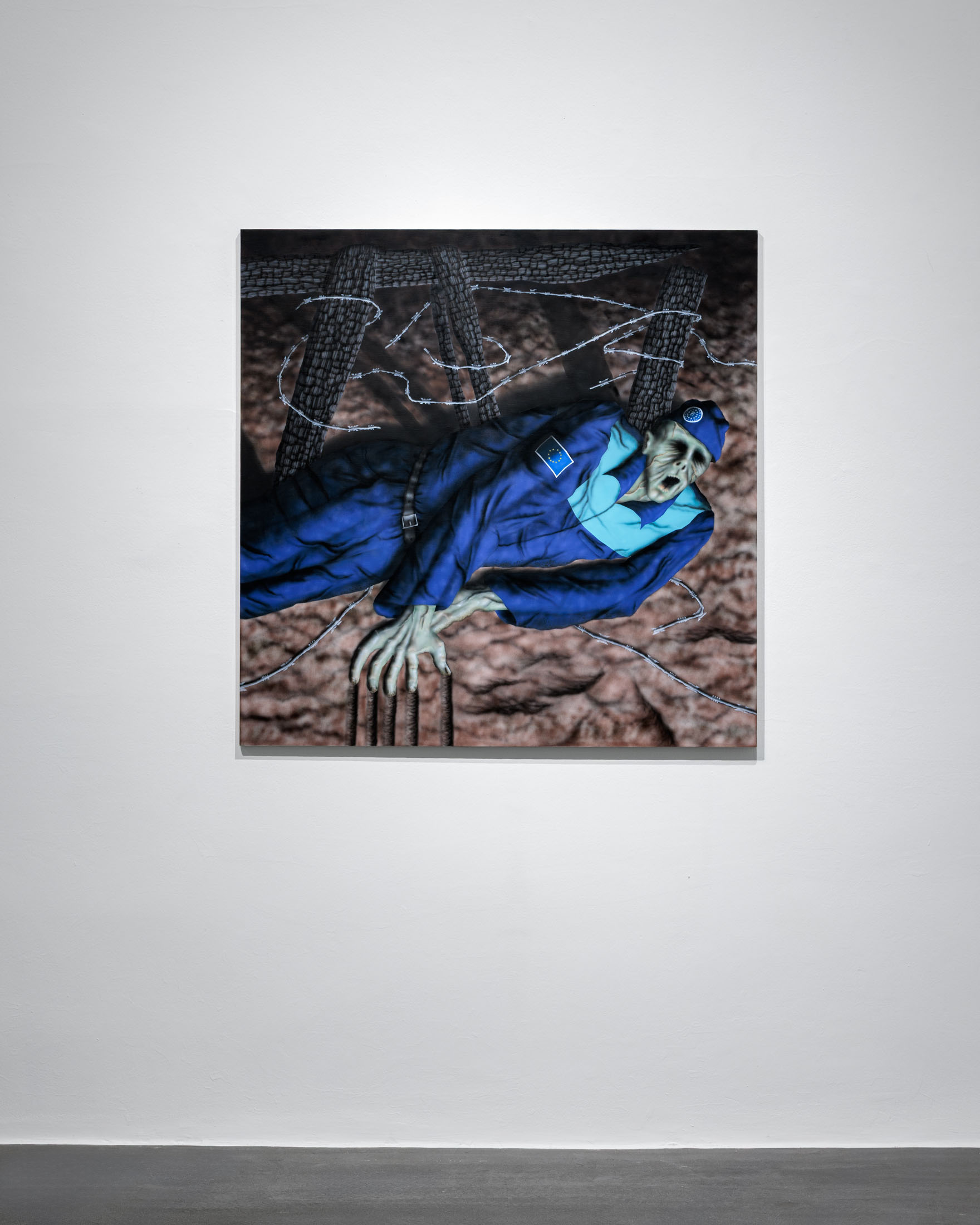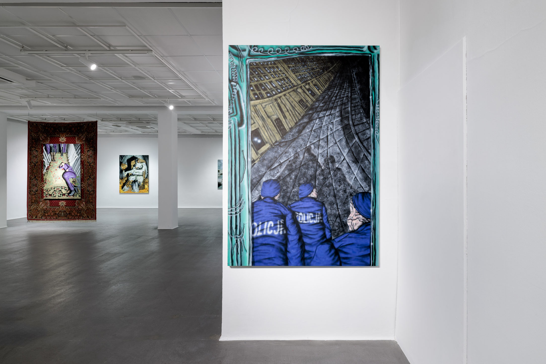 The exhibition of works by Adam Kozicki appears as a multi-layered story about two systems – the official and the domestic ones. It has been divided into three parts. The first part deals with the humanitarian crisis on the Polish-Belarusian border. The artist confronts the politics of closed doors, suspended rights and averted gazes. The works show not so much specific events as an atmosphere of withdrawal – a comfortable silence that is becoming the new language of social consent.