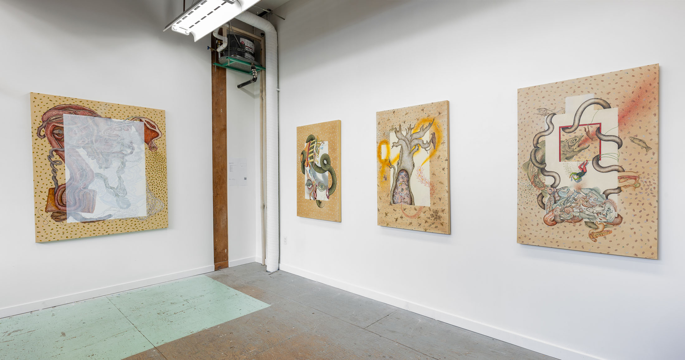 Zahak-nameh is an ongoing series of narrative paintings by Aileen Bahmanipour, initiated in Iran in 2012 and first exhibited at Vancouver’s grunt gallery in 2017. After a prolonged pause, she returned to the series in 2024, amid the unrelenting wars and systemic violences sweeping across the Middle East—conflicts sustained, in part, by the strategic complicity of Western powers, including Canada.