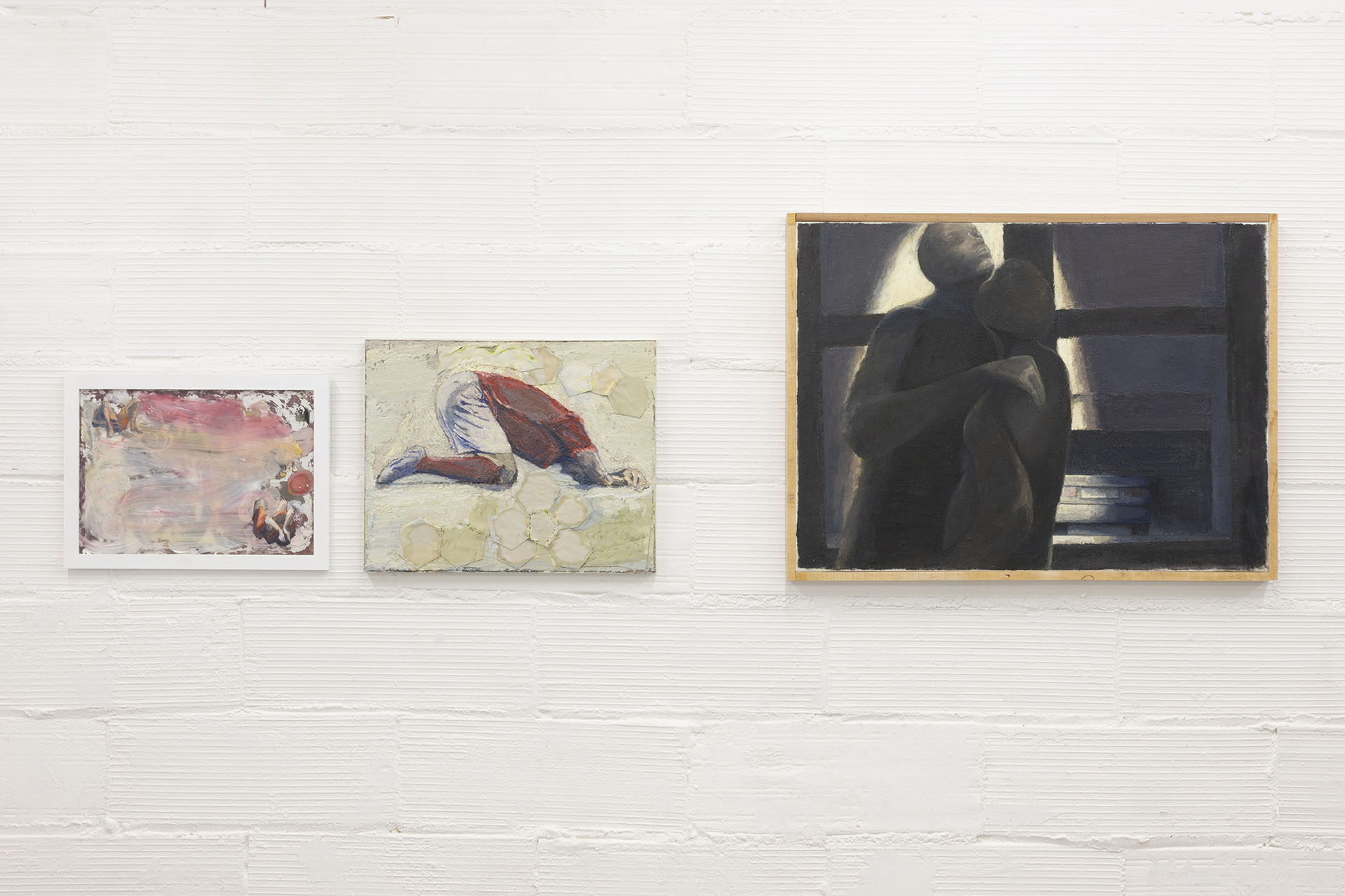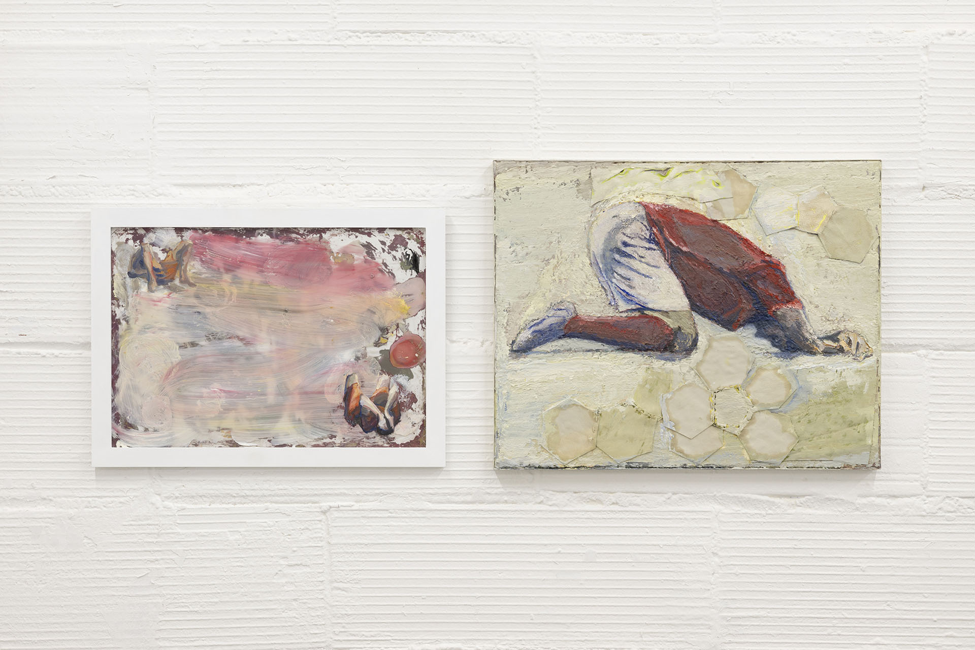 In the next room, there are two paintings of football players that have to do with embodying defeat in public. Images of defeated players have quite a smooth and fecund existence in the public sphere, in newspapers, TV or in children’s mythologies. There’s something dignified and exemplary about them. Since we’re clearly losing politically and socially, the artist is interested in these images that seem to give loss and shortcoming a place in public life, some traction, some lexicon, some gestural repertoire, somewhere to build on from.