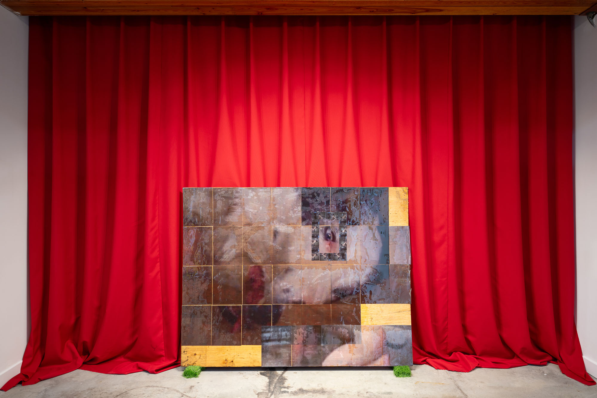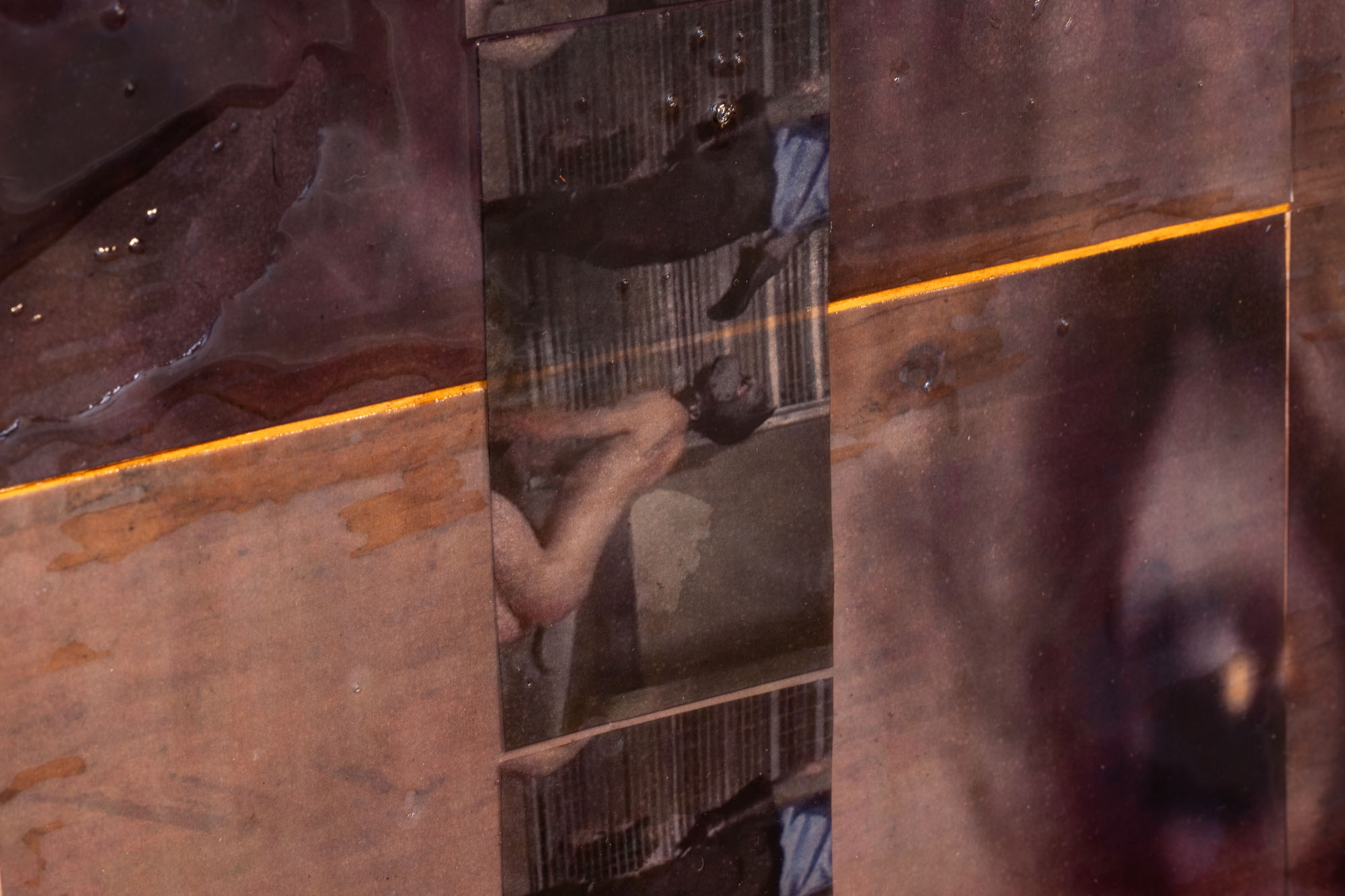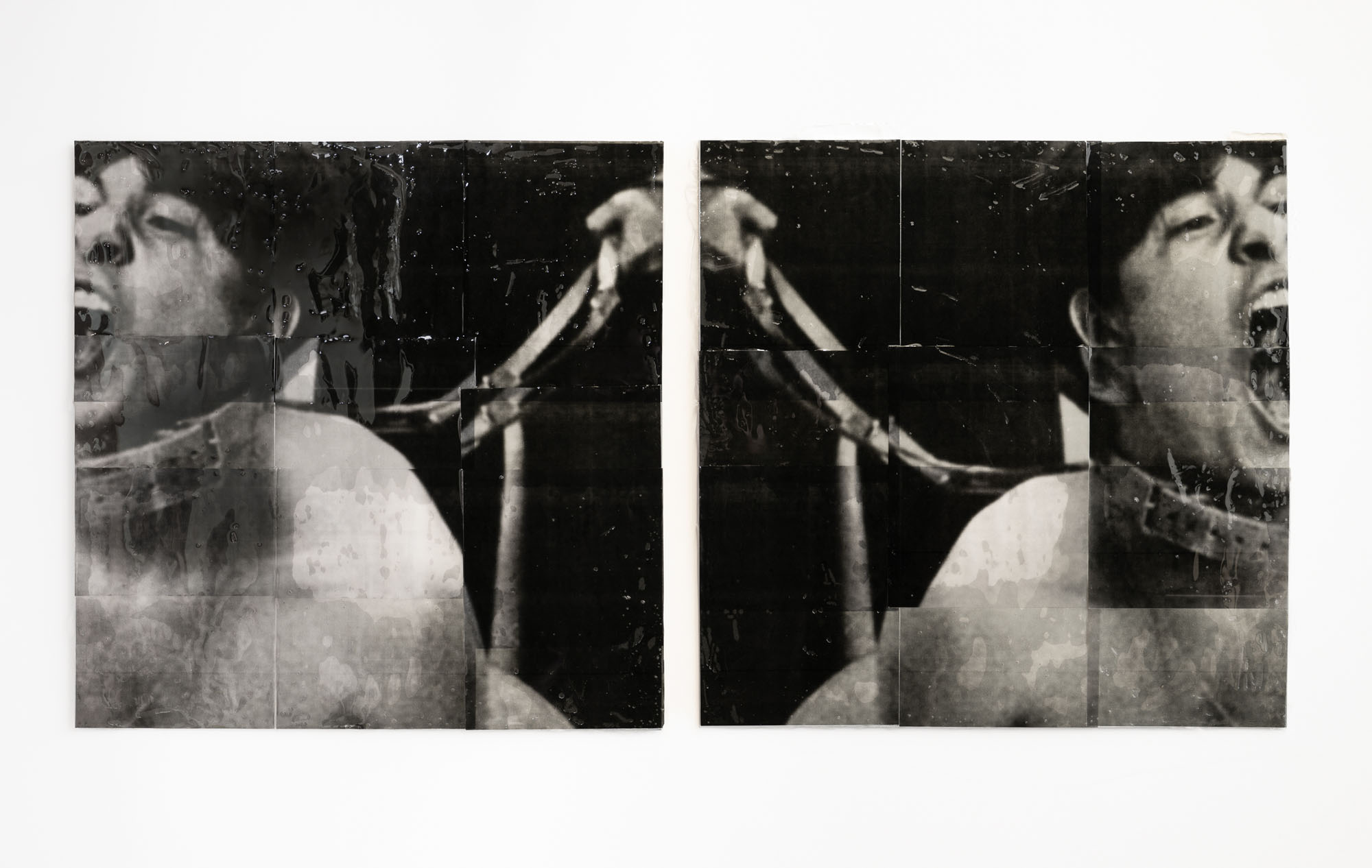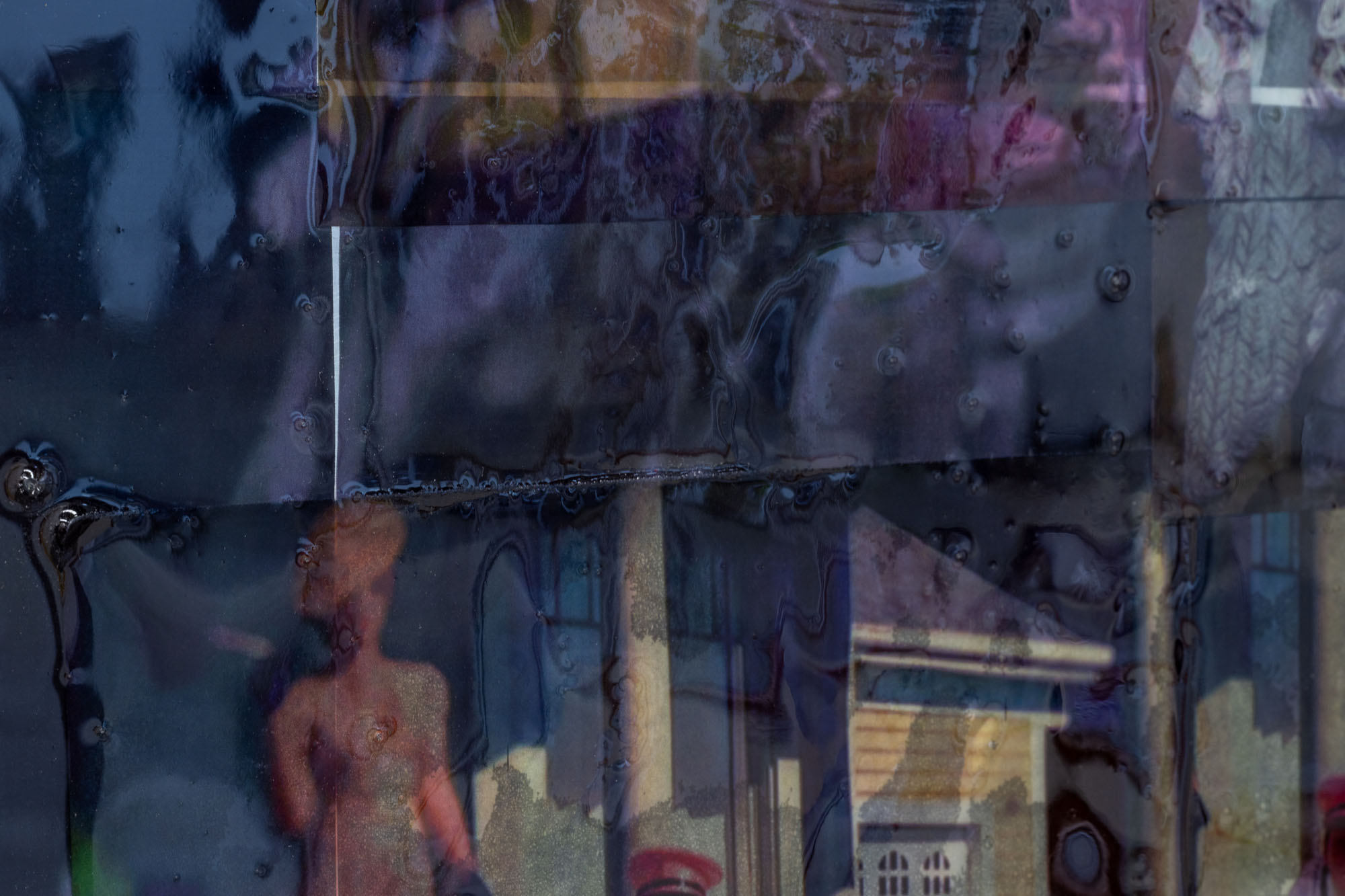 By interrogating how the subversion of power dynamics found in “pupspace” emerges in various film, contemporary art, and pop cultural sources, the works in this exhibition present themselves as fragmented photographs embedded within resin. Mounted on traditional hardware materials such as plywood, steel, drywall (some found and repurposed from construction sites), the forms reflect modes of construction and labour, while the images toy at questions of play, control, desire, and destruction within an image.