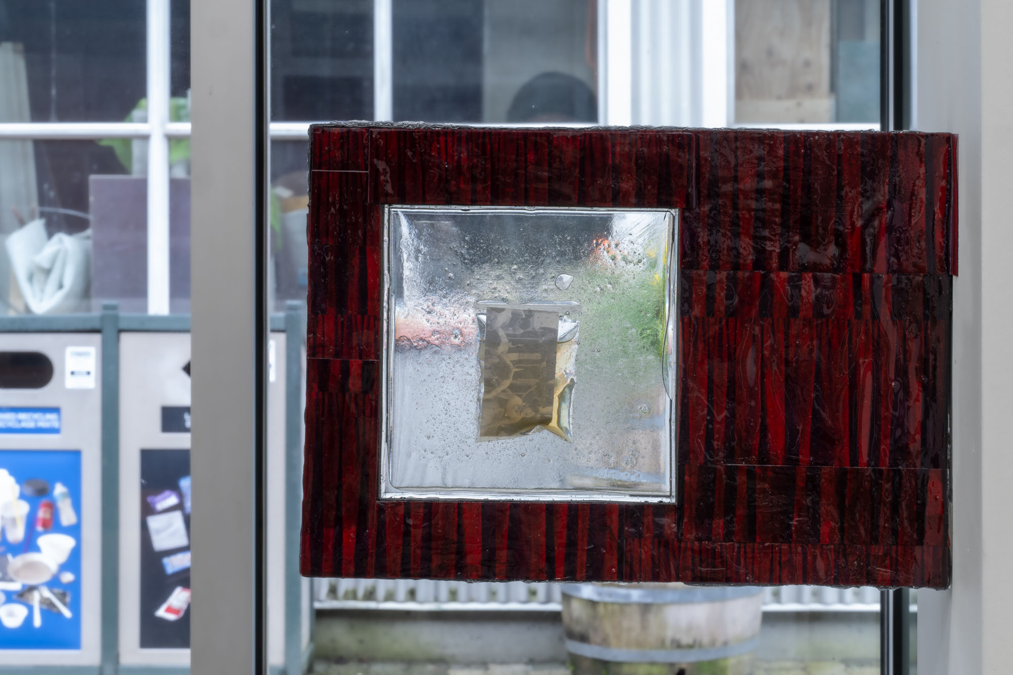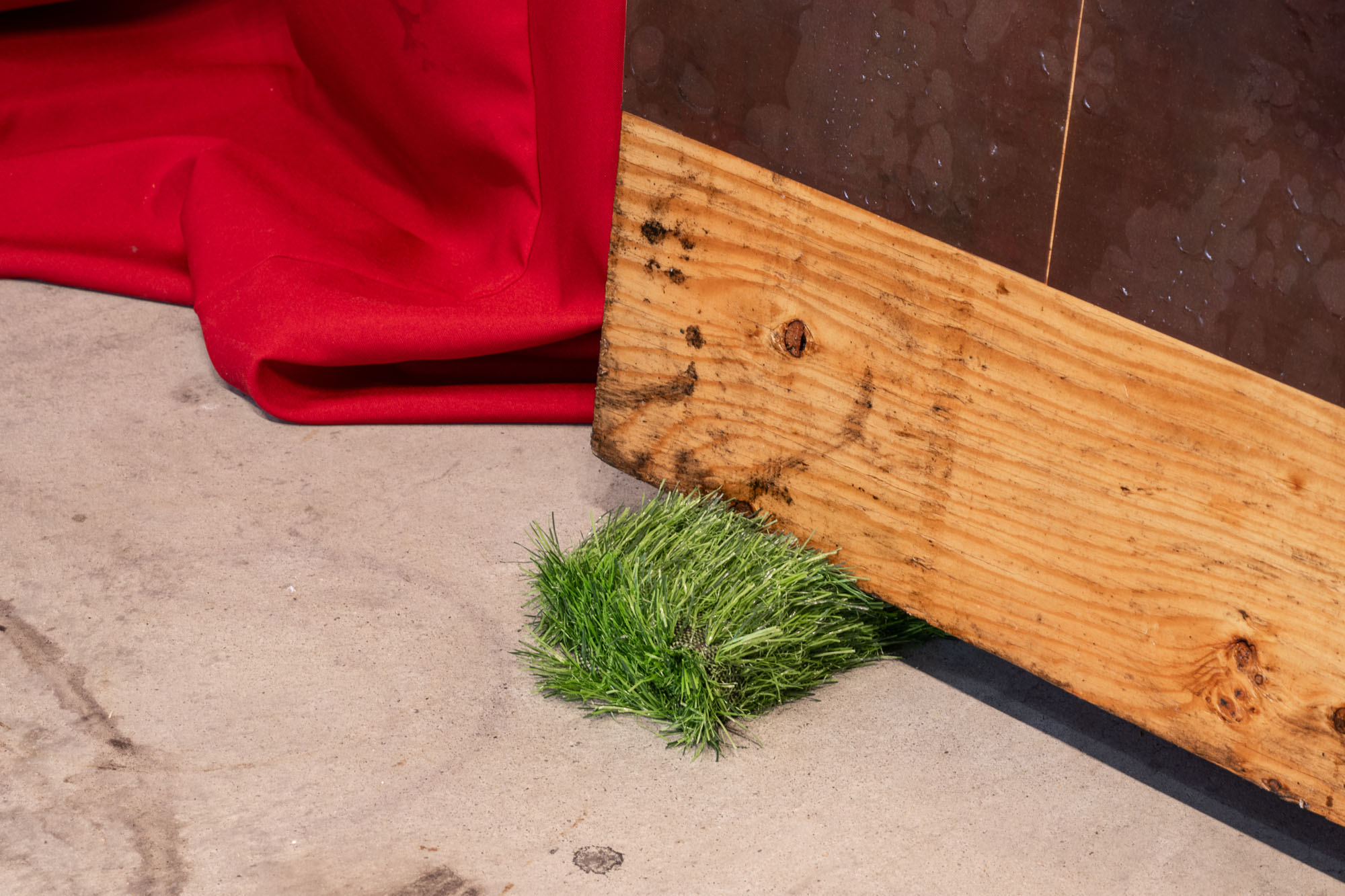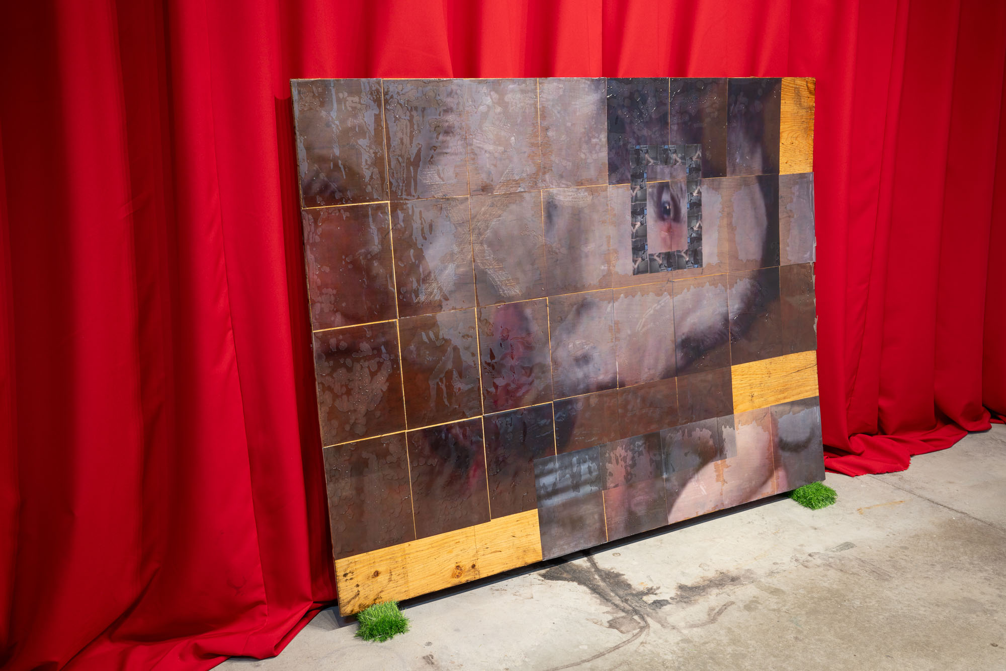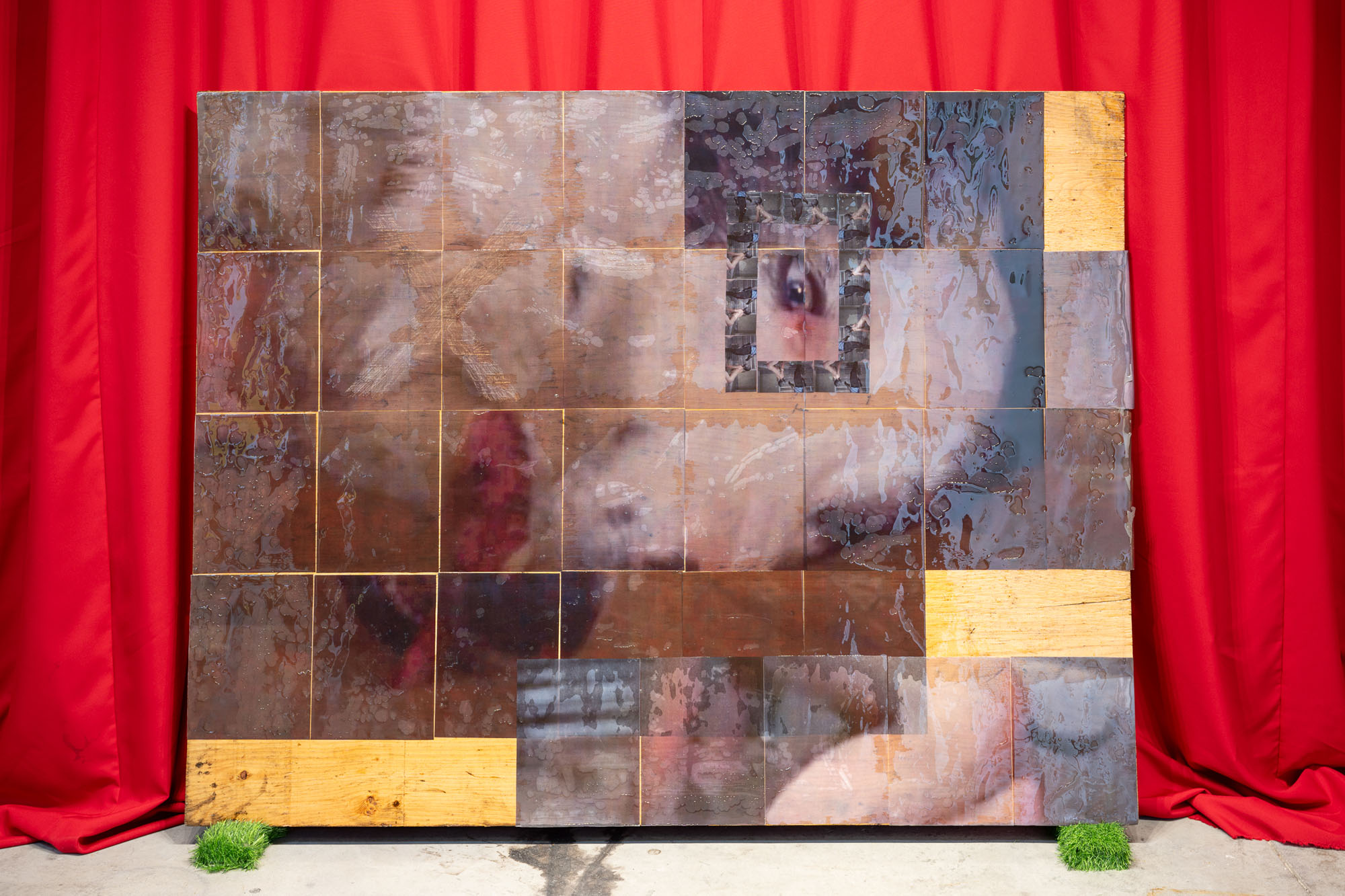 By interrogating how the subversion of power dynamics found in “pupspace” emerges in various film, contemporary art, and pop cultural sources, the works in this exhibition present themselves as fragmented photographs embedded within resin. Mounted on traditional hardware materials such as plywood, steel, drywall (some found and repurposed from construction sites), the forms reflect modes of construction and labour, while the images toy at questions of play, control, desire, and destruction within an image.