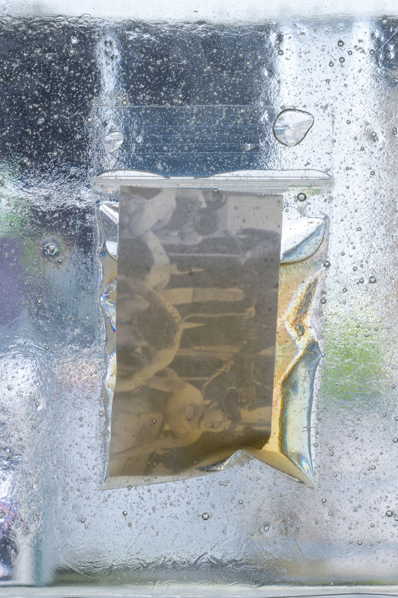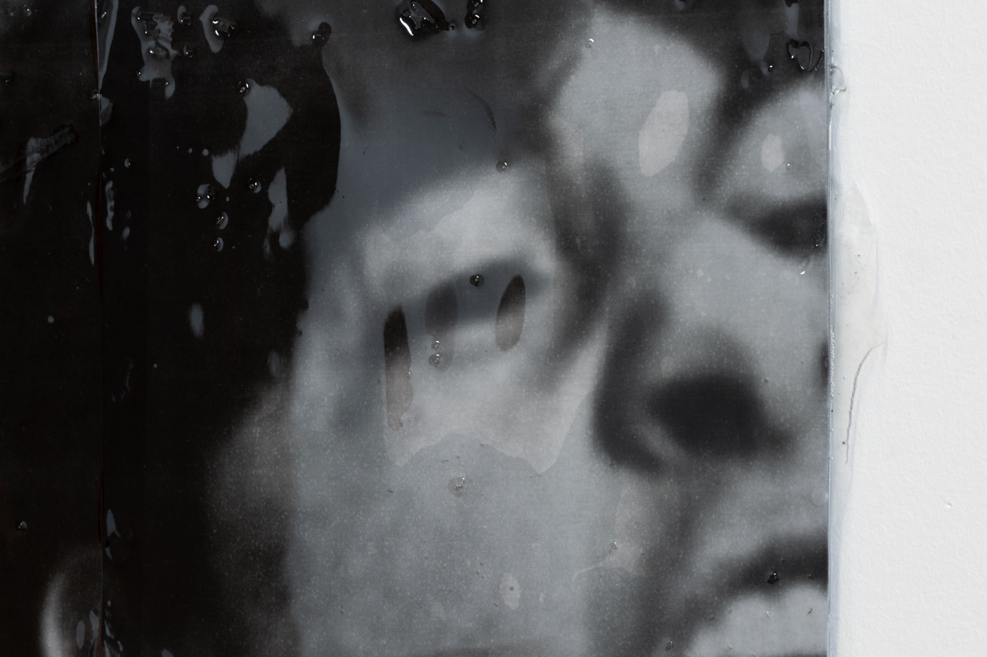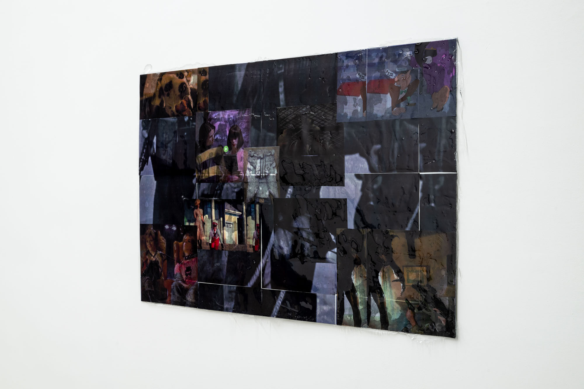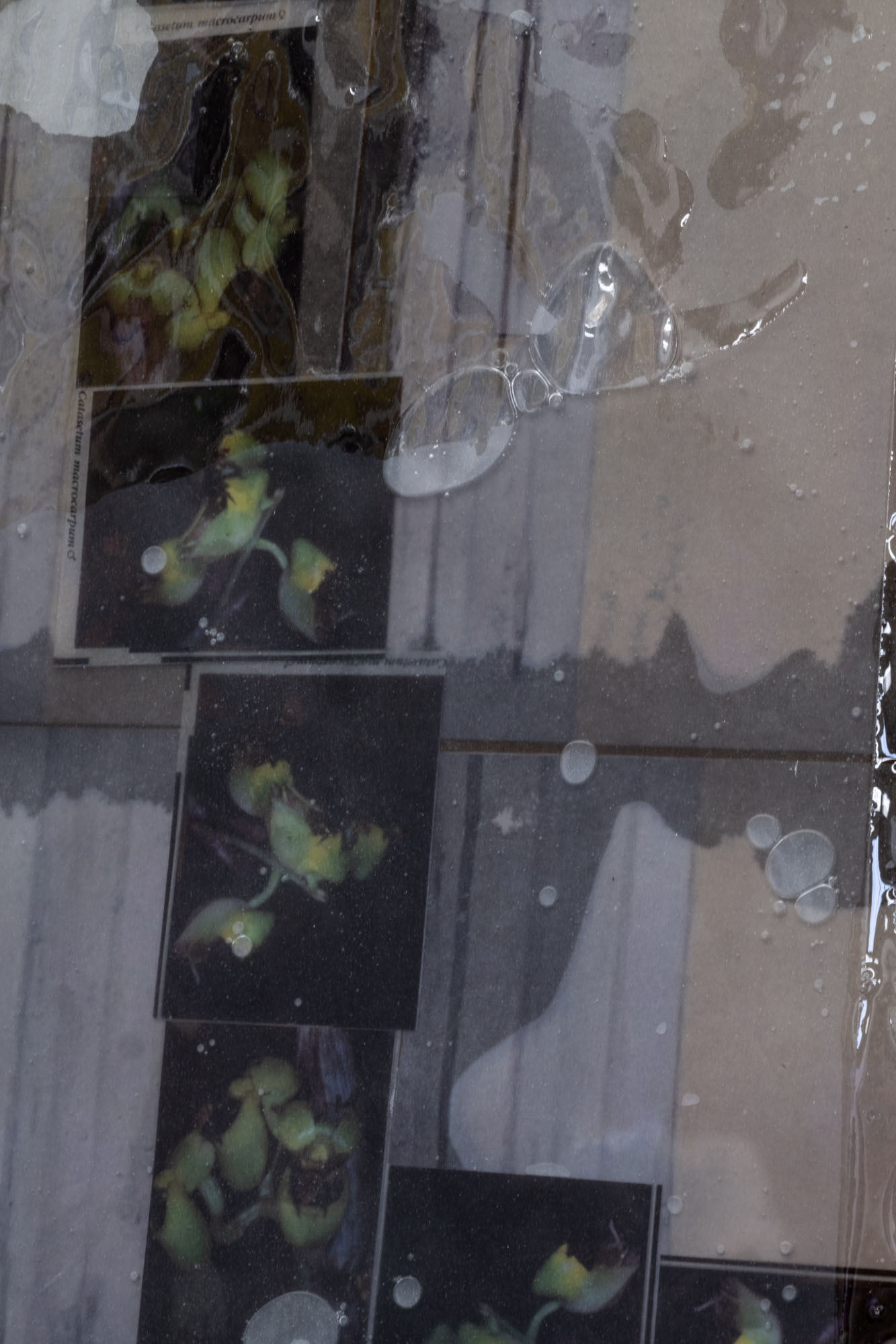Like the way a dog marks its territory, the images in A hound marks its spot absorb resin which is poured upon them, taking on a wet and fluid quality. The photographs position a dialogue between human/ non-human participants who engage in activities of work/play, to rupture capitalist narratives of dominance/submission.