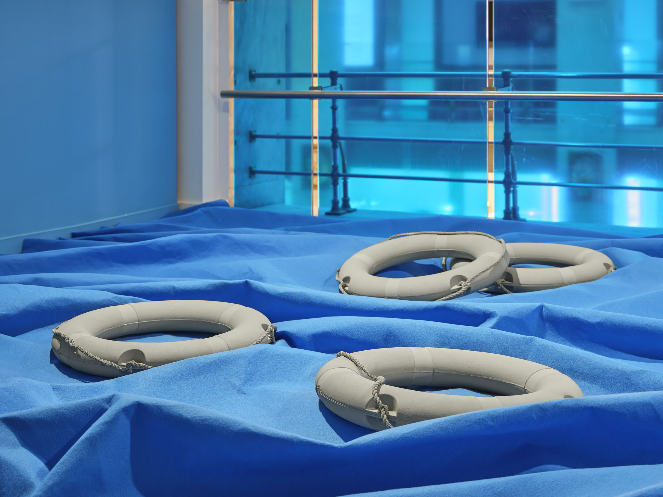 Almudena Lobera, Floating and Falling, 2025. Nautical buoys, salt, polyester resin, and white ropeAlmudena Lobera, Floating and Falling, 2025. Nautical buoys, salt, polyester resin, and white ropeAlmudena Lobera, Floating and Falling, 2025. Nautical buoys, salt, polyester resin, and white ropeAlmudena Lobera, Floating and Falling, 2025. Nautical buoys, salt, polyester resin, and white ropeAlmudena Lobera, The Bellaventura, 2025. 4K 16:9 single-channel video, color audio, 25 minutes (Spanish subtitles).Almudena Lobera, Take Long Take I, 2025. Pencil on paper. 70 x 50 cm. Grey stained wood frame and anti-reflective glassAlmudena Lobera, The Bellaventura, 2025. 4K 16:9 single-channel video, color audio, 25 minutes (Spanish subtitles)Almudena Lobera, Take Long Take III, 2025. Pencil on paper. 70 x 50 cm. Grey stained wood frame and anti-reflective glassAlmudena Lobera, The Weight of the Surface, 2025. Installation with oven-painted iron wall sculpture and lifebuoys with a cement finish, on carpet with foldsAlmudena Lobera, The Weight of the Surface, 2025. Detail. Lifebuoys with a cement finish, on carpet with foldsAlmudena Lobera, The Weight of the Surface, 2025. Detail. Lifebuoys with a cement finish, on carpet with foldsAlmudena Lobera, The Weight of the Surface, 2025. Detail. Lifebuoys with a cement finish, on carpet with foldsAlmudena Lobera, The Weight of the Surface, 2025. Detail. Lifebuoys with a cement finish, on carpet with foldsAlmudena Lobera, Melancholy and Restraint, 2025. Detail. Suspended sculpture of oven-painted iron tubesAlmudena Lobera, Melancholy and Restraint, 2025. Detail. Suspended sculpture of oven-painted iron tubesAlmudena Lobera, Melancholy and Restraint, 2025. Detail. Suspended sculpture of oven-painted iron tubesAlmudena Lobera, Melancholy and Restraint, 2025. Suspended sculpture of oven-painted iron tubes on a wooden structure, tiles, and waterAlmudena Lobera, Take Long Take V, 2025. Pencil on paper. 70 x 100 cm. Grey stained wood frame and anti-reflective glassAlmudena Lobera, Handwoven (Right), 2025. Embroidered towel on stainless steel swimming pool handrailAlmudena Lobera, Handwoven (Right), 2025. Embroidered towel on stainless steel swimming pool handrailAlmudena Lobera, Handwoven (Right), 2025. Embroidered towel on stainless steel swimming pool handrailAlmudena Lobera, Melancholy and Restraint, 2025. Detail. Suspended sculpture of oven-painted iron tubes on a wooden structure, tiles, and waterAlmudena Lobera, The Light in the Shadow is Blue, 2025. Installation of semi-transparent white fabrics printed in color at the bottom, tempered glass, and sand platformAlmudena Lobera, The Light in the Shadow is Blue, 2025. Installation of semi-transparent white fabrics printed in color at the bottom, tempered glass, and sand platformAlmudena Lobera, The Light in the Shadow is Blue, 2025. Installation of semi-transparent white fabrics printed in color at the bottom, tempered glass, and sand platformAlmudena Lobera, Vanishing Point, 2025. Stainless steel shower drain on glossy black acrylicAlmudena Lobera, Vanishing Point, 2025. Stainless steel shower drain on glossy black acrylicAlmudena Lobera, Abyssal Golden Reflection, 2025. Detail. Blue velvet curtainAlmudena Lobera, Abyssal Golden Reflection, 2025. Detail. Sculpture of expanded polystyrene and polyurethane with matte and glossy lacquer finish, circular base, and gathered blue velvet curtainAlmudena Lobera, Abyssal Golden Reflection, 2025. Detail. Sculpture of expanded polystyrene and polyurethane with matte and glossy lacquer finish, circular base, and gathered blue velvet curtainAlmudena Lobera, Abyssal Golden Reflection, 2025. Detail. Sculpture of expanded polystyrene and polyurethane with matte and glossy lacquer finish, circular base, and gathered blue velvet curtainAlmudena Lobera, Abyssal Golden Reflection, 2025. Detail. Sculpture of expanded polystyrene and polyurethane with matte and glossy lacquer finish, circular base, and gathered blue velvet curtainAlmudena Lobera, Abyssal Golden Reflection, 2025. Detail. Sculpture of expanded polystyrene and polyurethane with matte and glossy lacquer finish, circular base, and gathered blue velvet curtainAlmudena Lobera, Abyssal Golden Reflection, 2025. Detail. Sculpture of expanded polystyrene and polyurethane with matte and glossy lacquer finish, circular base, and gathered blue velvet curtainAlmudena Lobera, Blue is the Light in the Shadow, 2025. Installation of semi-transparent white fabrics printed in color at the bottom, tempered glass, and sand platformAlmudena Lobera, Blue is the Light in the Shadow, 2025. Installation of semi-transparent white fabrics printed in color at the bottom, tempered glass, and sand platformAlmudena Lobera, Blue is the Light in the Shadow, 2025. Installation of semi-transparent white fabrics printed in color at the bottom, tempered glass, and sand platformAlmudena Lobera, Blue is the Light in the Shadow, 2025. Installation of semi-transparent white fabrics printed in color at the bottom, tempered glass, and sand platformAlmudena Lobera, Immersive Reading, 2025. Sculpture of 15 soaked and dyed books with covers drawn in oil pastel and oil on paper, stacked on a glass baseAlmudena Lobera, Immersive Reading, 2025. Sculpture of 15 soaked and dyed books with covers drawn in oil pastel and oil on paper, stacked on a glass baseAlmudena Lobera, Handwoven (Left), 2025. Embroidered towel on stainless steel swimming pool handrailAlmudena Lobera, Handwoven (Left), 2025. Embroidered towel on stainless steel swimming pool handrailAlmudena Lobera, Restraint and Melancholy, 2025. Suspended sculpture of oven-painted iron tubes on a wooden structure, tiles, and waterAlmudena Lobera, Take Long Take VI, 2025. Pencil on paper. 100 x 70 cm. Grey stained wood frame and anti-reflective glassAlmudena Lobera, Restraint and Melancholy, 2025. Suspended sculpture of oven-painted iron tubes on a wooden structure, tiles, and water. Parallel Orbits, 2025. Installat