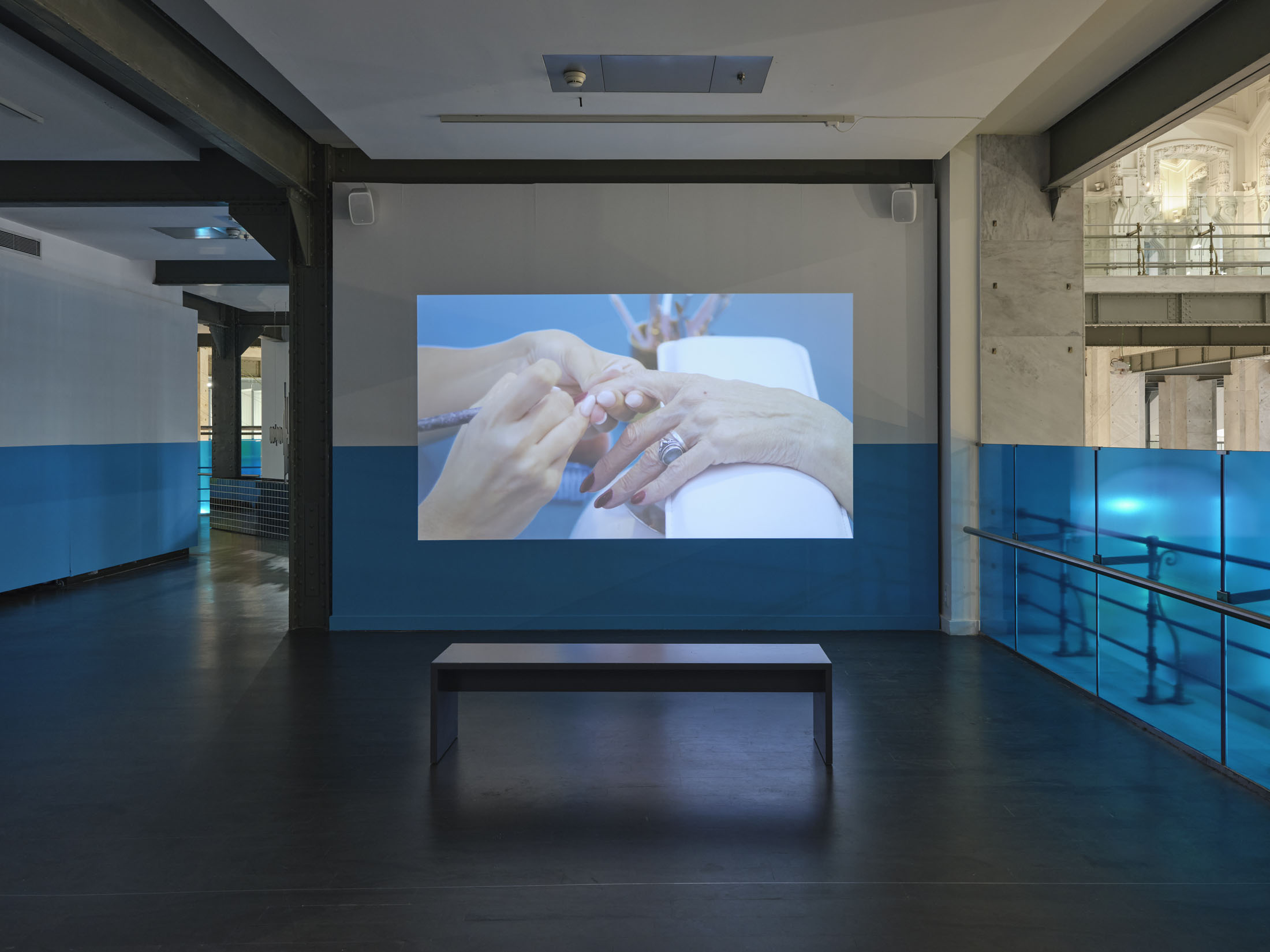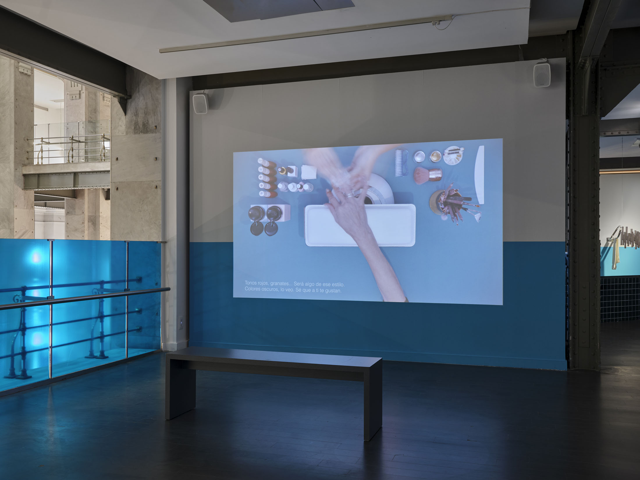 Take Long Take (Secuencia Plano Secuencia in Spanish) is a site-specific exhibition by Almudena Lobera, conceived for the third floor of CentroCentro in Madrid. Inspired by the symmetrical, horseshoe-shaped architecture of the Palacio de Cibeles, the exhibition offers a mirrored journey, in which visitors move continuously through the space, much like a cinematic long take.