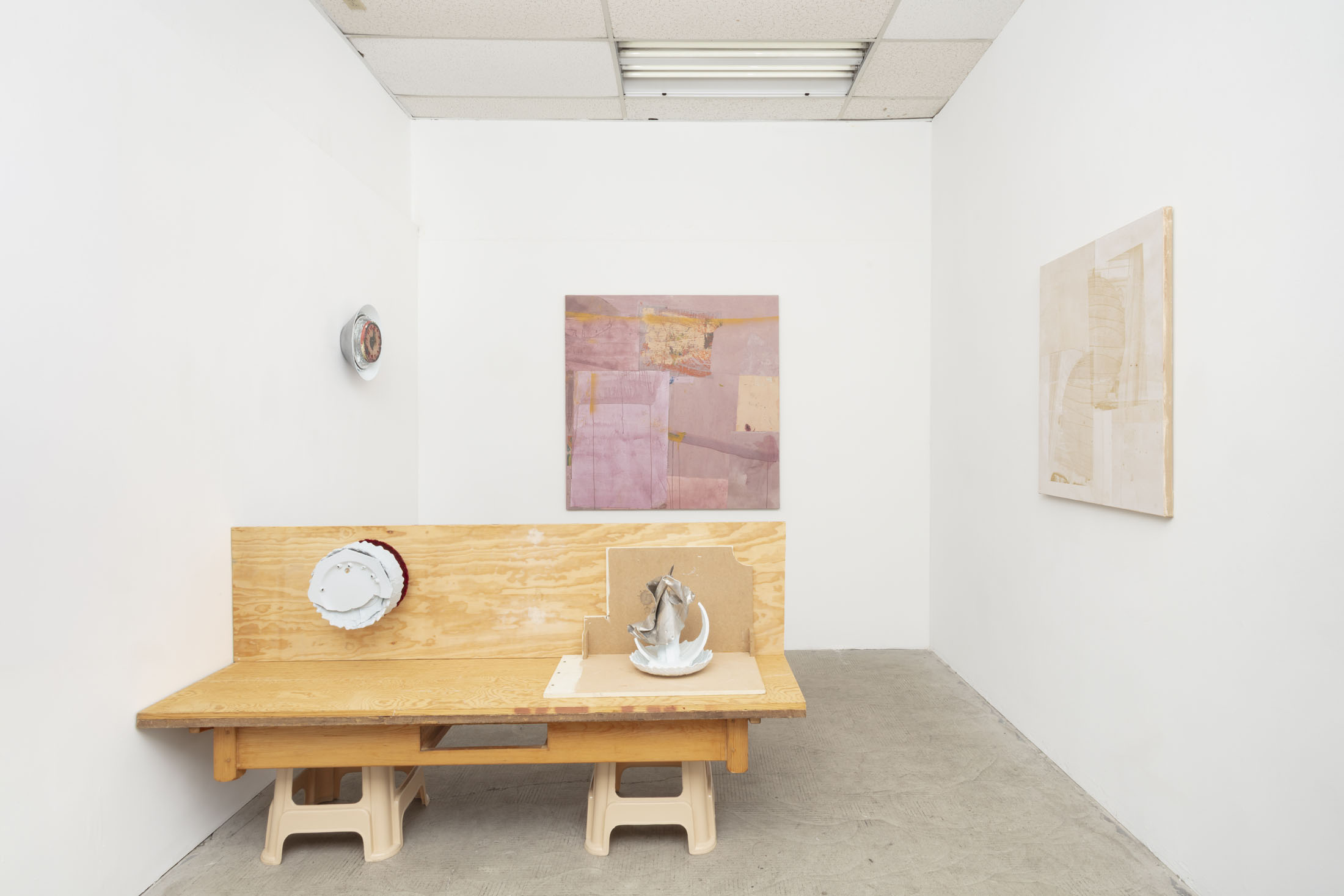 Gus Thompson, Looking for Emoji, 2026, exhibition view, Gene’s Dispensary, Los AngelesGus Thompson, Looking for Emoji, 2026, exhibition view, Gene’s Dispensary, Los AngelesGus Thompson, Looking for Emoji, 2026, exhibition view, Gene’s Dispensary, Los AngelesGus Thompson, Looking for Emoji, 2026, exhibition view, Gene’s Dispensary, Los AngelesGus Thompson, Looking for Emoji, 2026, exhibition view, Gene’s Dispensary, Los AngelesGus Thompson, Looking for Emoji, 2026, exhibition view, Gene’s Dispensary, Los AngelesGus Thompson, Looking for Emoji, 2026, exhibition view, Gene’s Dispensary, Los AngelesAndy Meerow, Mull, Various pigments, spray paint, paper, and polymer medium on canvas, 48 x 48 inches, 2026Andy Meerow, Filter, Various pigments, coffee, spray paint, paper, and polymer medium on canvas, 48 x 48 inches, 2026Gus Thompson, Looking for Emoji, 2026, exhibition view, Gene’s Dispensary, Los AngelesGus Thompson, Looking for Emoji, 2026, exhibition view, Gene’s Dispensary, Los AngelesGus Thompson, Looking for Emoji, 2026, exhibition view, Gene’s Dispensary, Los AngelesGus Thompson, Looking for Emoji, 2026, exhibition view, Gene’s Dispensary, Los AngelesGus Thompson, Looking for Emoji, 2026, exhibition view, Gene’s Dispensary, Los AngelesGus Thompson, Looking for Emoji, 2026, exhibition view, Gene’s Dispensary, Los AngelesAndy Meerow, Wedge, Acrylic, screenprint, paper, and polymer medium on canvas, 36 x 36 inches, 2026Andy Meerow, Nest, Screenprint, coffee, paper, and polymer medium on canvas, 31 x 32 inches, 2026Gus Thompson, Sculpturalismo II, Dansk aluminum bowl, barnacle, aluminum cast, found plates, steel pellets, plaster, oil, enamel, epoxy, and resin, 13.5 x 13.5 x 3.75 inches, 2022-2026Gus Thompson, The paradigm that table built, Wood, MDF, paper, canvas board, inkjet prints, LaserJet prints, aluminum, cardboard, barnacles, linen, found plate, oil, acrylic, cloth lamp shade, foam core, glue, hardware, wood putty, and plastic stools, dimensions variable, 2017-2026Gus Thompson, The paradigm that table built, Wood, MDF, paper, canvas board, inkjet prints, LaserJet prints, aluminum, cardboard, barnacles, linen, found plate, oil, acrylic, cloth lamp shade, foam core, glue, hardware, wood putty, and plastic stools, dimensions variable, 2017-2026Gus Thompson, The paradigm that table built, Wood, MDF, paper, canvas board, inkjet prints, LaserJet prints, aluminum, cardboard, barnacles, linen, found plate, oil, acrylic, cloth lamp shade, foam core, glue, hardware, wood putty, and plastic stools, dimensions variable, 2017-2026Gus Thompson, The paradigm that table built, Wood, MDF, paper, canvas board, inkjet prints, LaserJet prints, aluminum, cardboard, barnacles, linen, found plate, oil, acrylic, cloth lamp shade, foam core, glue, hardware, wood putty, and plastic stools, dimensions variable, 2017-2026Gus Thompson, The paradigm that table built, Wood, MDF, paper, canvas board, inkjet prints, LaserJet prints, aluminum, cardboard, barnacles, linen, found plate, oil, acrylic, cloth lamp shade, foam core, glue, hardware, wood putty, and plastic stools, dimensions variable, 2017-2026Gus Thompson, The paradigm that table built, Wood, MDF, paper, canvas board, inkjet prints, LaserJet prints, aluminum, cardboard, barnacles, linen, found plate, oil, acrylic, cloth lamp shade, foam core, glue, hardware, wood putty, and plastic stools, dimensions variable, 2017-2026Gus Thompson, The paradigm that table built, Wood, MDF, paper, canvas board, inkjet prints, LaserJet prints, aluminum, cardboard, barnacles, linen, found plate, oil, acrylic, cloth lamp shade, foam core, glue, hardware, wood putty, and plastic stools, dimensions variable, 2017-2026Gus Thompson, The paradigm that table built, Wood, MDF, paper, canvas board, inkjet prints, LaserJet prints, aluminum, cardboard, barnacles, linen, found plate, oil, acrylic, cloth lamp shade, foam core, glue, hardware, wood putty, and plastic stools, dimensions variable, 2017-2026Gus Thompson, Sculpturalismo I, Plaster, oil, sand, aluminum cast, marbles, linen, hardware, epoxy, and resin, 11 x 13.5 x 7 inches, 2017-2026Gus Thompson, Sculpturalismo I, Plaster, oil, sand, aluminum cast, marbles, linen, hardware, epoxy, and resin, 11 x 13.5 x 7 inches, 2017-2026Gus Thompson, Sculpturalismo I, Plaster, oil, sand, aluminum cast, marbles, linen, hardware, epoxy, and resin, 11 x 13.5 x 7 inches, 2017-2026Gus Thompson, The paradigm that table built, Wood, MDF, paper, canvas board, inkjet prints, LaserJet prints, aluminum, cardboard, barnacles, linen, found plate, oil, acrylic, cloth lamp shade, foam core, glue, hardware, wood putty, and plastic stools, dimensions variable, 2017-2026Gus Thompson, The paradigm that table built, Wood, MDF, paper, canvas board, inkjet prints, LaserJet prints, aluminum, cardboard, barnacles, linen, found plate, oil, acrylic, cloth lamp shade, foam core, glue, hardware, wood putty, and plastic stools, dimensions variable, 2017-2026Gus Thompson, The paradigm that table built, Wood, MDF, paper, canvas board, inkjet prints, LaserJet prints, aluminum, cardboard, barnacles, linen, found plate, oil, acrylic, cloth lamp shade, foam core, glue, hardware, wood putty, and plastic stools, dimensions variable, 2017-2026Gus Thompson, The paradigm that table built, Wood, MDF, paper, canvas board, inkjet prints, LaserJet prints, aluminum, cardboard, barnacles, linen, found plate, oil, acrylic, cloth lamp shade, foam core, glue, hardware, wood putty, and plastic stools, dimensions variable, 2017-2026Gus Thompson, The paradigm that table built, Wood, MDF, paper, canvas board, inkjet prints, LaserJet prints, aluminum, cardboard, barnacles, linen, found plate, oil, acrylic, cloth lamp shade, foam core, glue, hardware, wood putty, and plastic stools, dimensions variable, 2017-2026Gus Thompson, The paradigm that table built, Wood, MDF, paper, canvas board, inkjet prints, LaserJet prints, aluminum, cardboard, barnacles, linen, found plate,