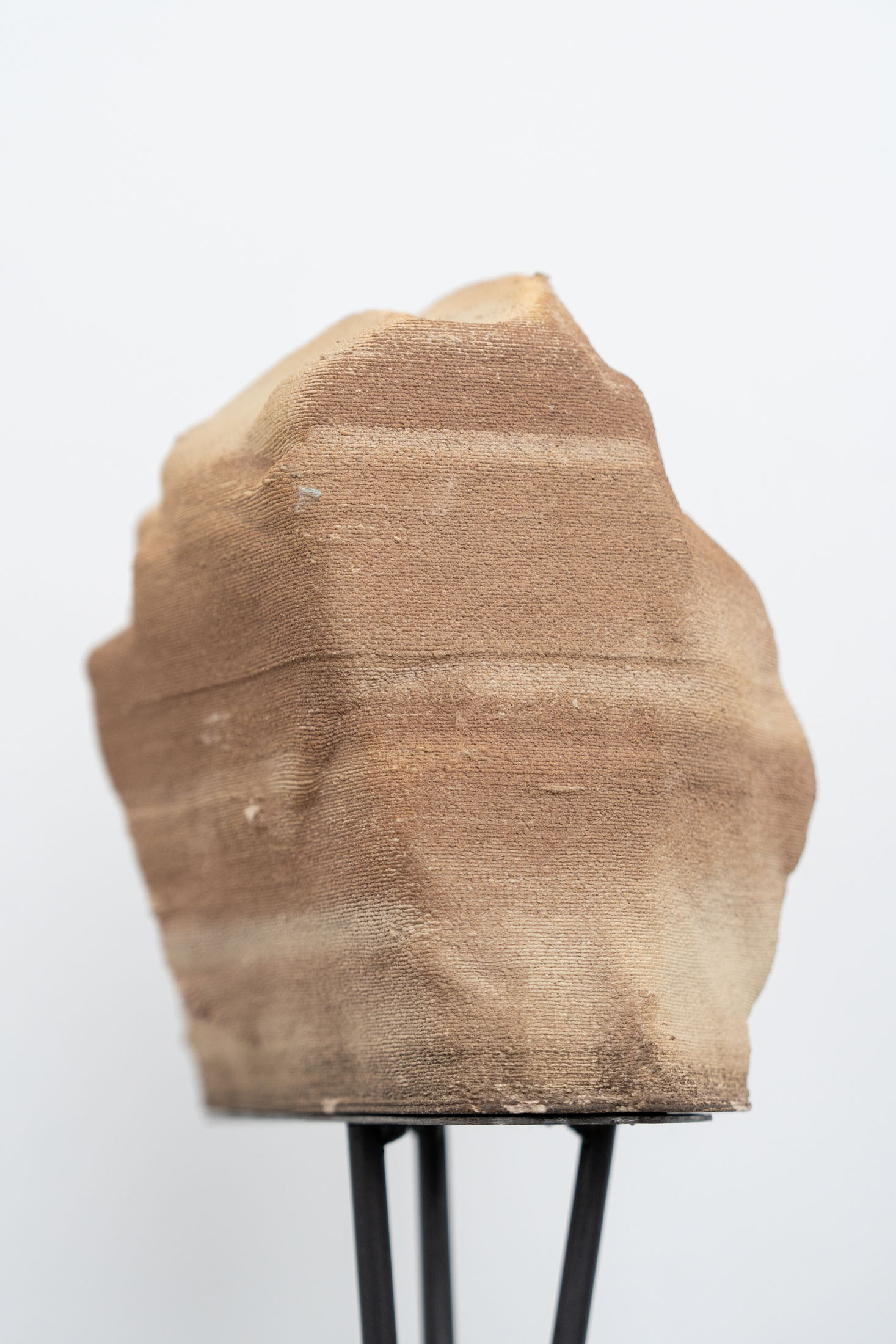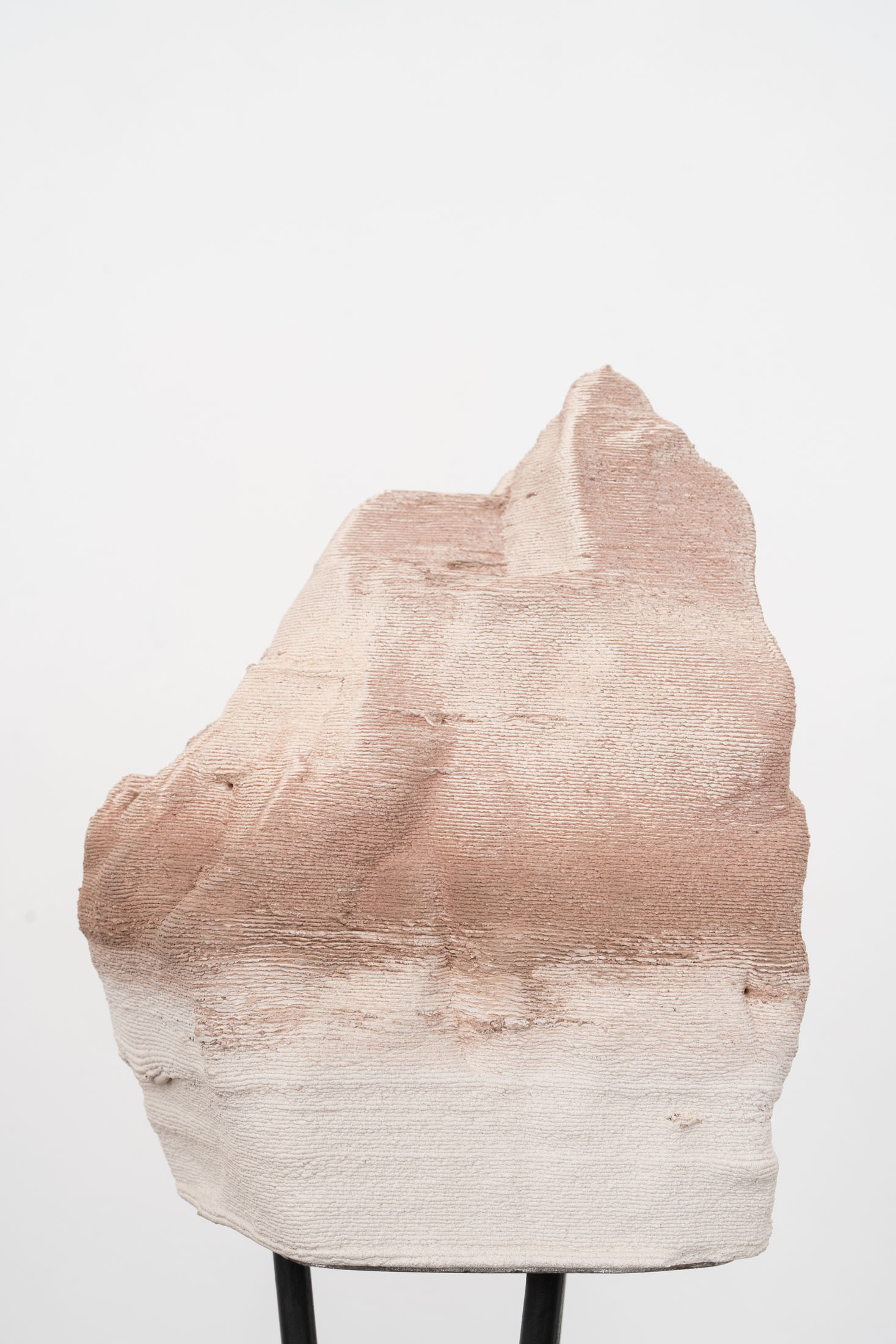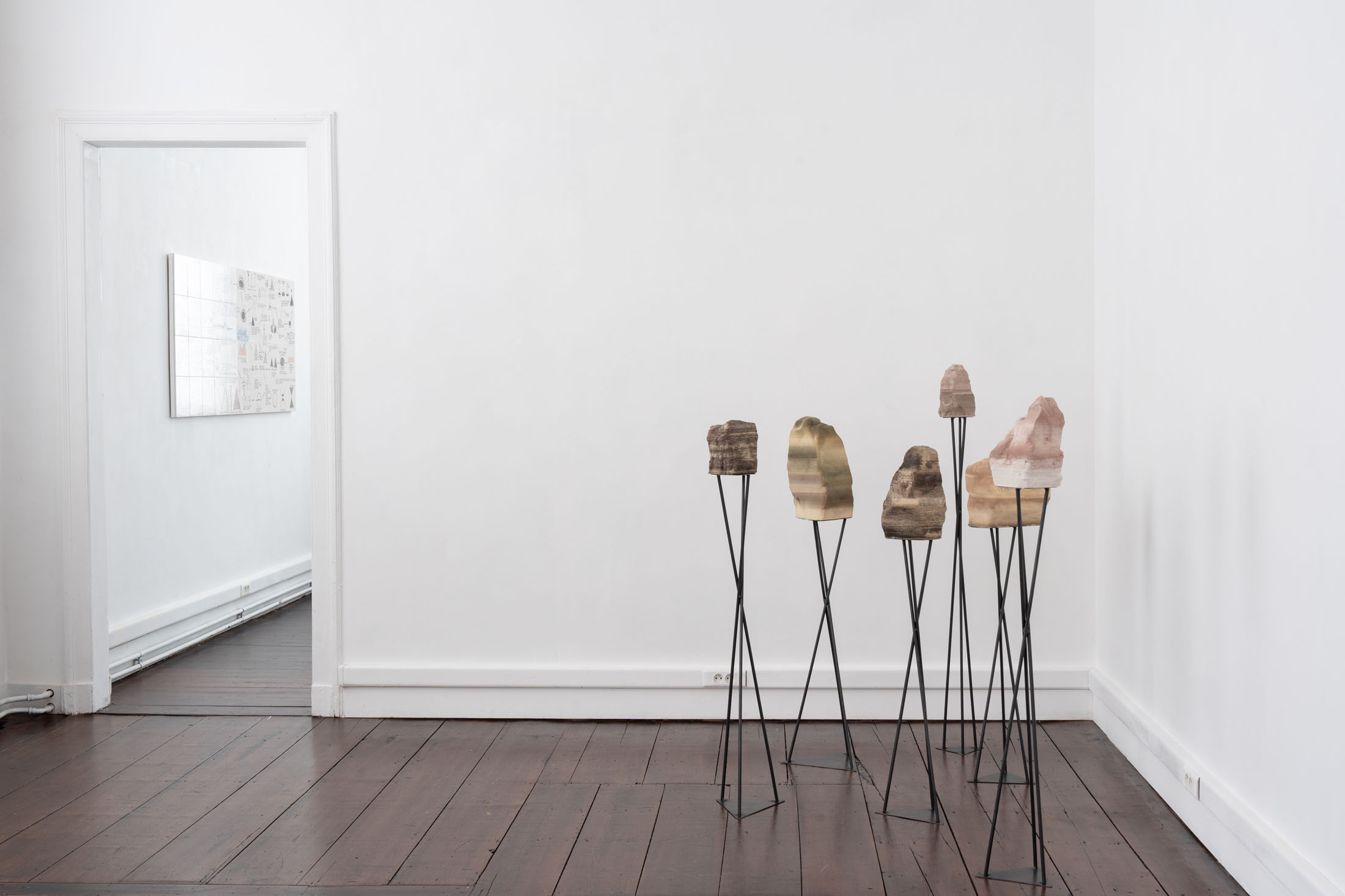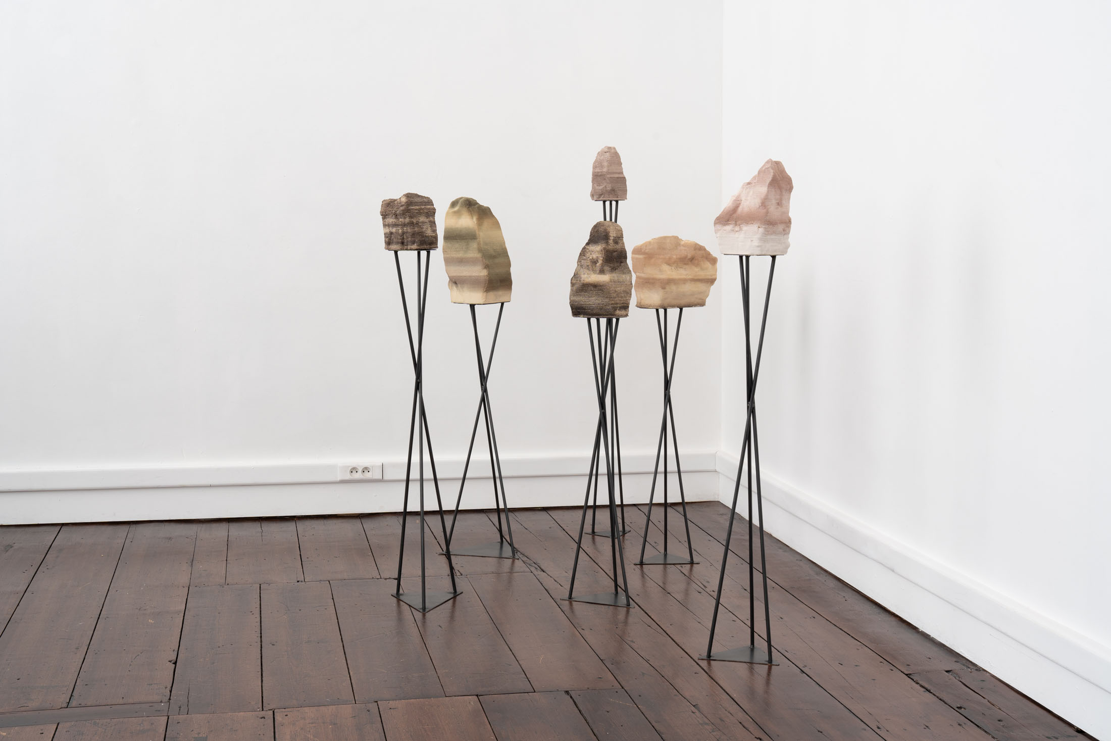Scattered throughout the space are Padilla’s digitally reconstructed ceramic stones and photographs taken from her travels. With attention to the tension between natural and artificial, living and inert, near and far, she constructs a landscape grounded in her experience of displacement. Through sound, materiality, and rhythm, her work assumes a symbolic, imaginary, and metaphysical character.