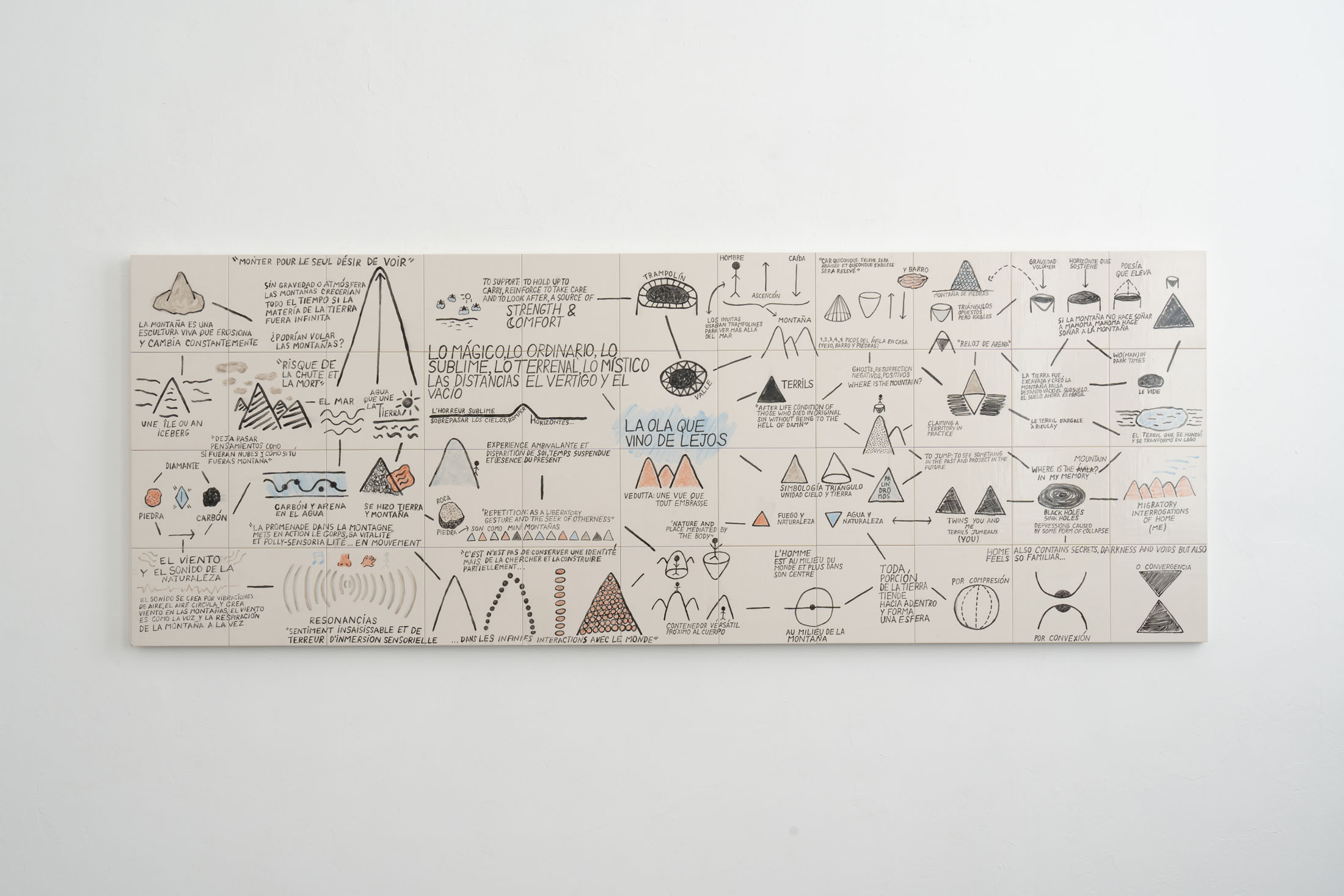 While staying in Northern France, Padilla sought an “equivalent” mountain: a landscape form that could resonate within a European context as her mythical Venezuelan mountain did. She found it in the mining regions, where terrils—artificial hills formed from mining debris—punctuate the terrain. Though man-made, these conical formations carry the gravitas of natural monuments: mute witnesses to human industry and time.