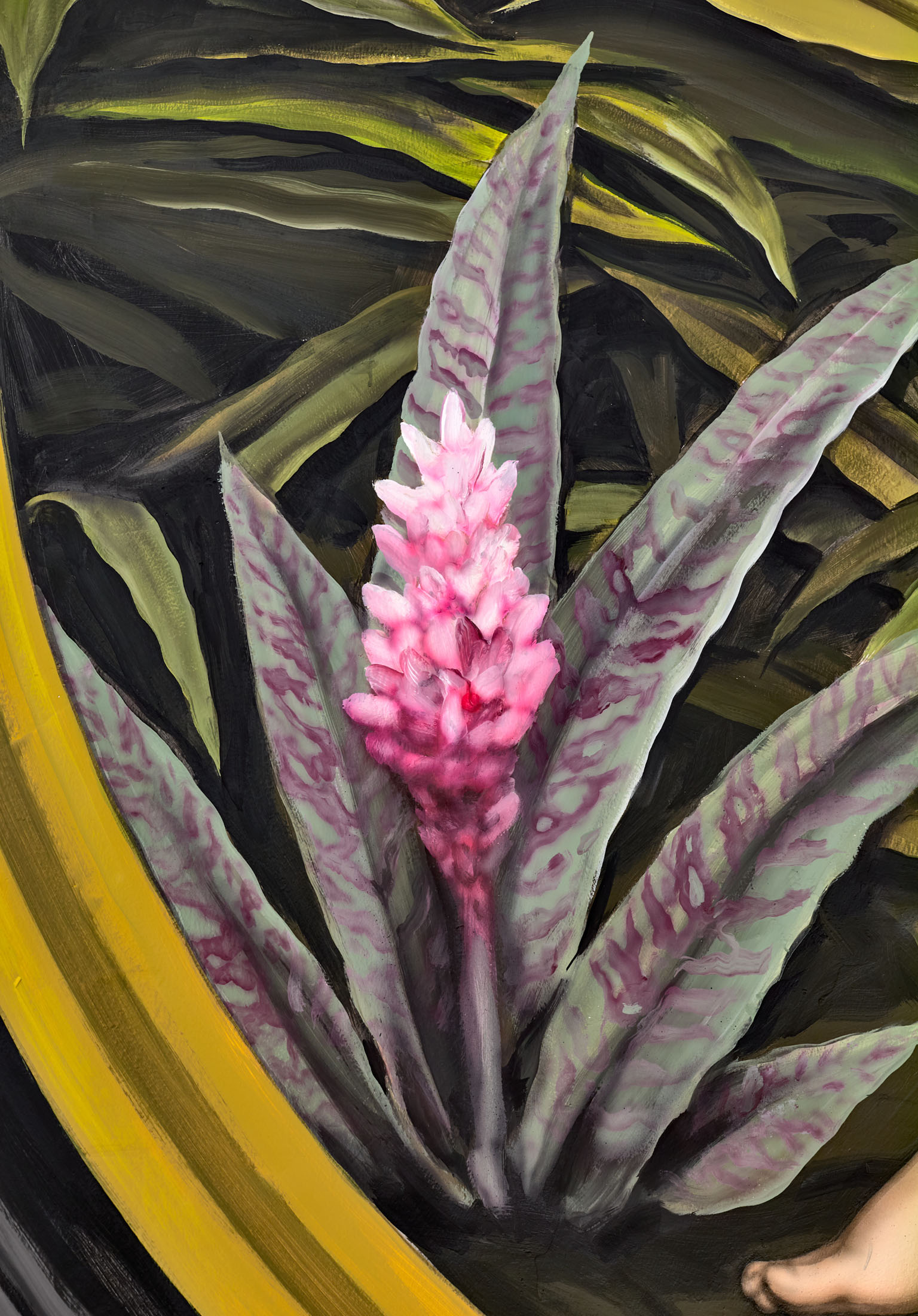 Áron Lőrincz is one of the most distinctive and fearless painters of his generation. His work blends imagination, irony, and emotion into large-scale compositions that blur the boundaries between fantasy and reality. The world he builds is both playful and unsettling, filled with symbols, creatures, and fragments that speak about freedom, survival, and the tension between civilization and instinct.