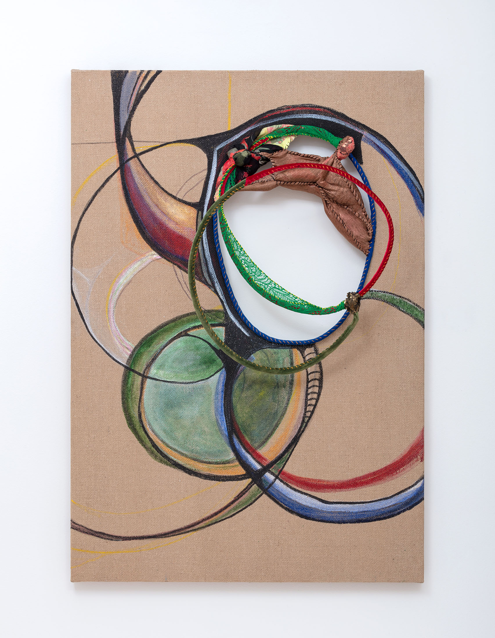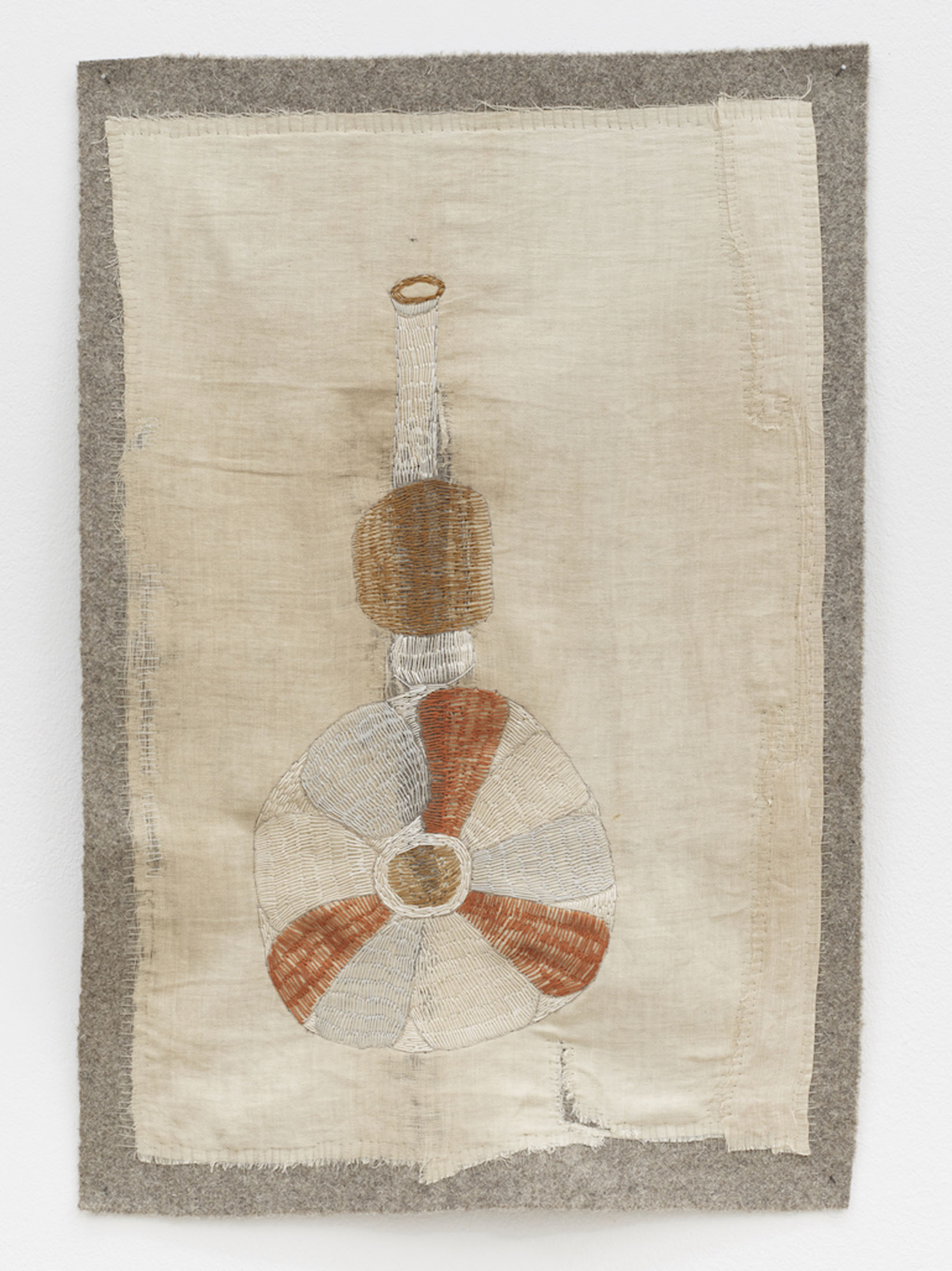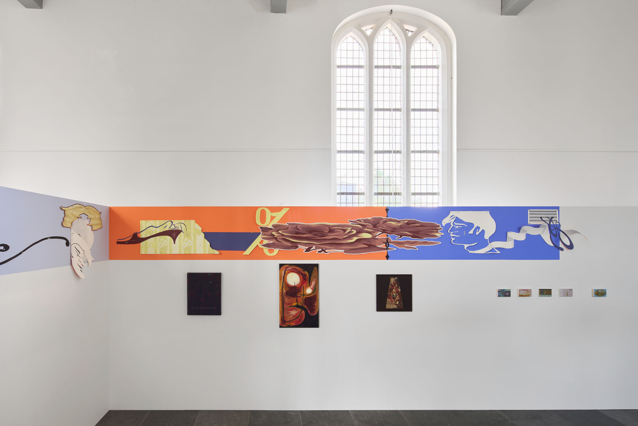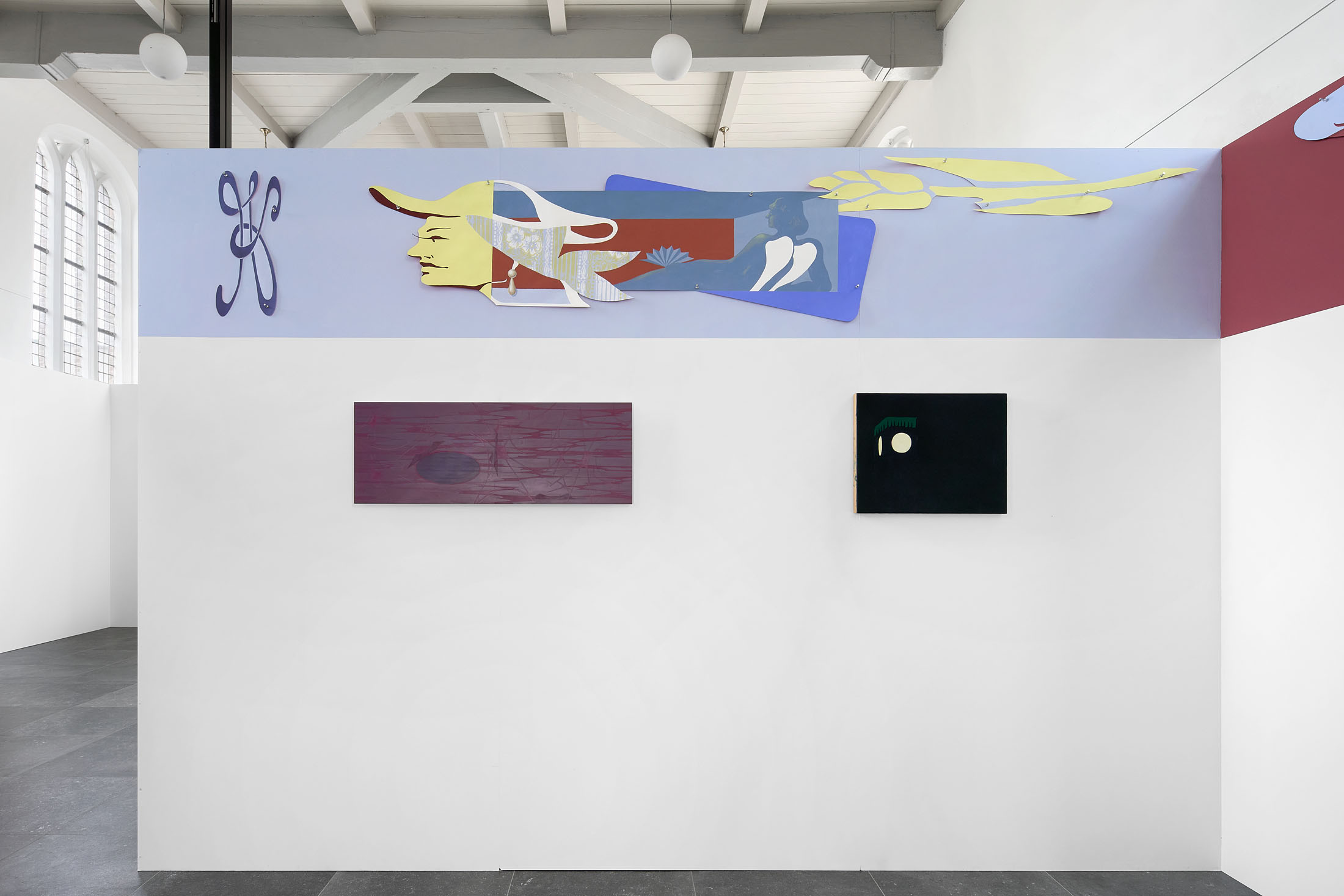 Marlene Smith inherited crochet napkins and doilies, then rolled them into sugar fondant to try and remember what sugar meant in the Caribbean, and to the memory of those who would have felt at home around these heirlooms. Sonia Gomes exclusively works with textiles that were previously worn, always respectfully adopting the social entanglements of their previous owners. Intimate expressions and traces of use through fabrics are also present in the works by Fernando Marques Penteado. His first gesture is often one of restoration or conservation – backing fragile leftovers with heavy-duty, rainproof felt. Jessy Razafimandimby pushes his paintings beyond good old bourgeois taste with cotton baldaquins that feel right at home in the chapel.