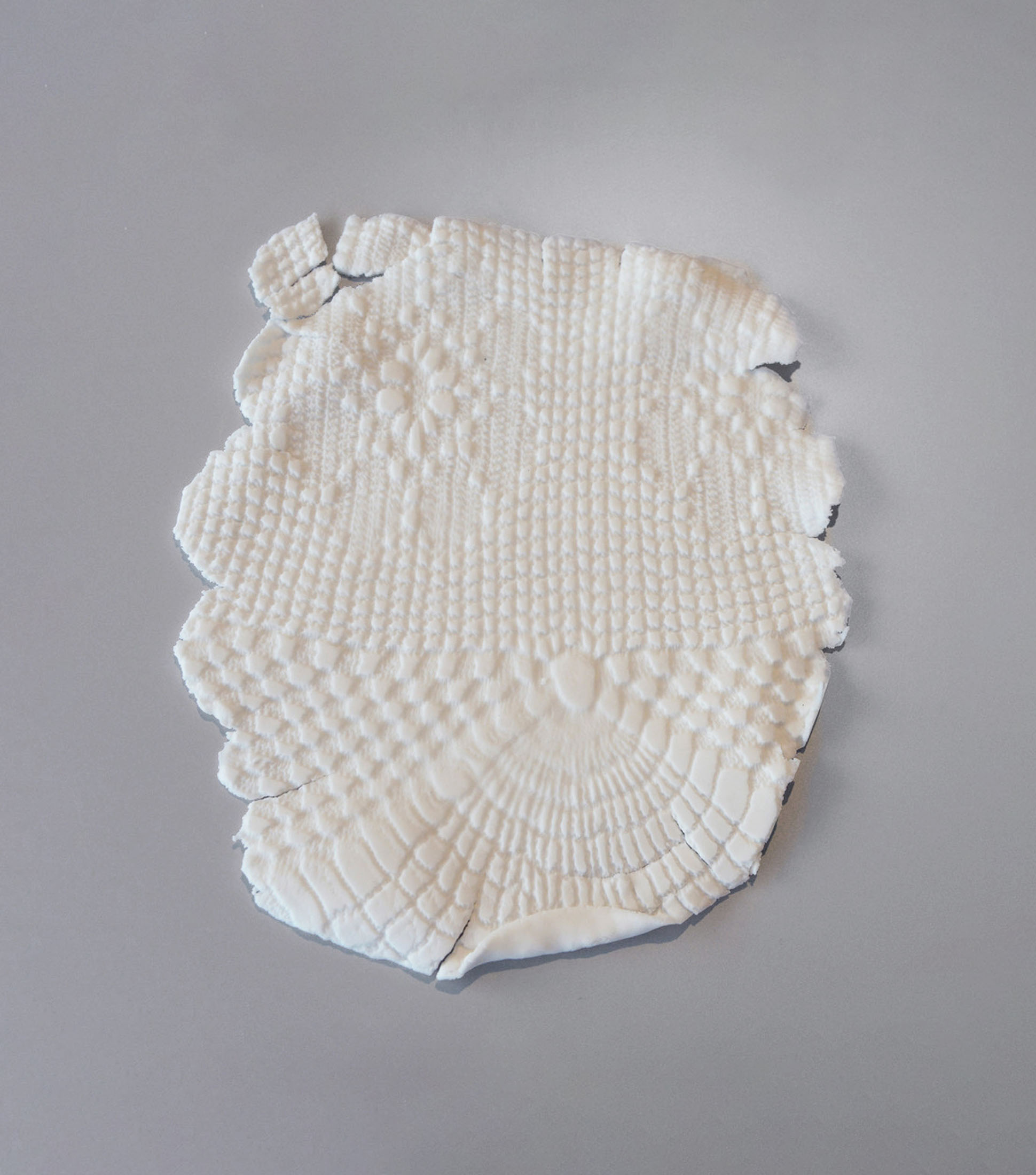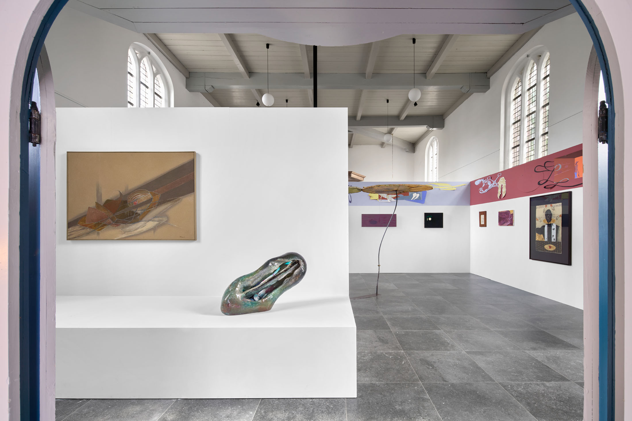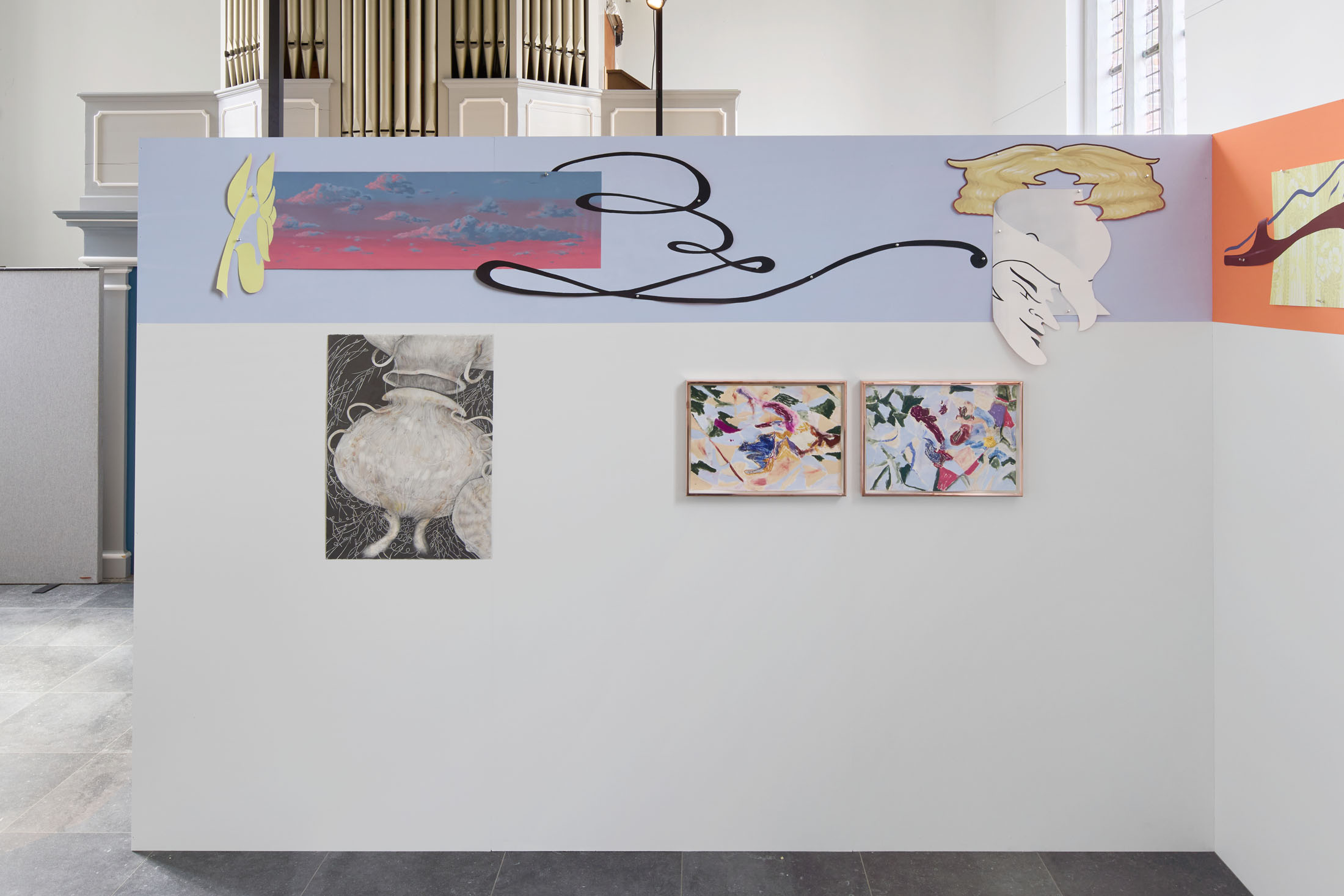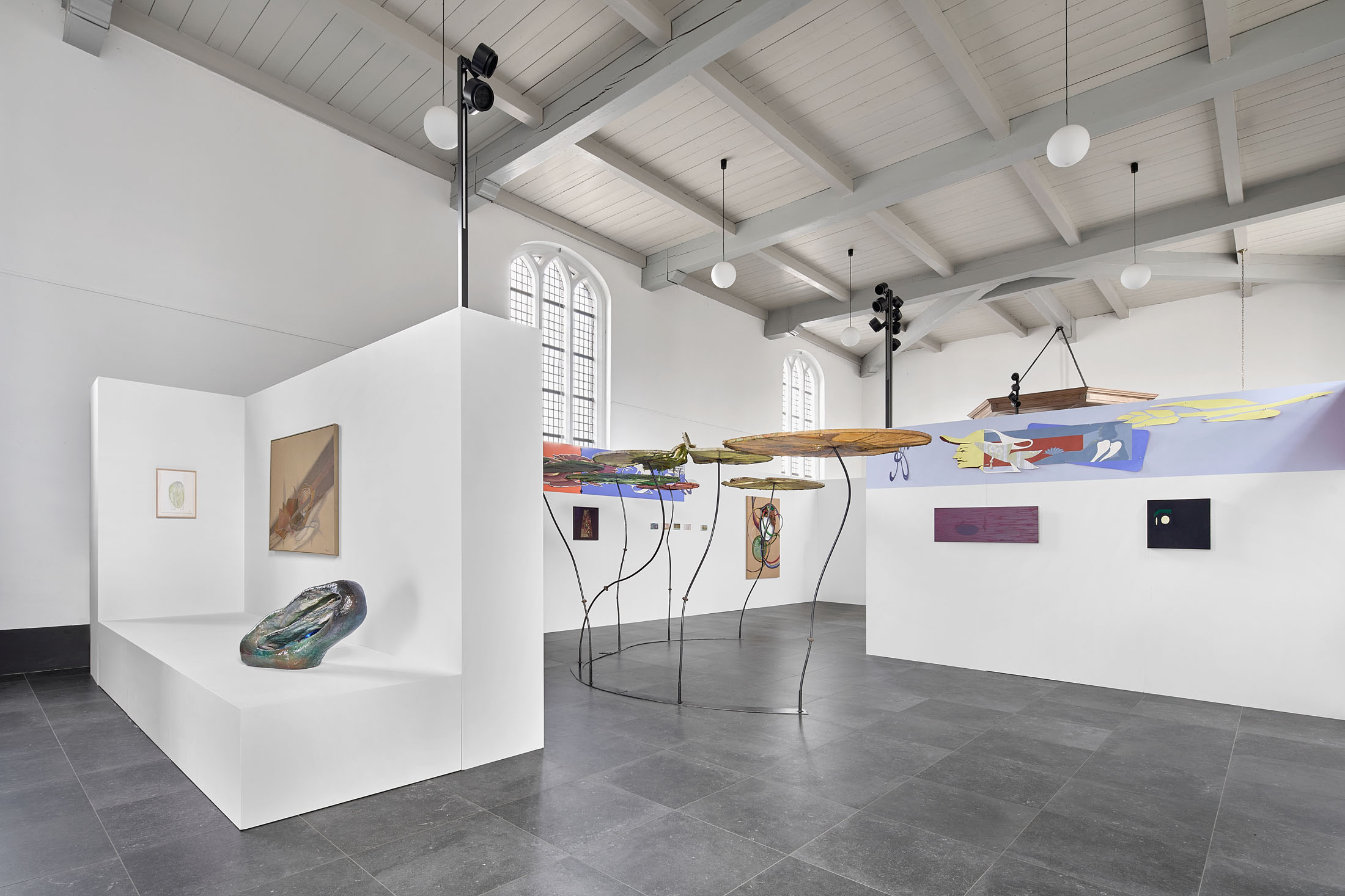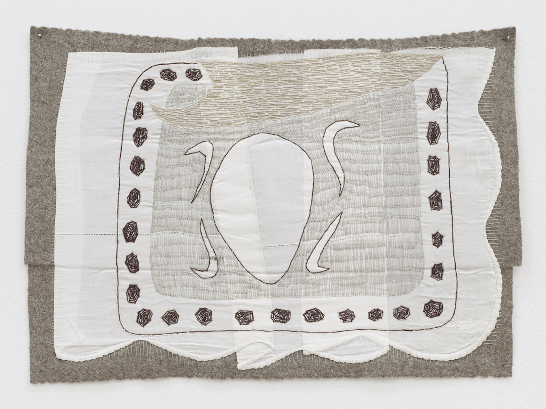 Marlene Smith inherited crochet napkins and doilies, then rolled them into sugar fondant to try and remember what sugar meant in the Caribbean, and to the memory of those who would have felt at home around these heirlooms. Sonia Gomes exclusively works with textiles that were previously worn, always respectfully adopting the social entanglements of their previous owners. Intimate expressions and traces of use through fabrics are also present in the works by Fernando Marques Penteado. His first gesture is often one of restoration or conservation – backing fragile leftovers with heavy-duty, rainproof felt. Jessy Razafimandimby pushes his paintings beyond good old bourgeois taste with cotton baldaquins that feel right at home in the chapel.