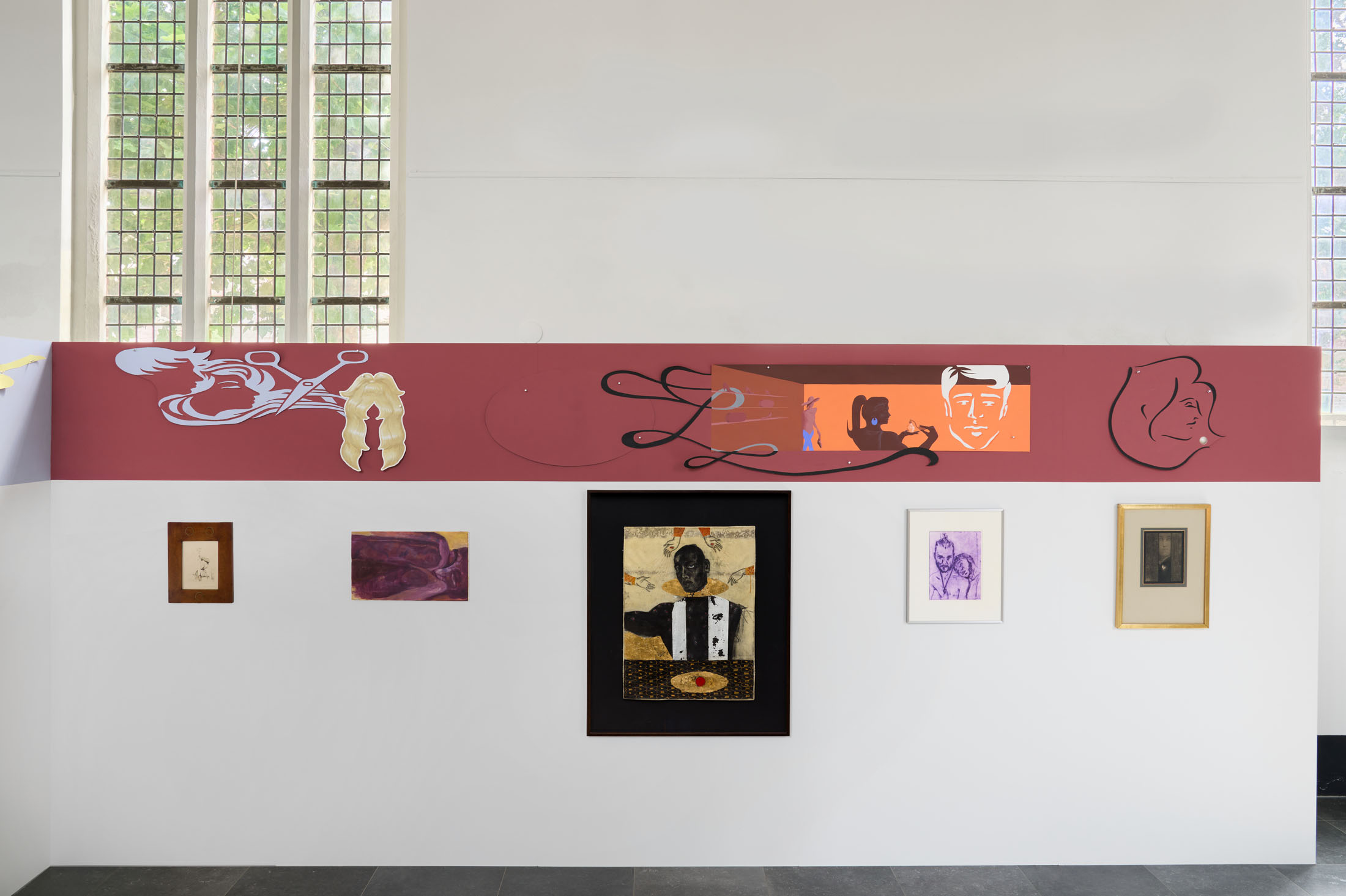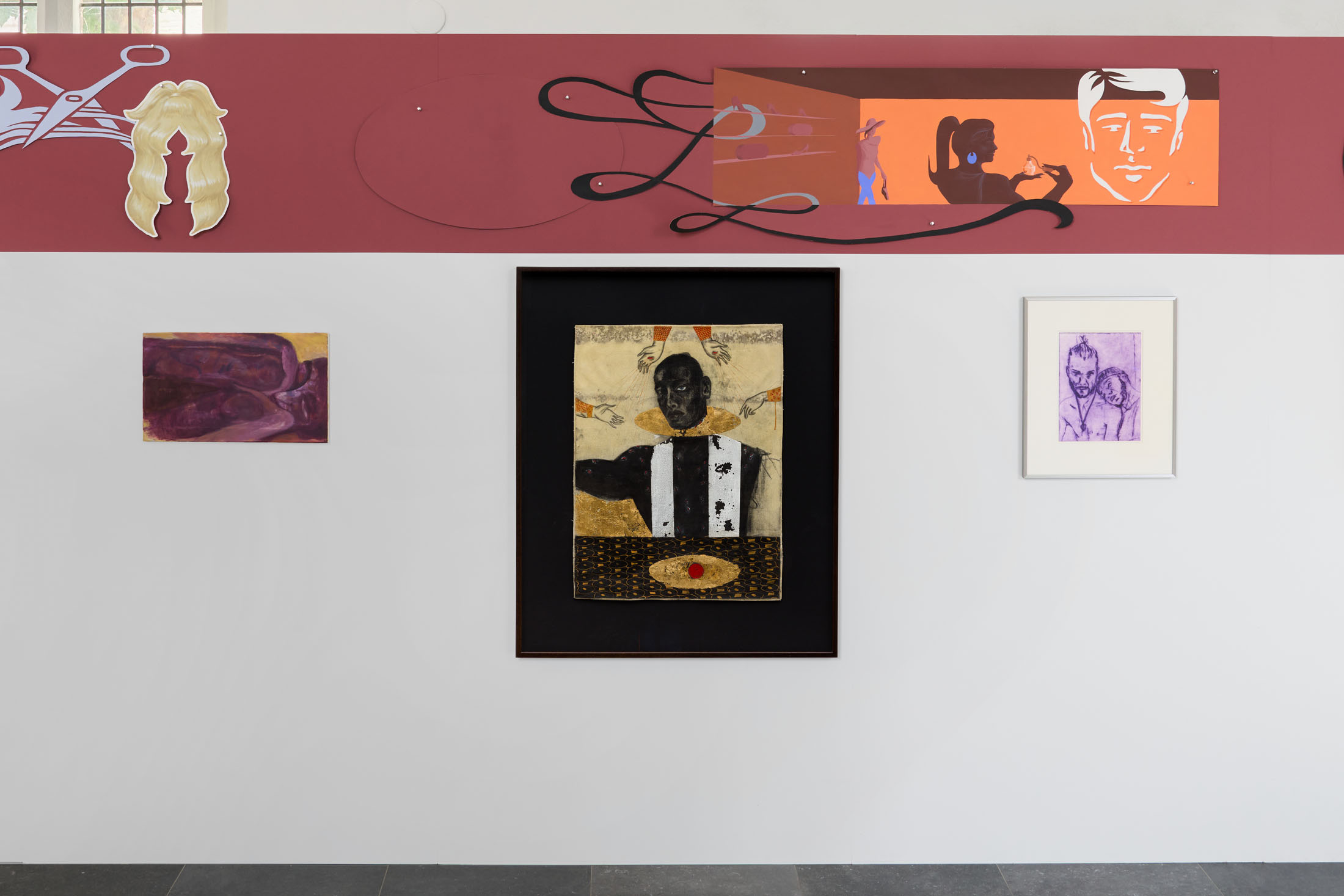 Pieter Chanterie’s new frieze crowns the exhibition with a wig rather than arming it with a defensive wall. Stretched brown roses and camp video-game toupees bloom like whimsical flora, threading through the intimate, mystical, scratched-and-painted portraits of Birde Vanheerswynghels, Antonio Obá, and Jan Cox. Artists who have to be precise about public displays of affection and talk about the weather. This show wears dark sunglasses to see more. Khnopff’s beautiful sister looks at us in different guises – she was, after all, framed in many different ways.