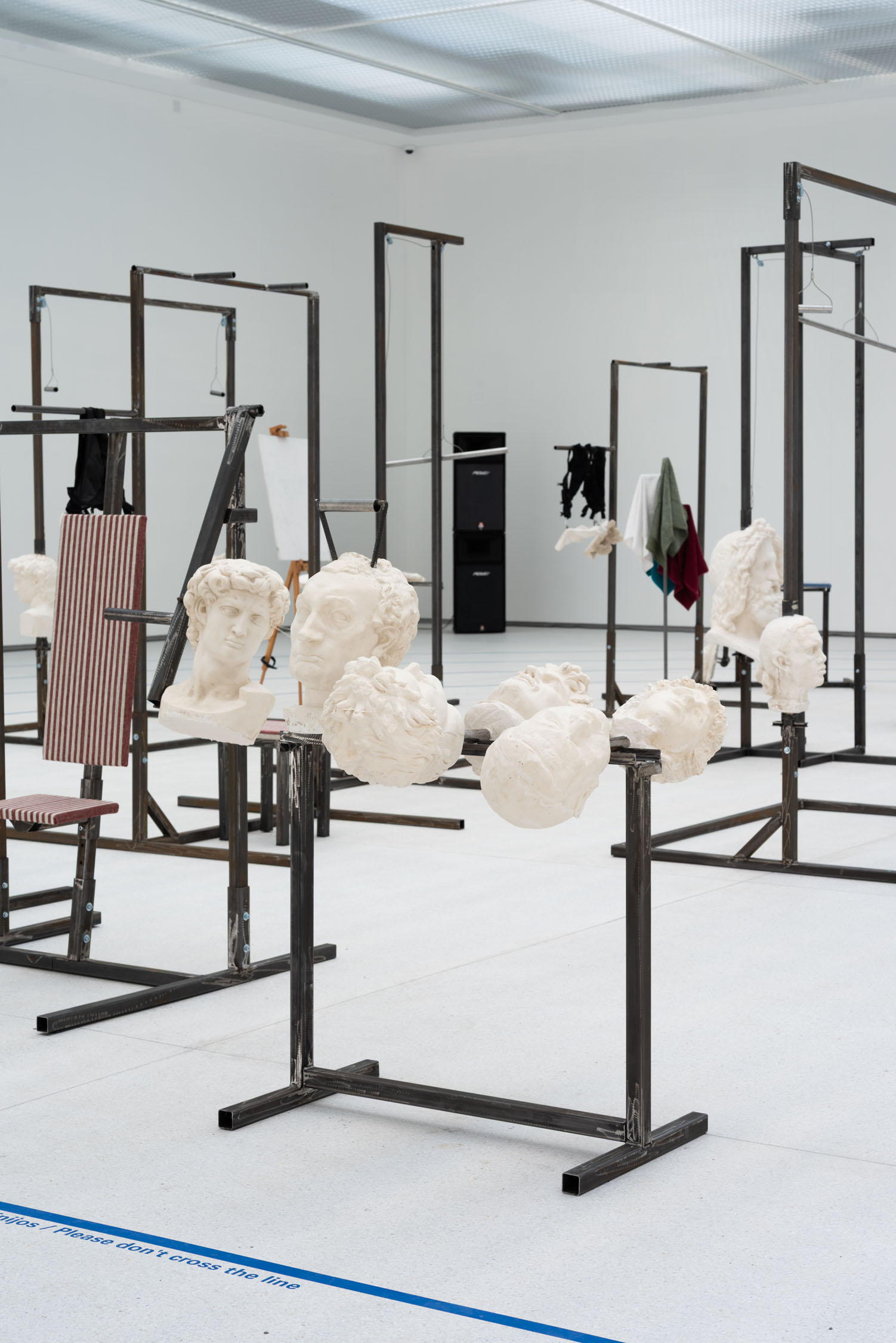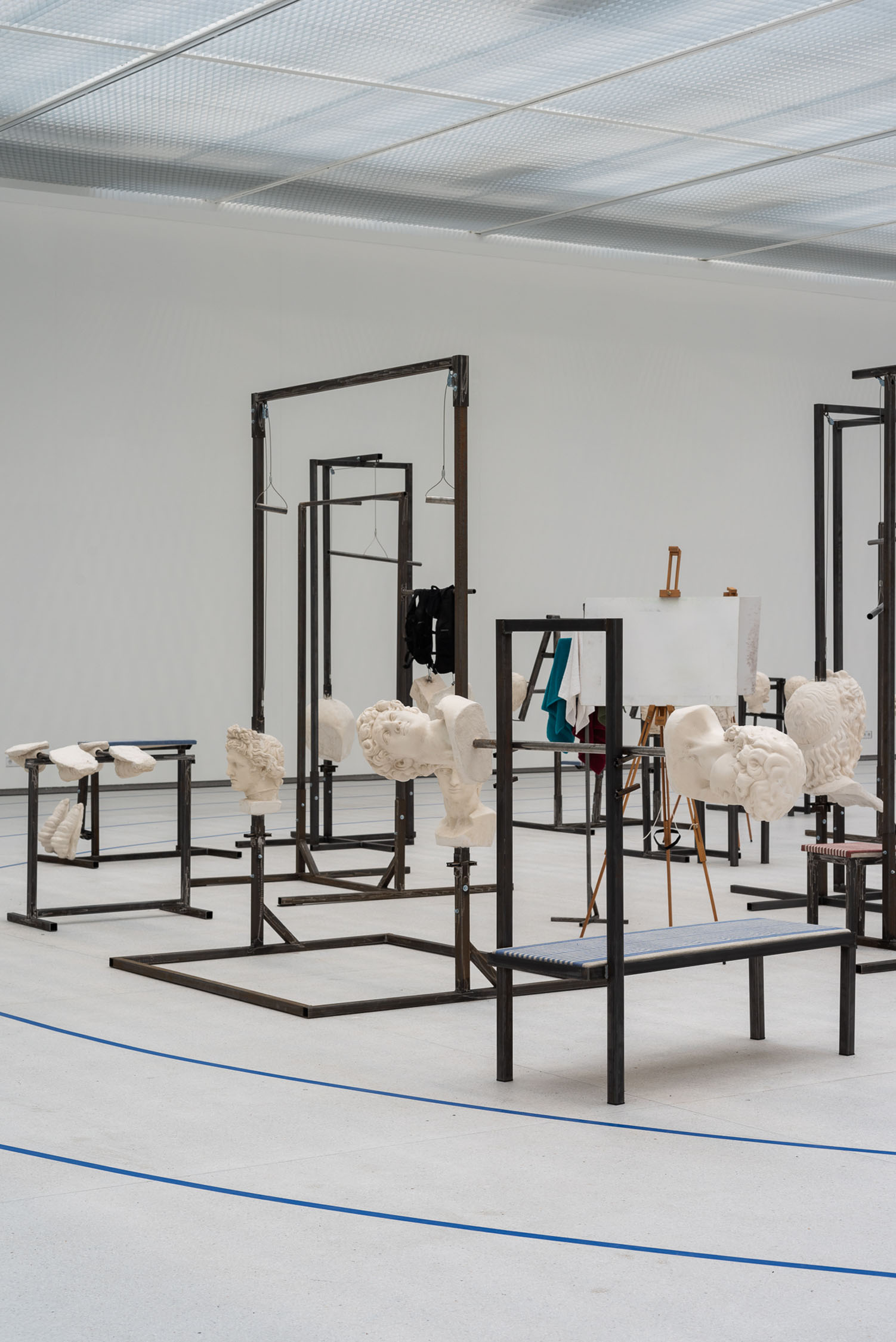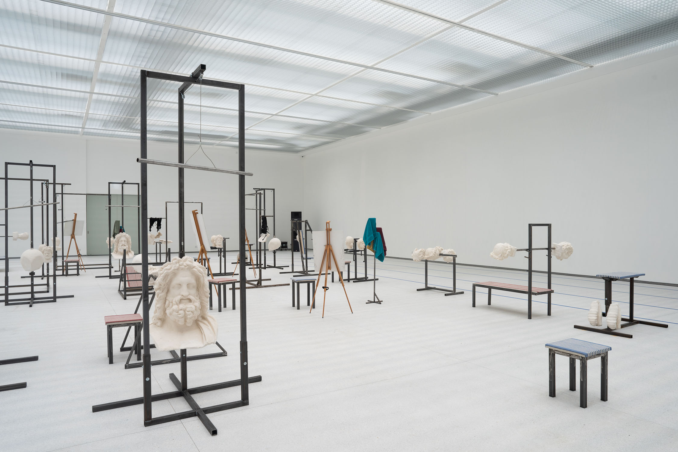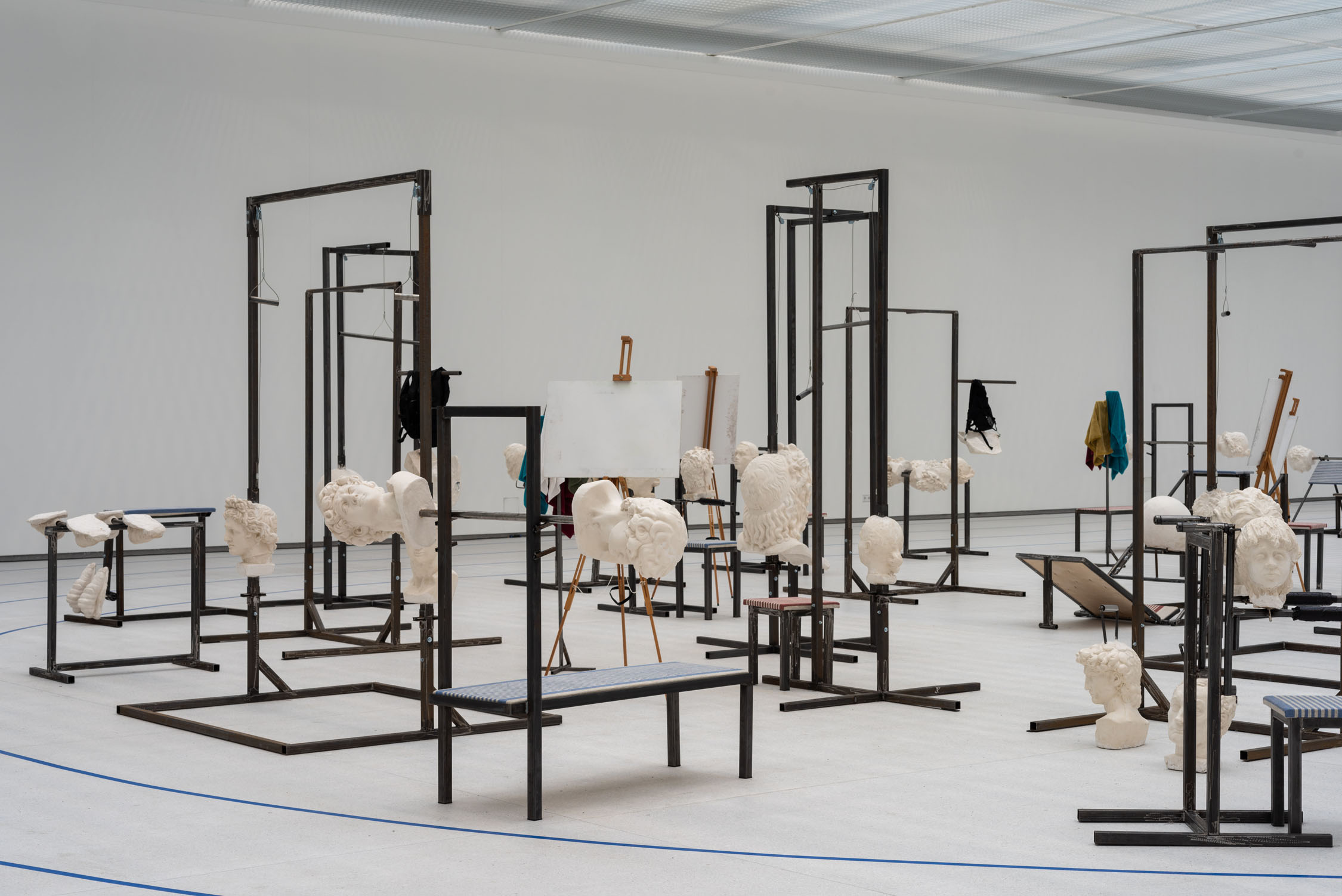 The installation is activated by both individuals practicing academic drawing – traditionally focused on copying classical sculptures – and groups of visitors who will engage with the artwork as a functioning gym. Audiences will have the opportunity to take a closer look at Western art history and rethink local education systems, which emphasise repetitive practice and diligent, hard work – paralleled here with the discipline of working out in a gym.