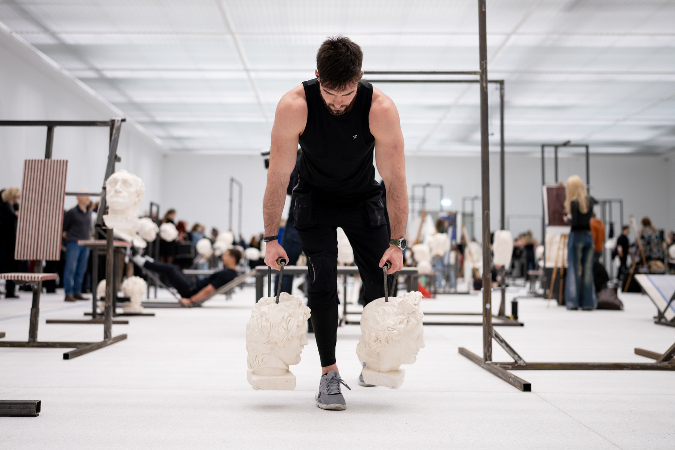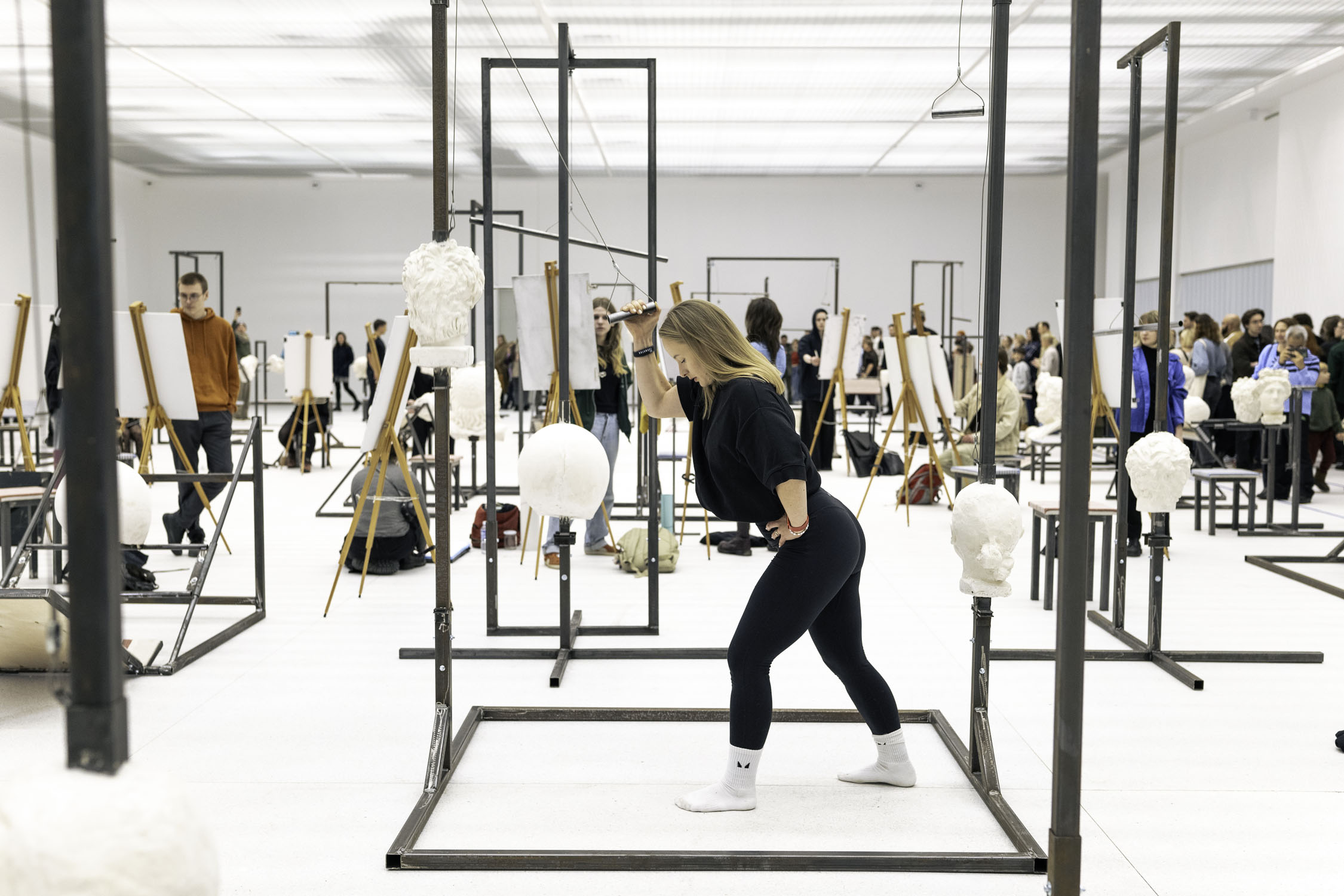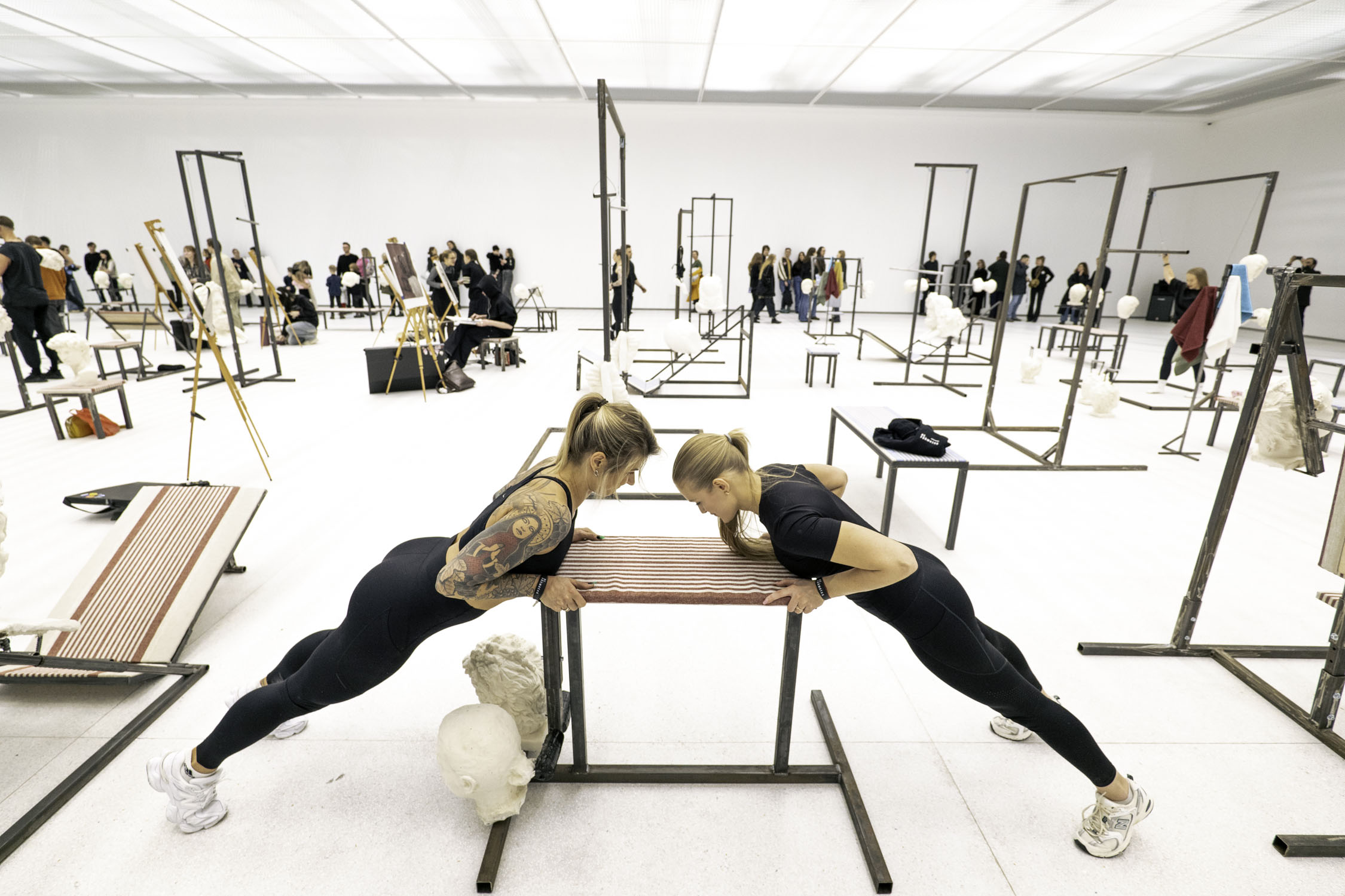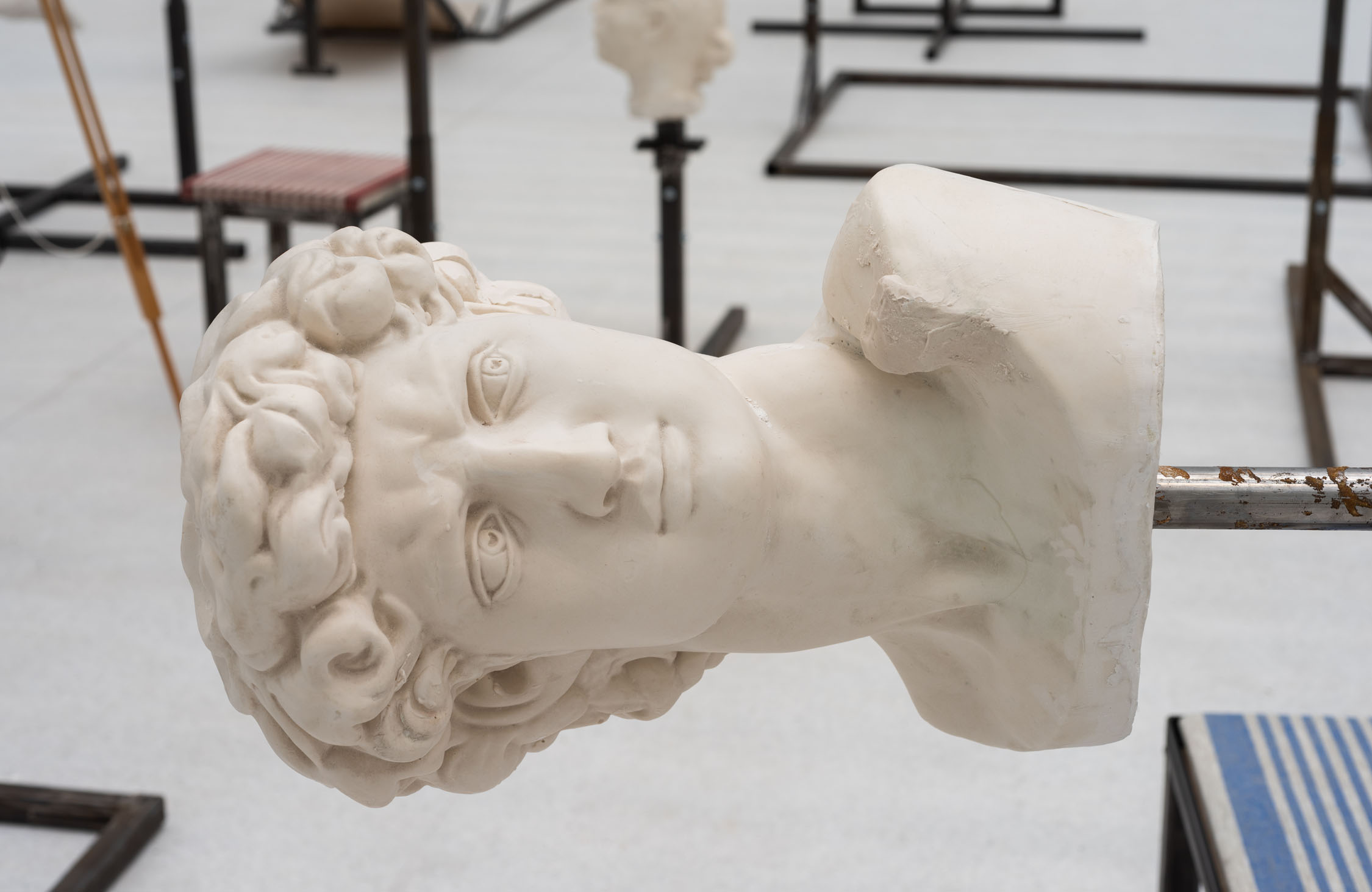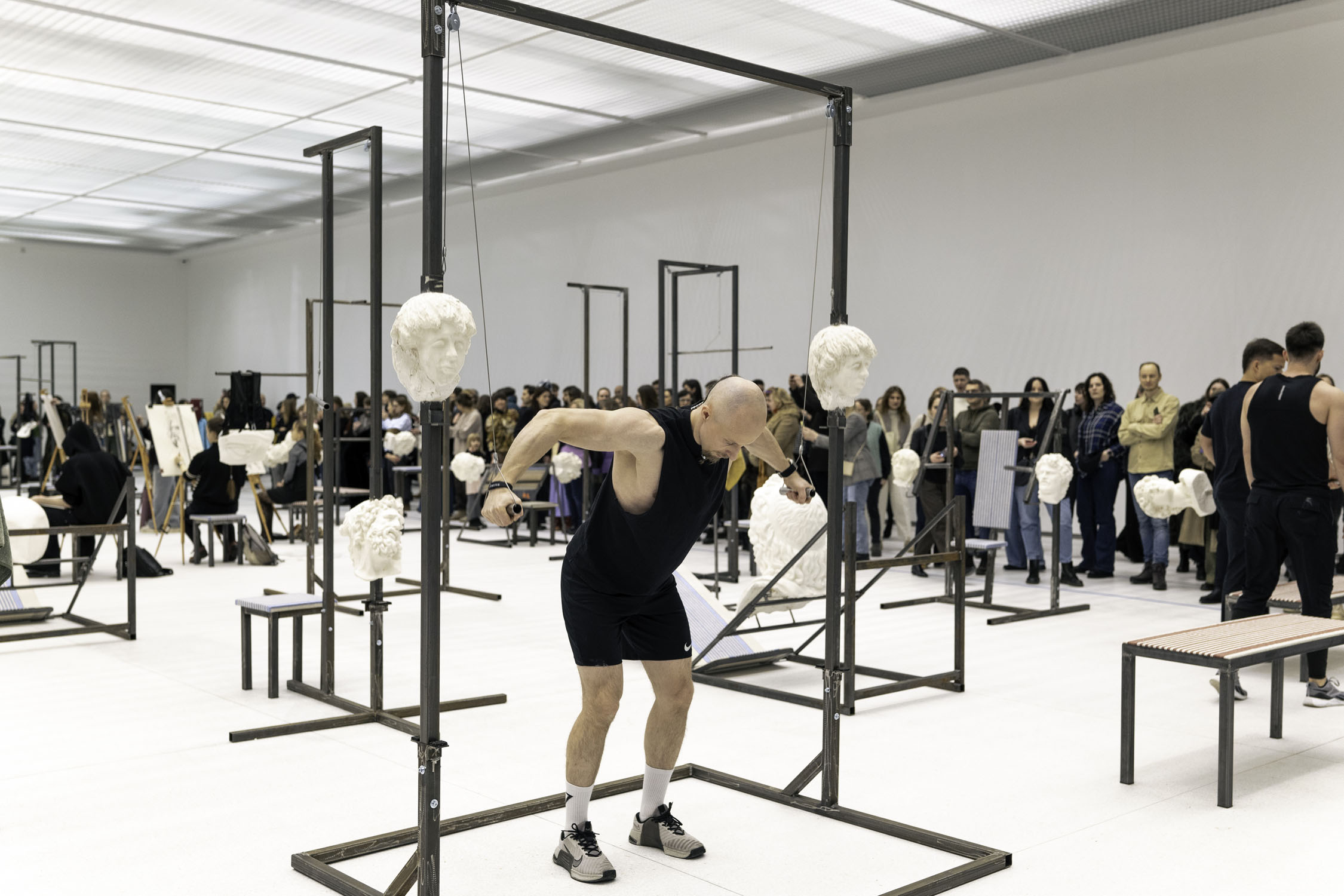 The installation is activated by both individuals practicing academic drawing – traditionally focused on copying classical sculptures – and groups of visitors who will engage with the artwork as a functioning gym. Audiences will have the opportunity to take a closer look at Western art history and rethink local education systems, which emphasise repetitive practice and diligent, hard work – paralleled here with the discipline of working out in a gym.