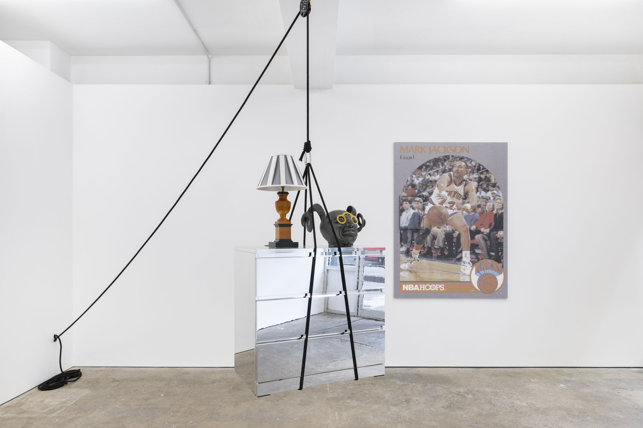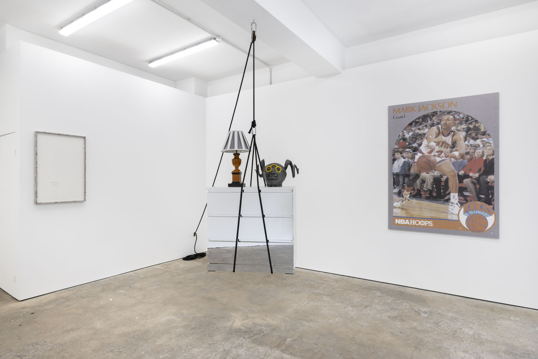 Slinger’s installation plays on this ambivalence — drawing from decorative arts (the lamp), minimalist sculpture (the IKEA drawer), and circus aesthetics (the Horned Helmet). Through strategic arrangement, they build a symbolist hybrid: part consumer object, part historical relic — paradoxically free to reproduce, thanks to its public-domain status. There’s a hint of Haim Steinbach here, though without the fixity. What Slinger introduces is the possibility of collapse, the threat of disassembly.