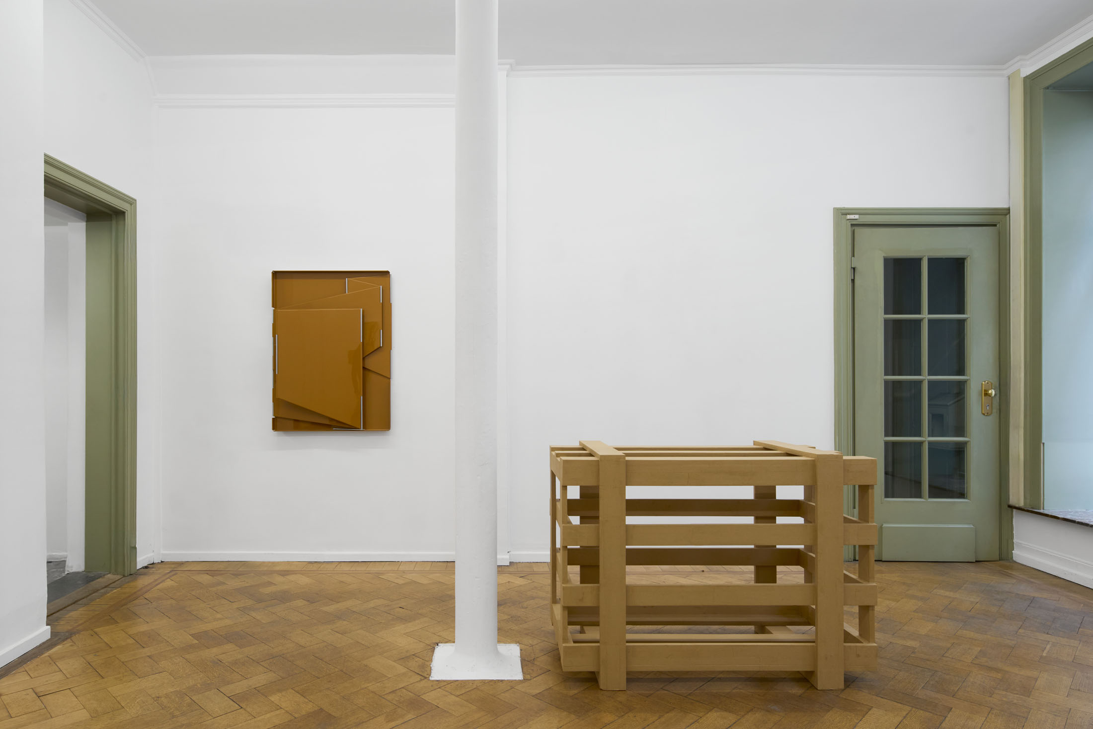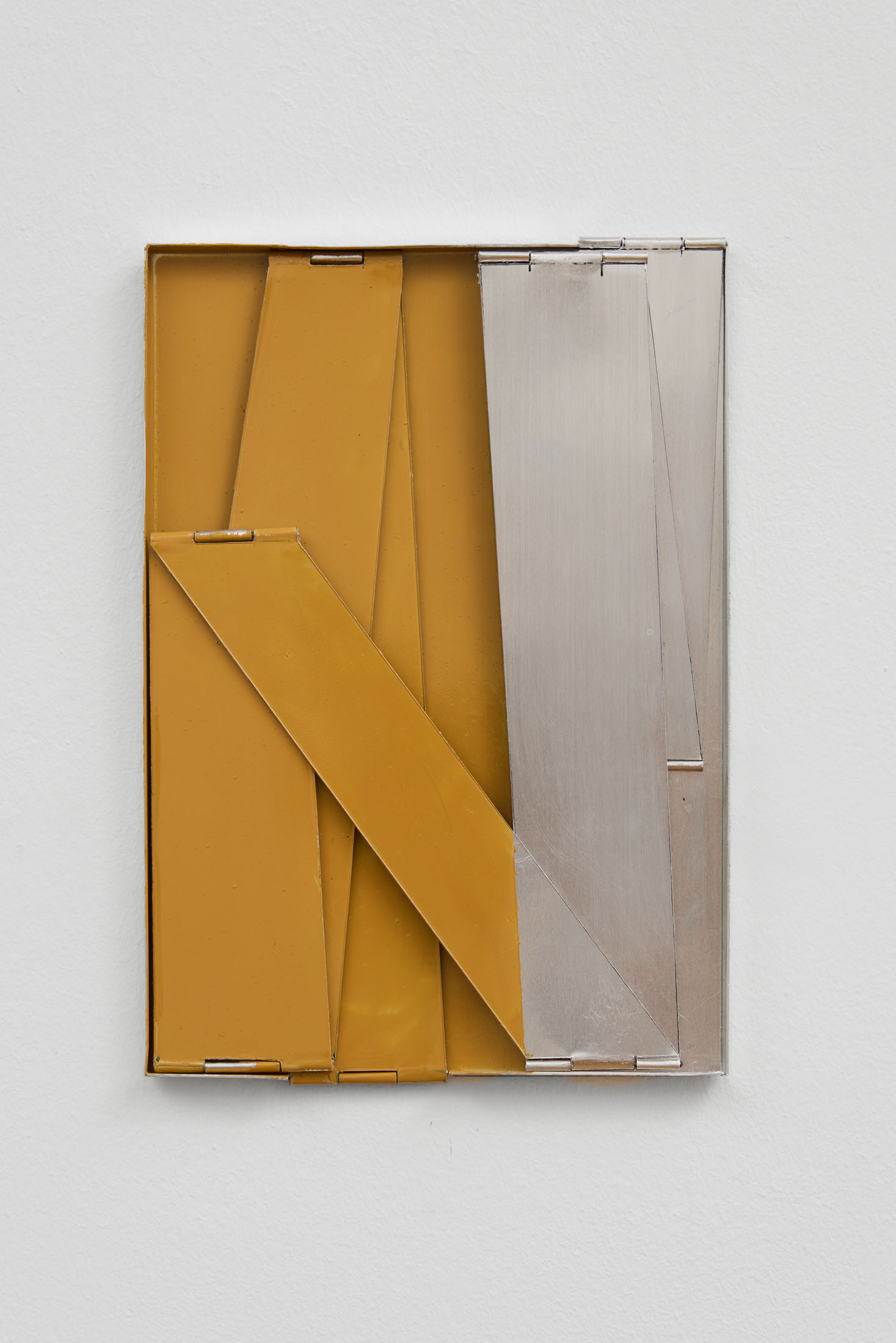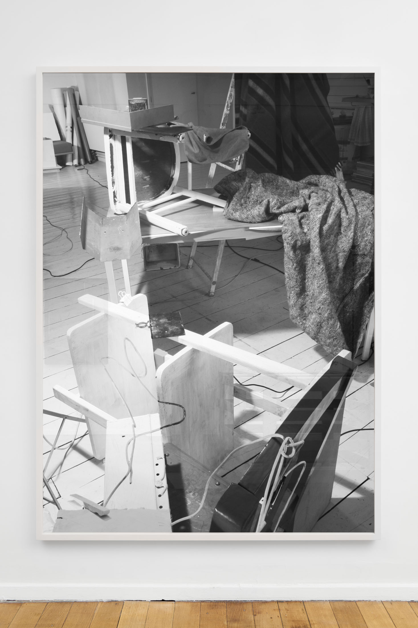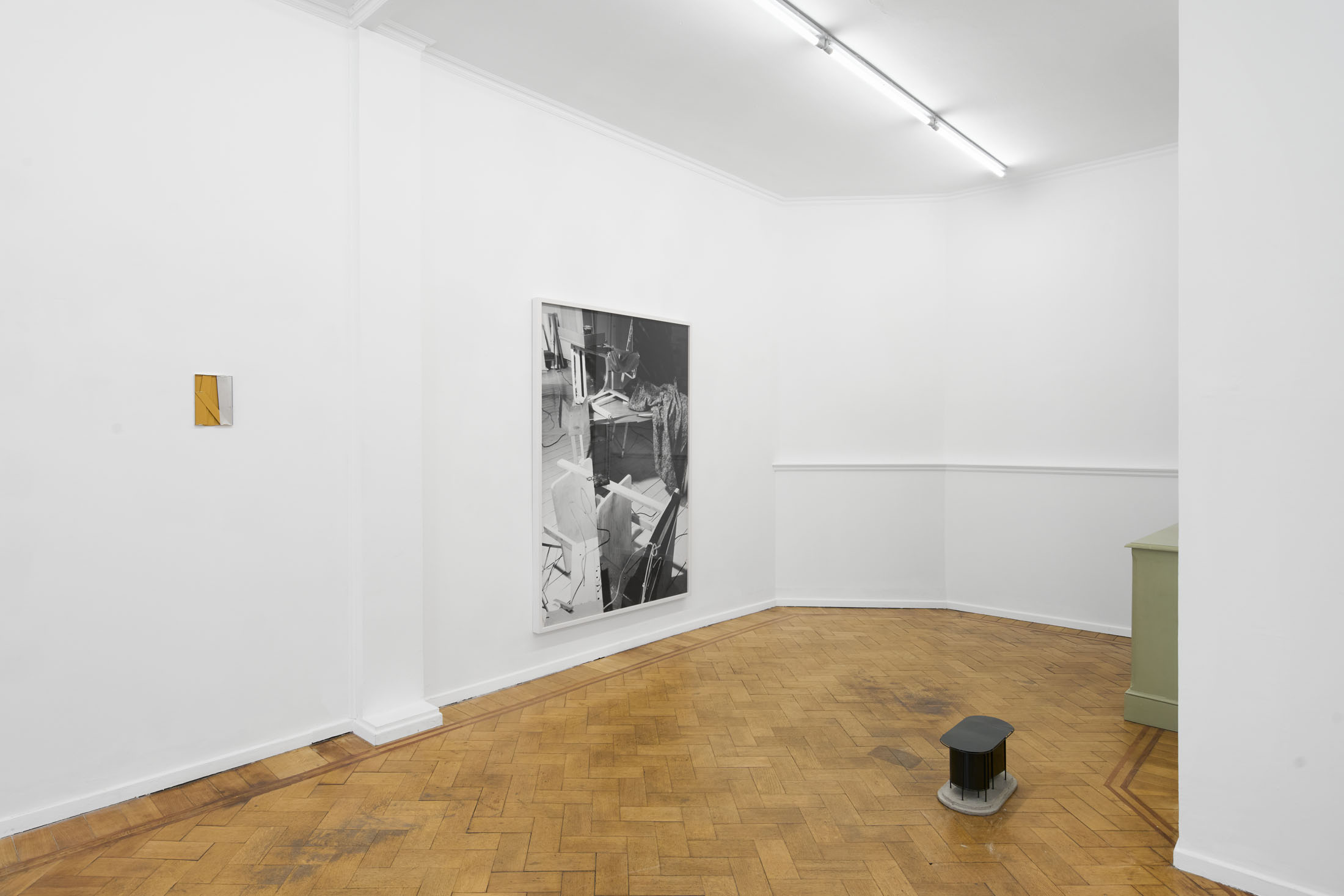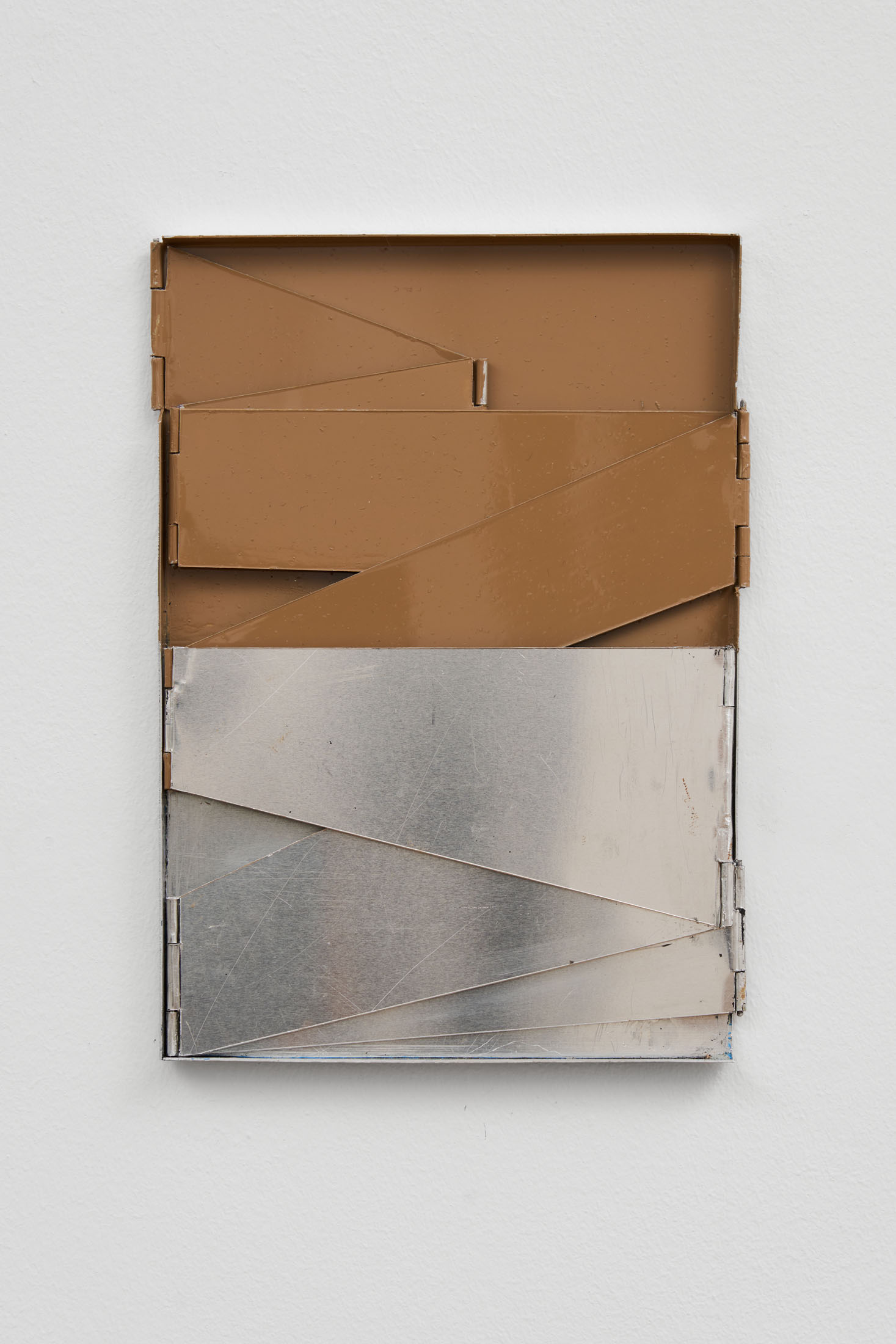 Voïta’s photographs are images of physical objects he sets up in his studio. As flat representations, they depart from their subject: One instead sees a camera, a building, a straight cut, a geometrical shape. They evoke a process of composition that gets illustrated in sculpture. Picture planes literally break in Voïta’s movable objects, which change two things at once: themselves and the space that contains them. It is as though photography told the artist what to sculpt.