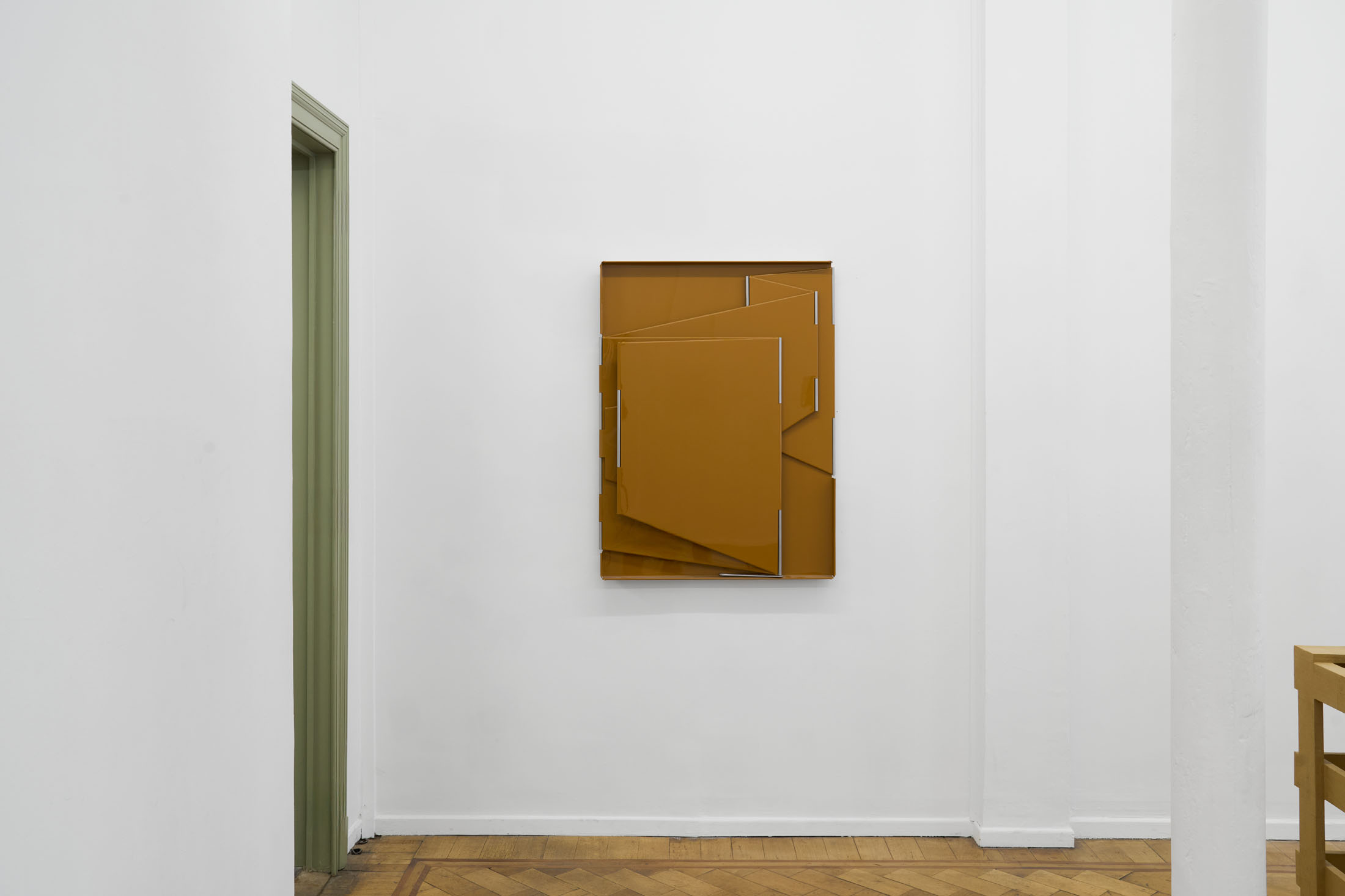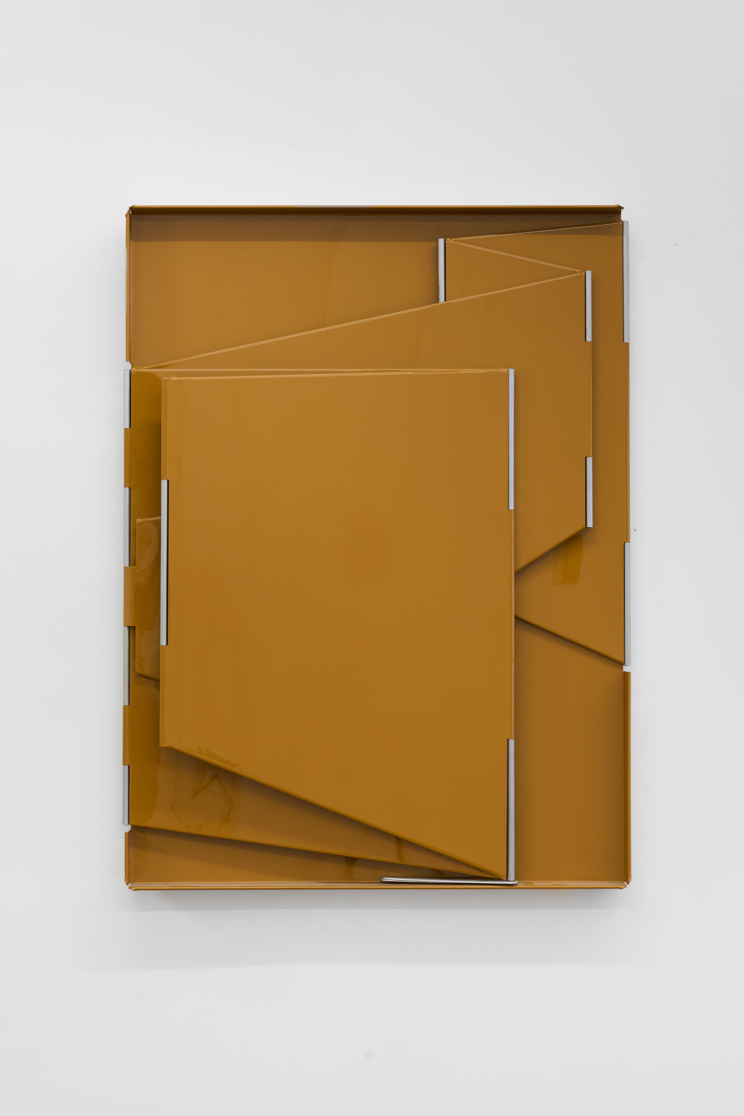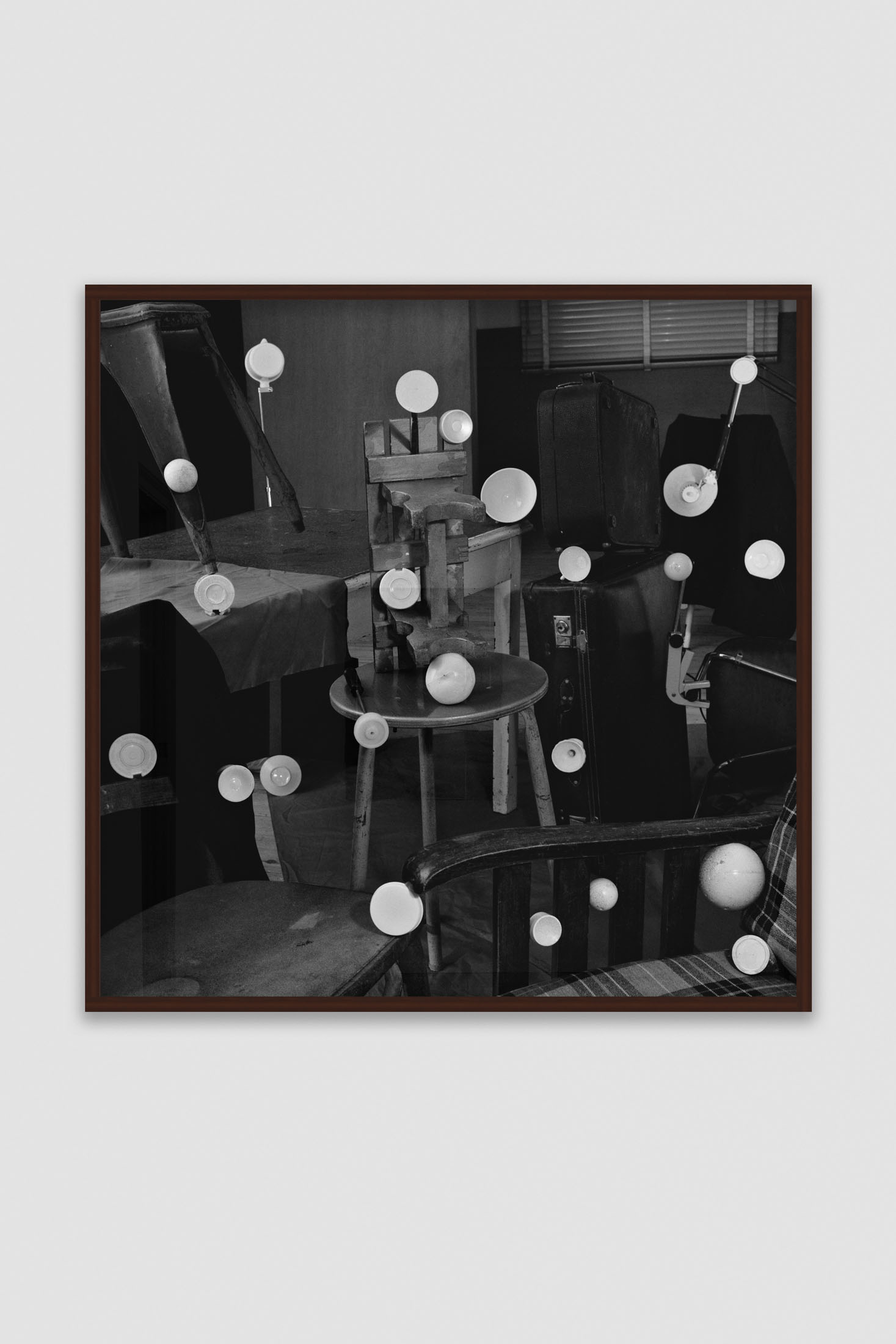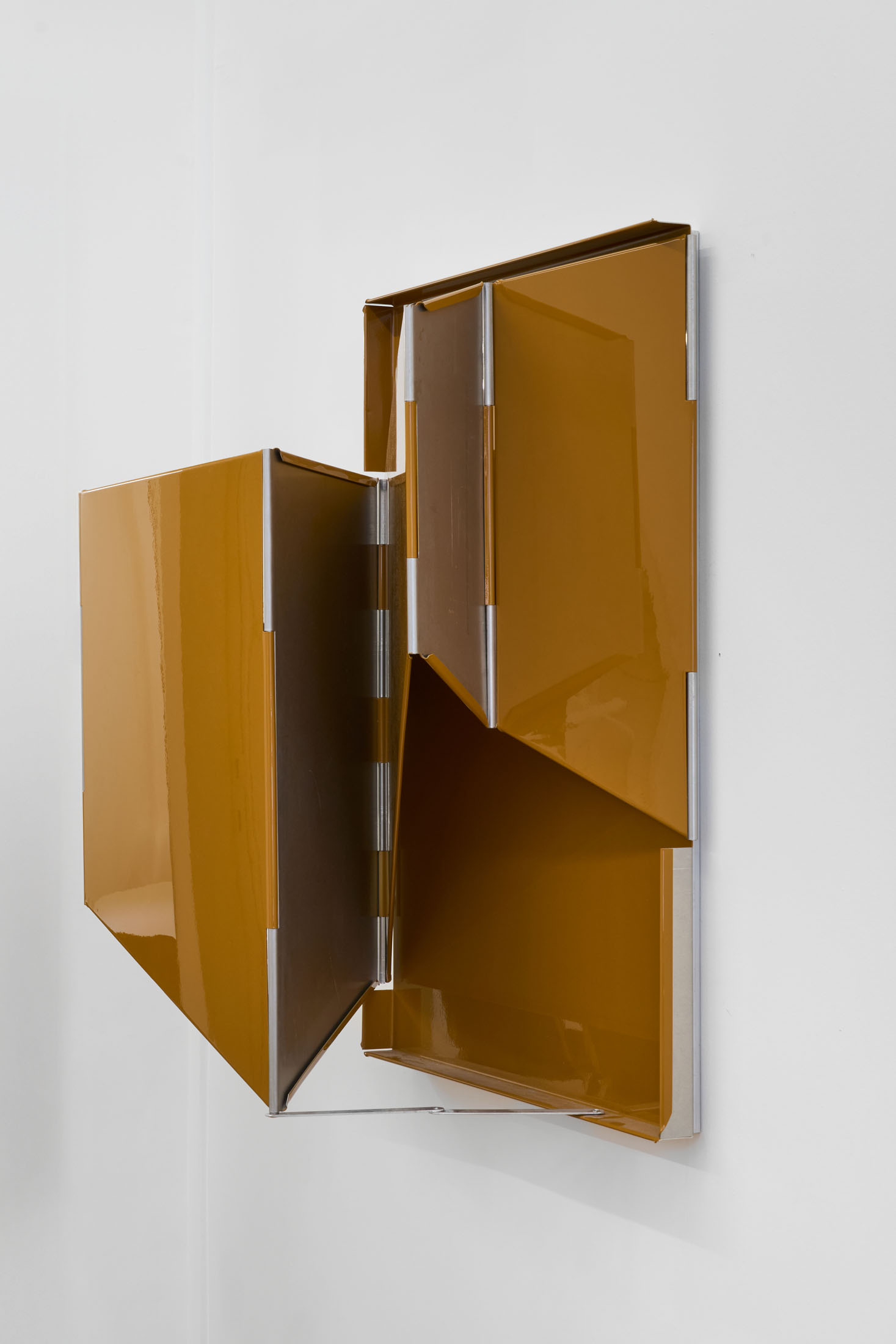 Voïta’s photographs are images of physical objects he sets up in his studio. As flat representations, they depart from their subject: One instead sees a camera, a building, a straight cut, a geometrical shape. They evoke a process of composition that gets illustrated in sculpture. Picture planes literally break in Voïta’s movable objects, which change two things at once: themselves and the space that contains them. It is as though photography told the artist what to sculpt.