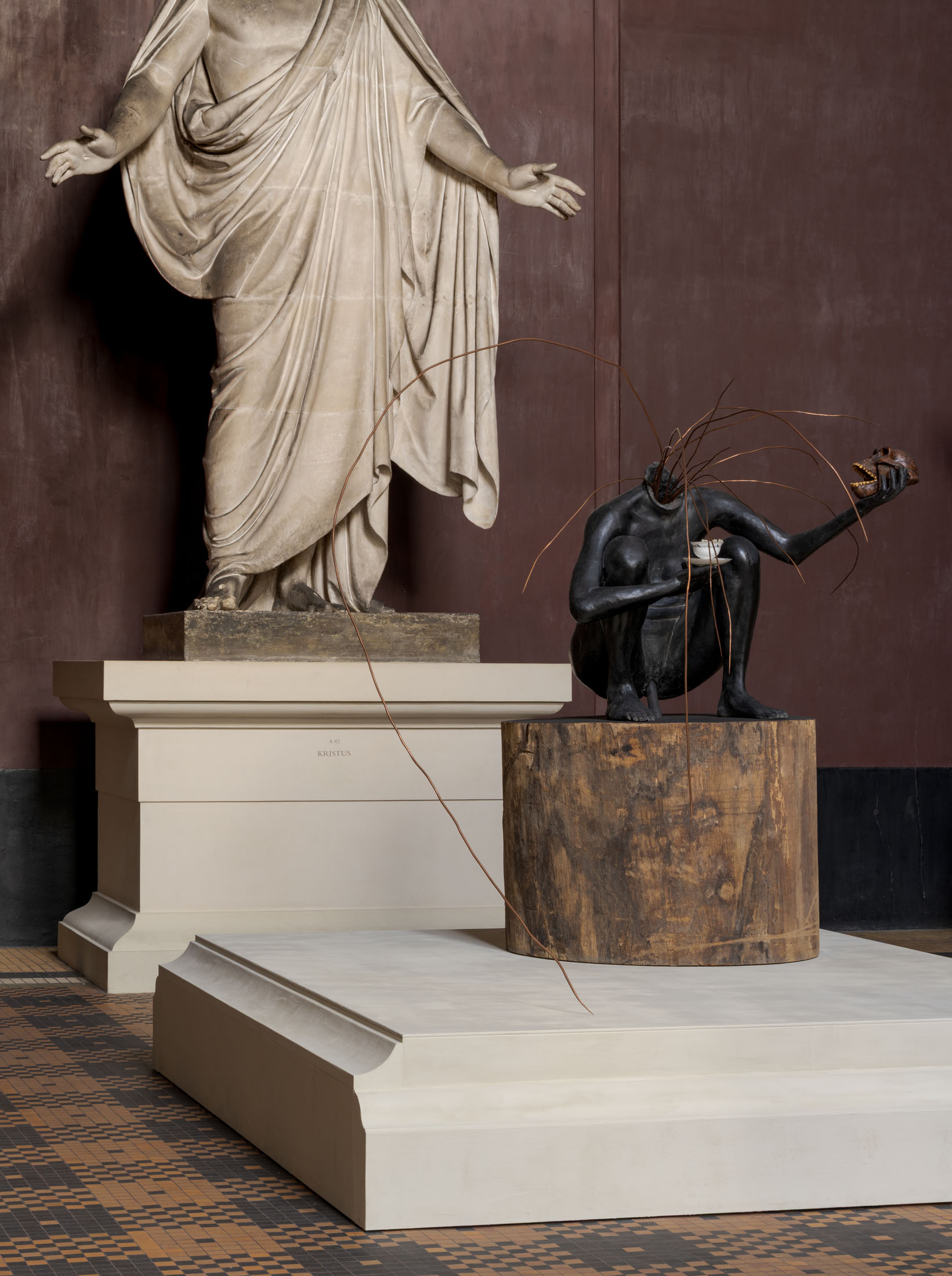 Bharti Kher explains: “This exhibition gives me an opportunity to initiate a dialogue with the historical and is also a unique opportunity to exhibit alongside Thorvaldsen’s sculptures and the museum’s extraordinary architecture. We are both from very different sides of the world and yet engage culturally and philosophically with the figure and the inner workings of the body. We are both collectors of things and memories and these for me are also embedded within the work. Art can connect us between continents and cultures and across time. It really is a visceral and cognitive language of its own making.”