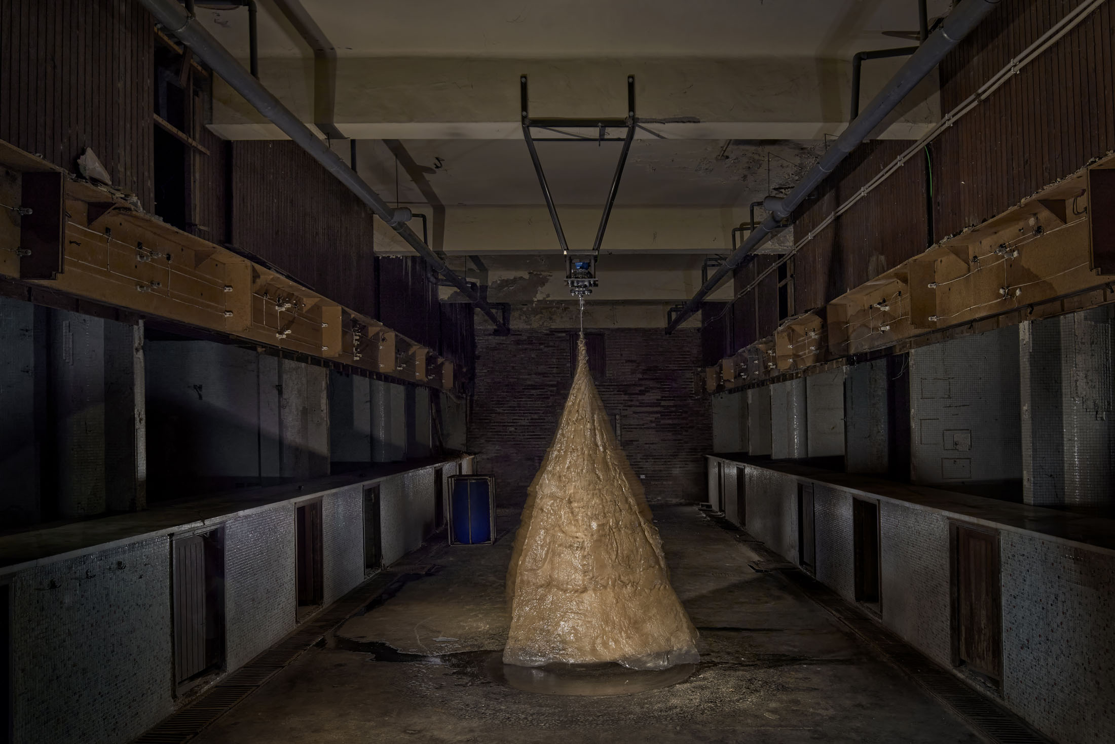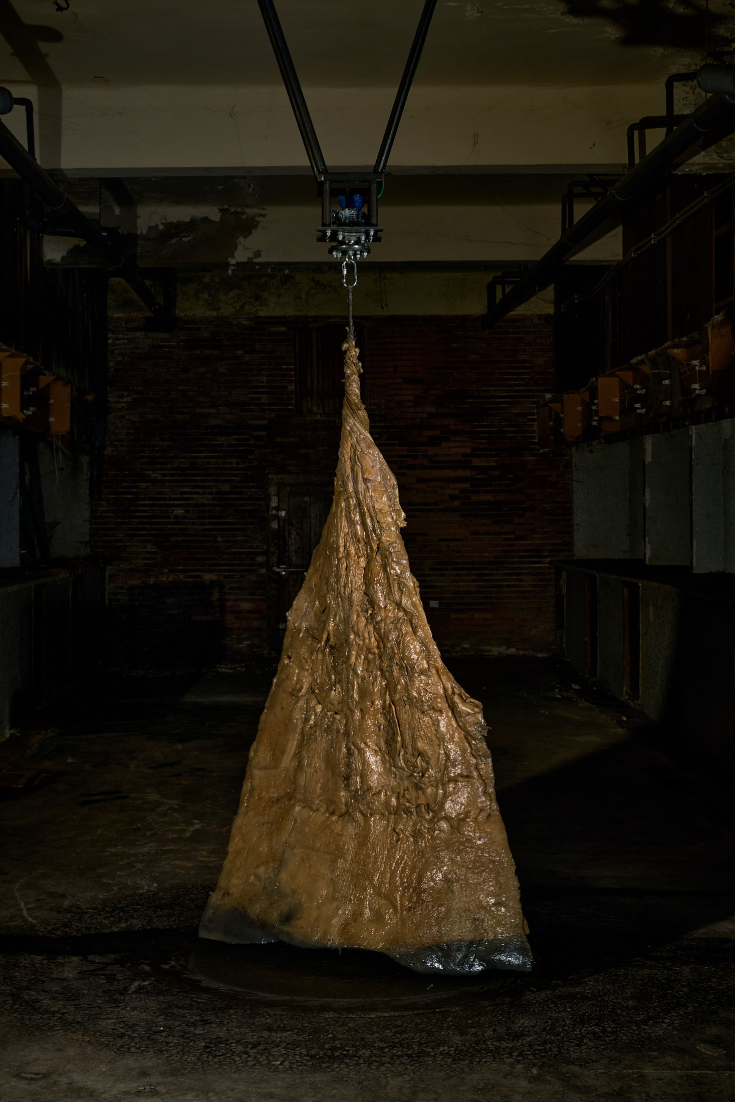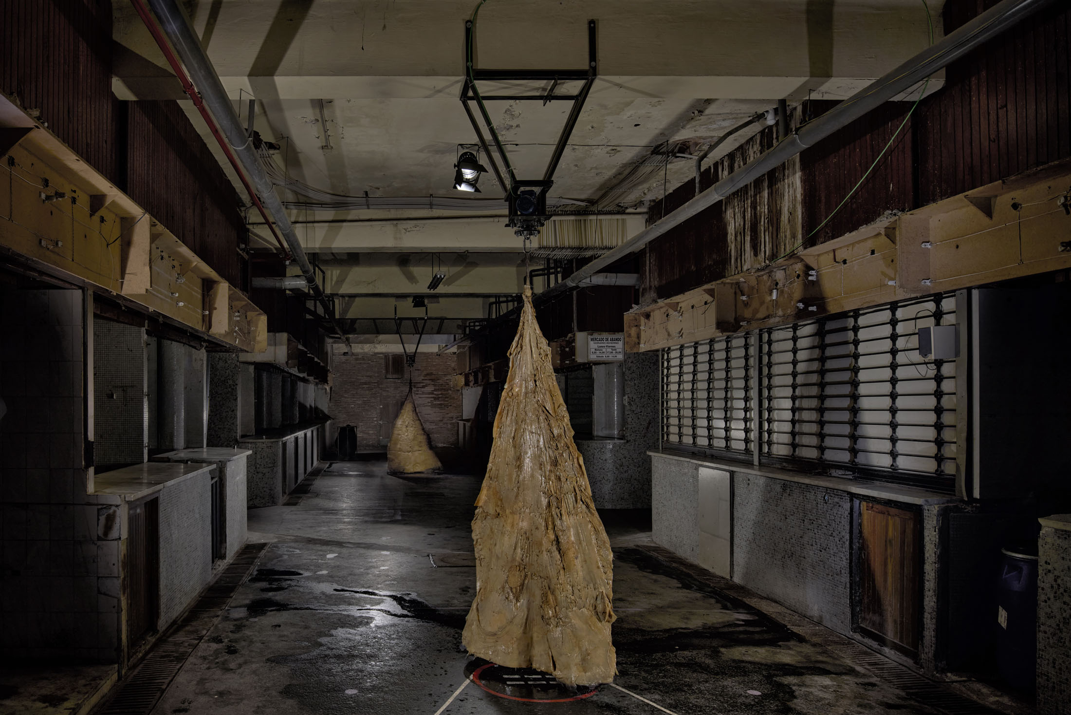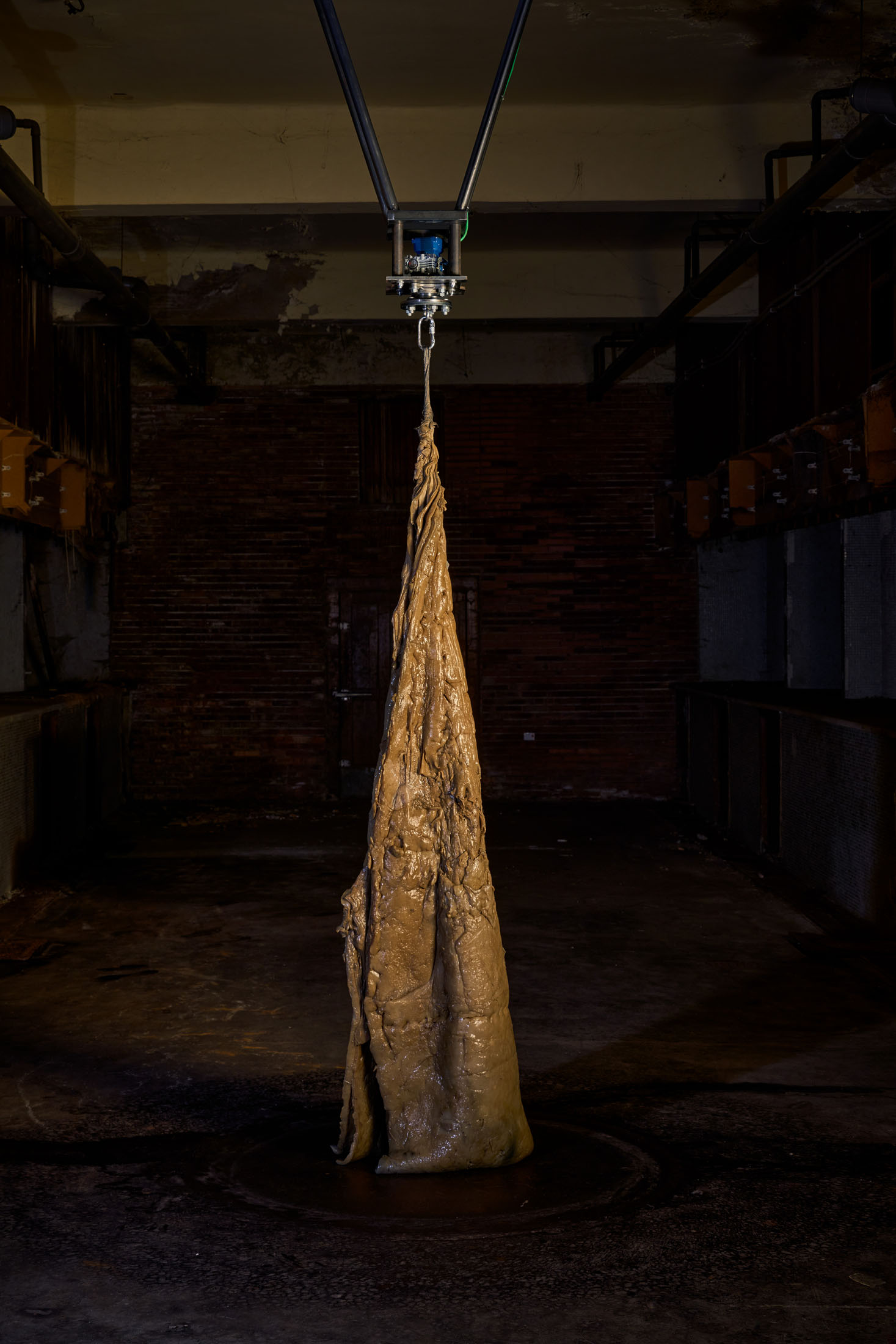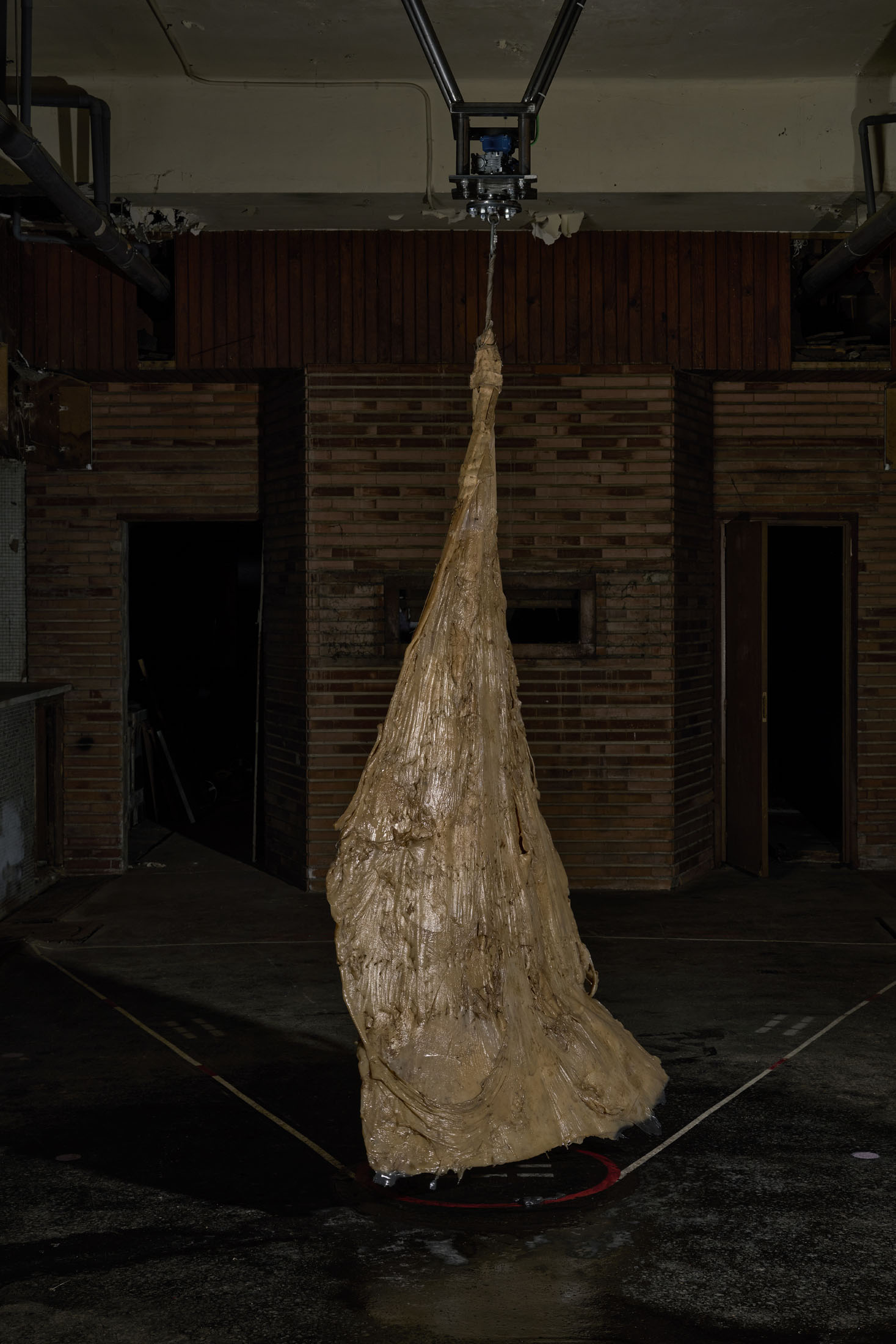 Bianca uses robotic mechanisms to activate the SCOBYs in her installations. Industrial control allows her to animate them and thus engage in a dialogue with the tradition of the exhibition space as a place of stillness where stable, inert, and recognizable objects are displayed. On previous occasions, the neatness of the white cube has also favored a certain distancing. Unlike them, the adaptation of the installation we have conceived together with Bianca brings this last contextualisation operation into play.
