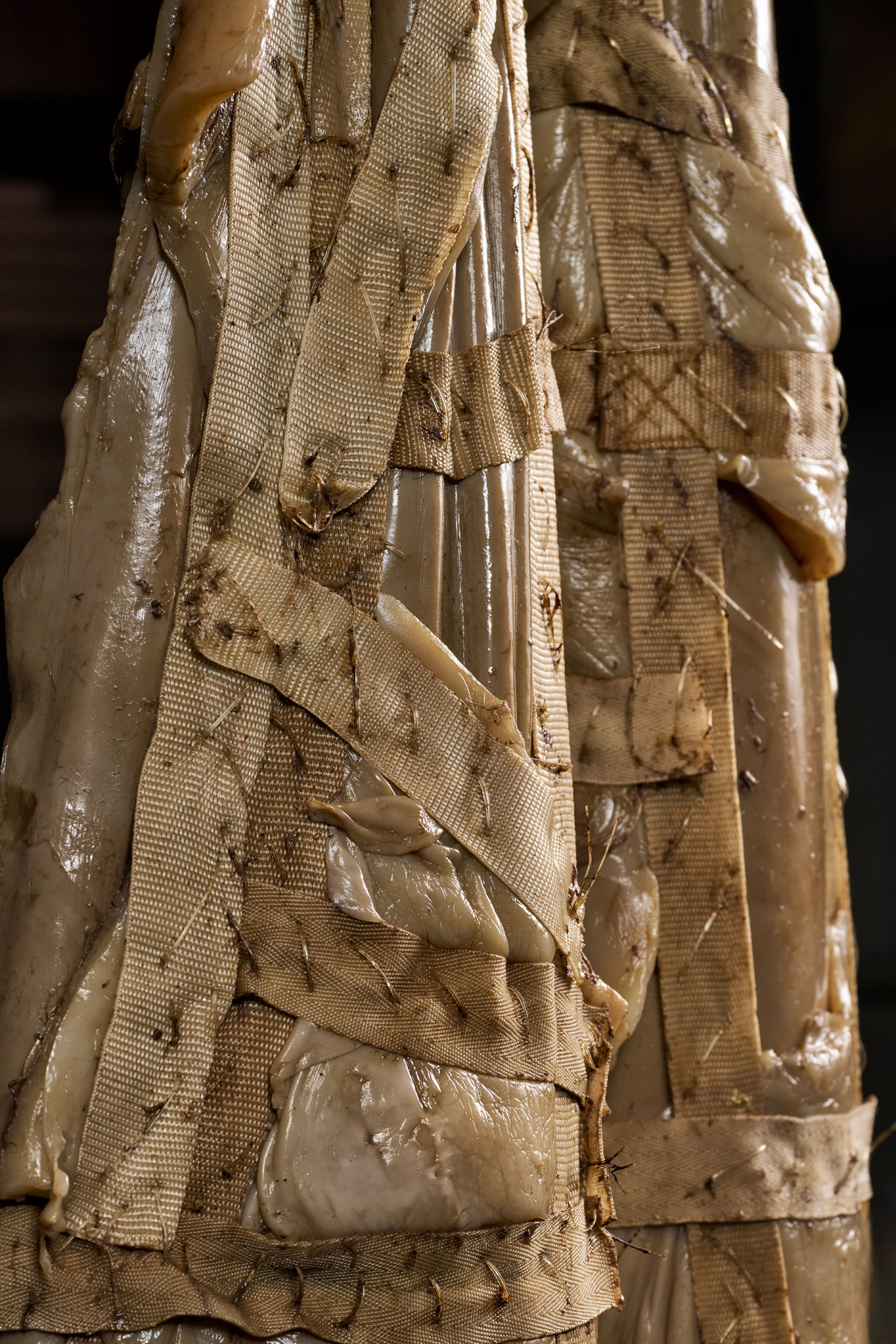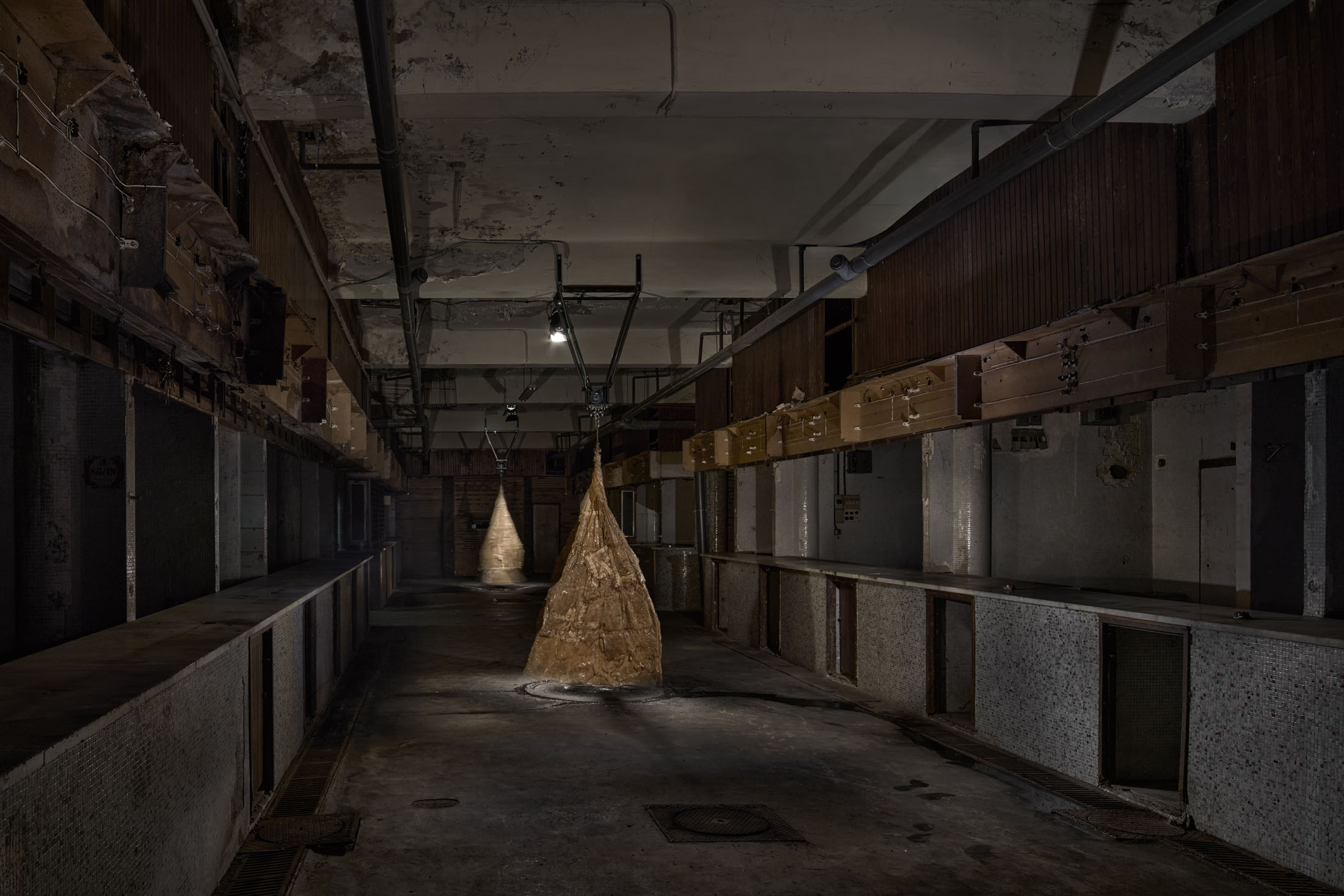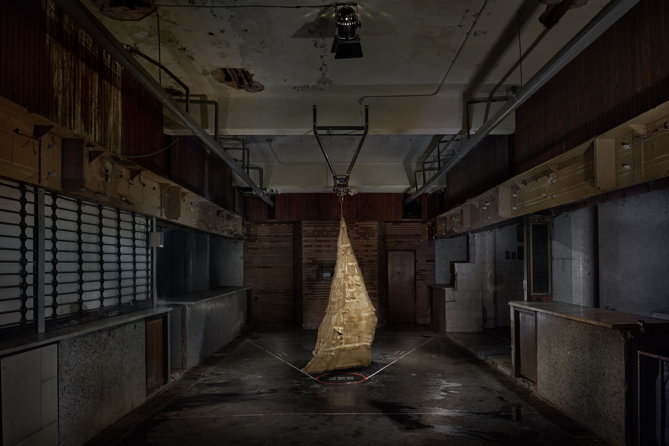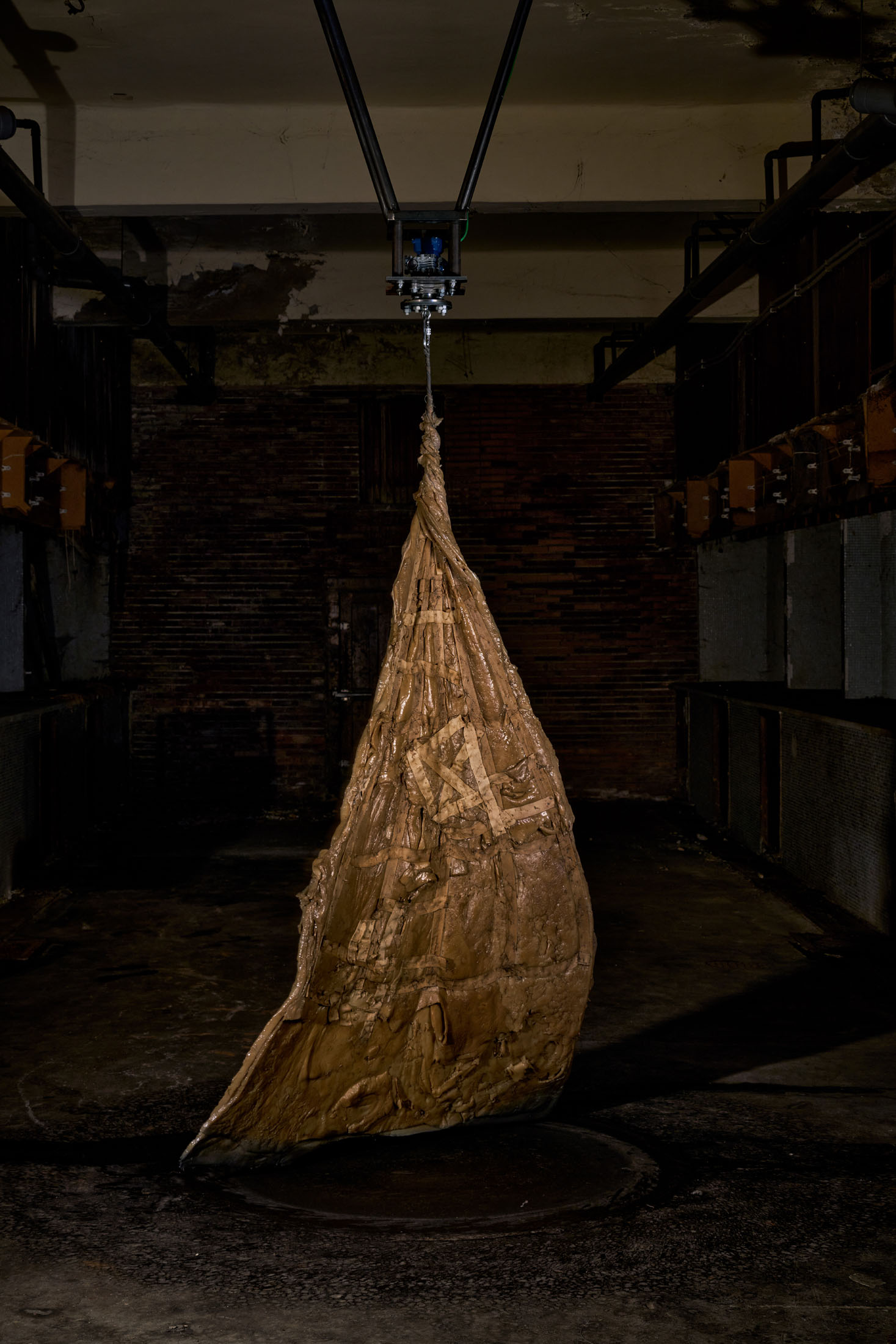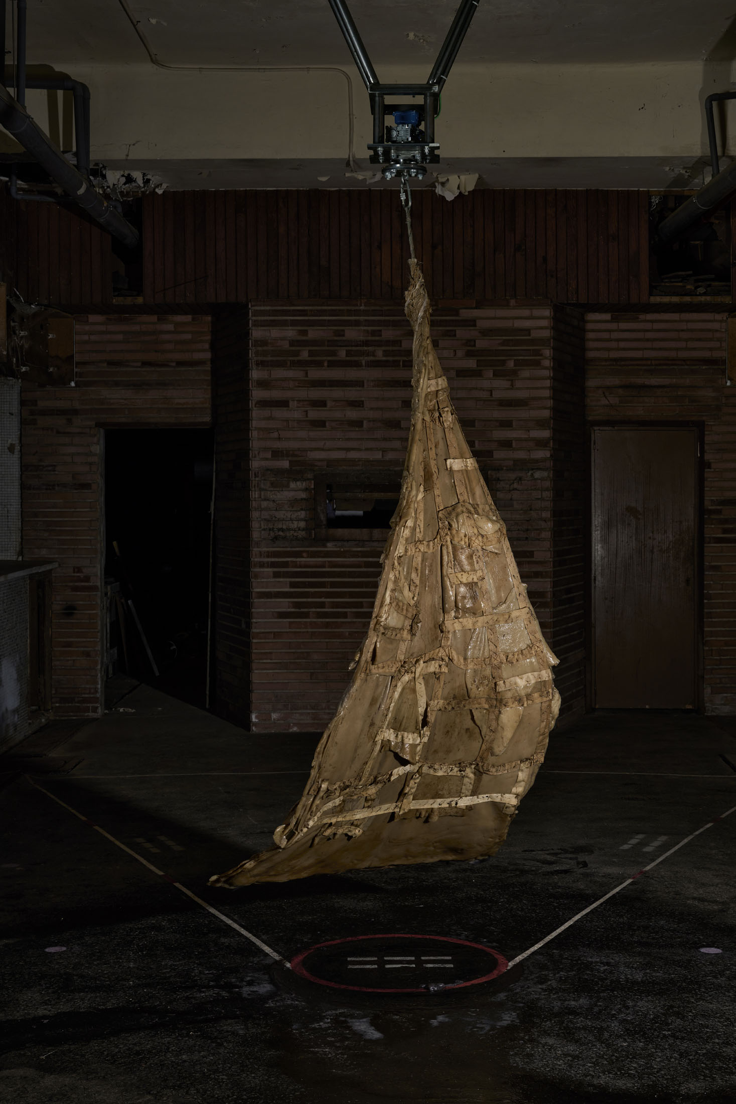 Bianca uses robotic mechanisms to activate the SCOBYs in her installations. Industrial control allows her to animate them and thus engage in a dialogue with the tradition of the exhibition space as a place of stillness where stable, inert, and recognizable objects are displayed. On previous occasions, the neatness of the white cube has also favored a certain distancing. Unlike them, the adaptation of the installation we have conceived together with Bianca brings this last contextualisation operation into play.
