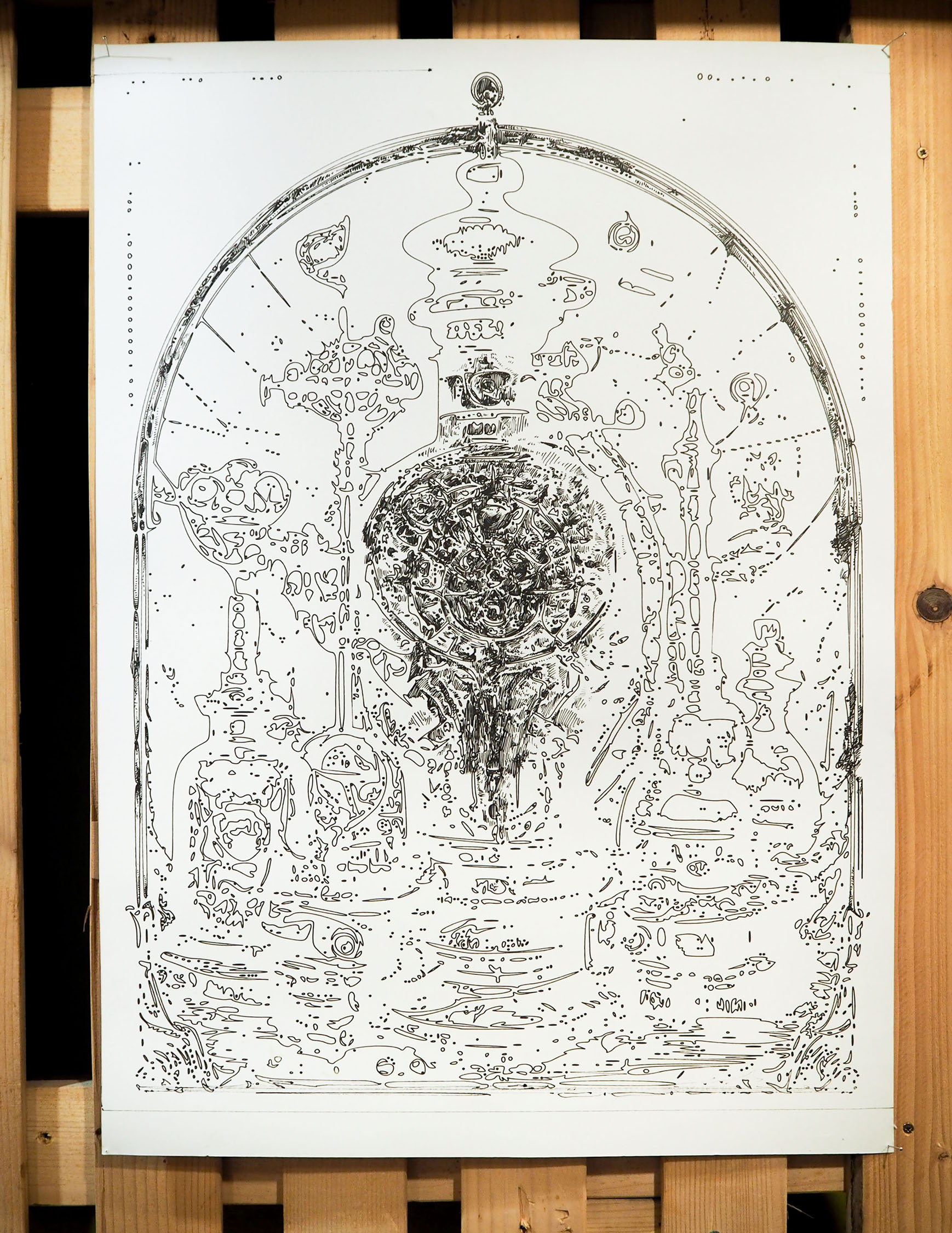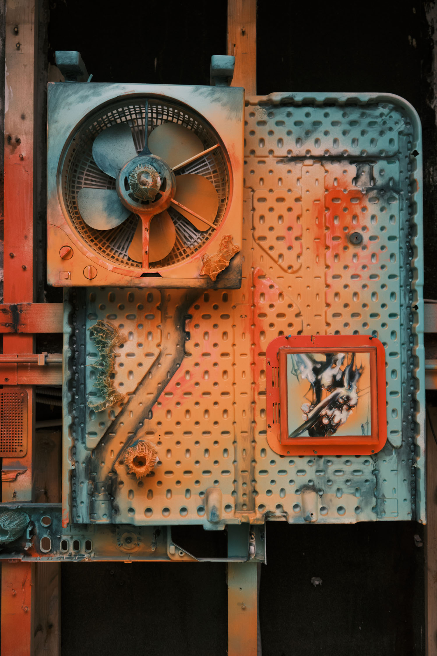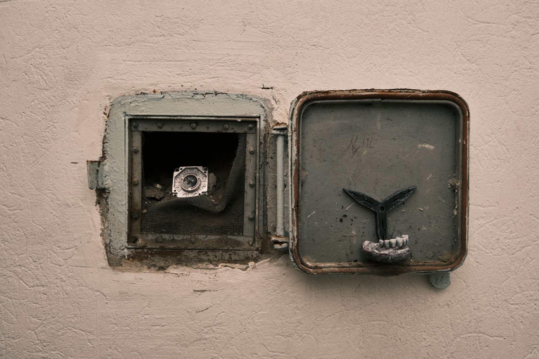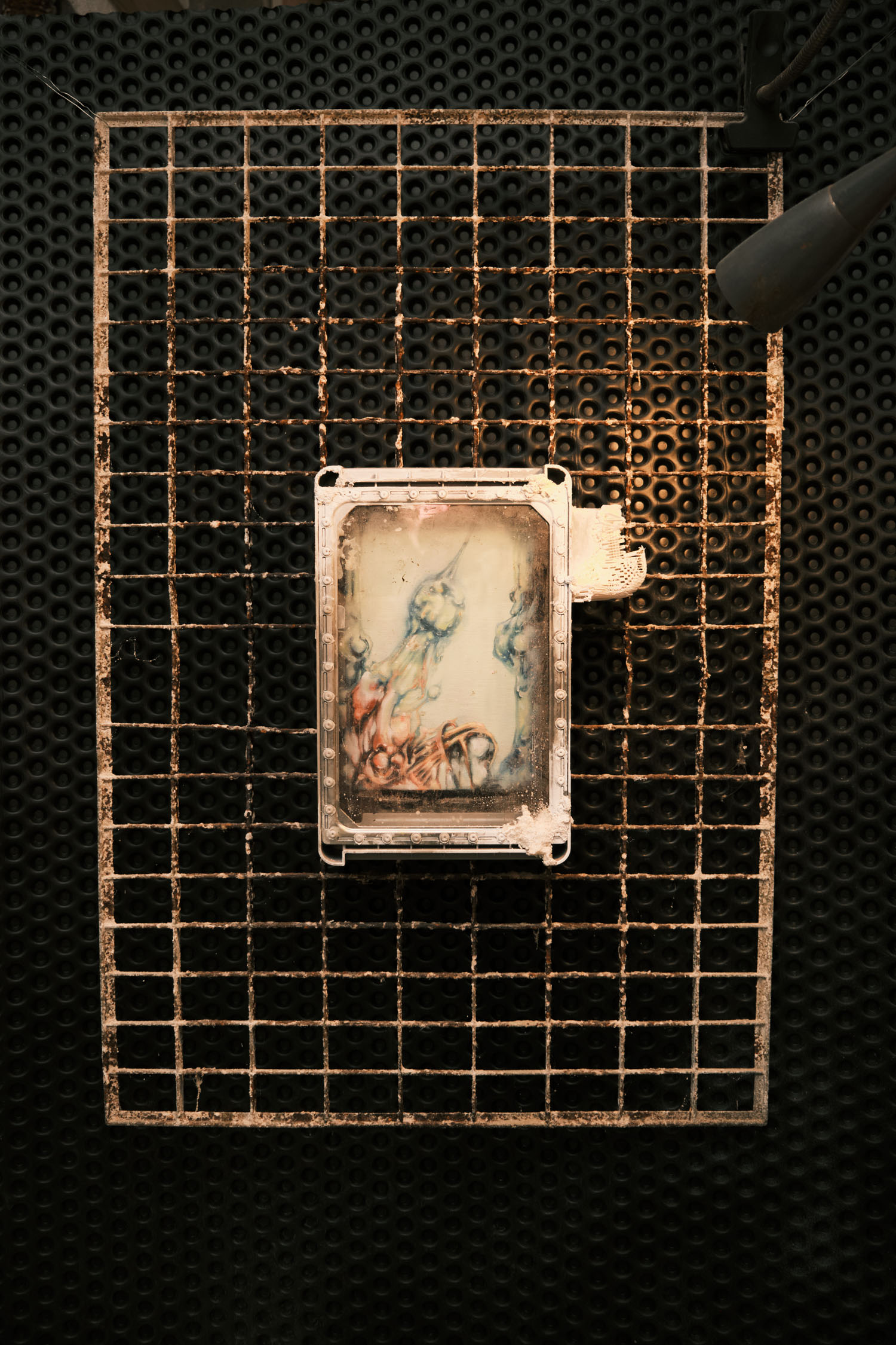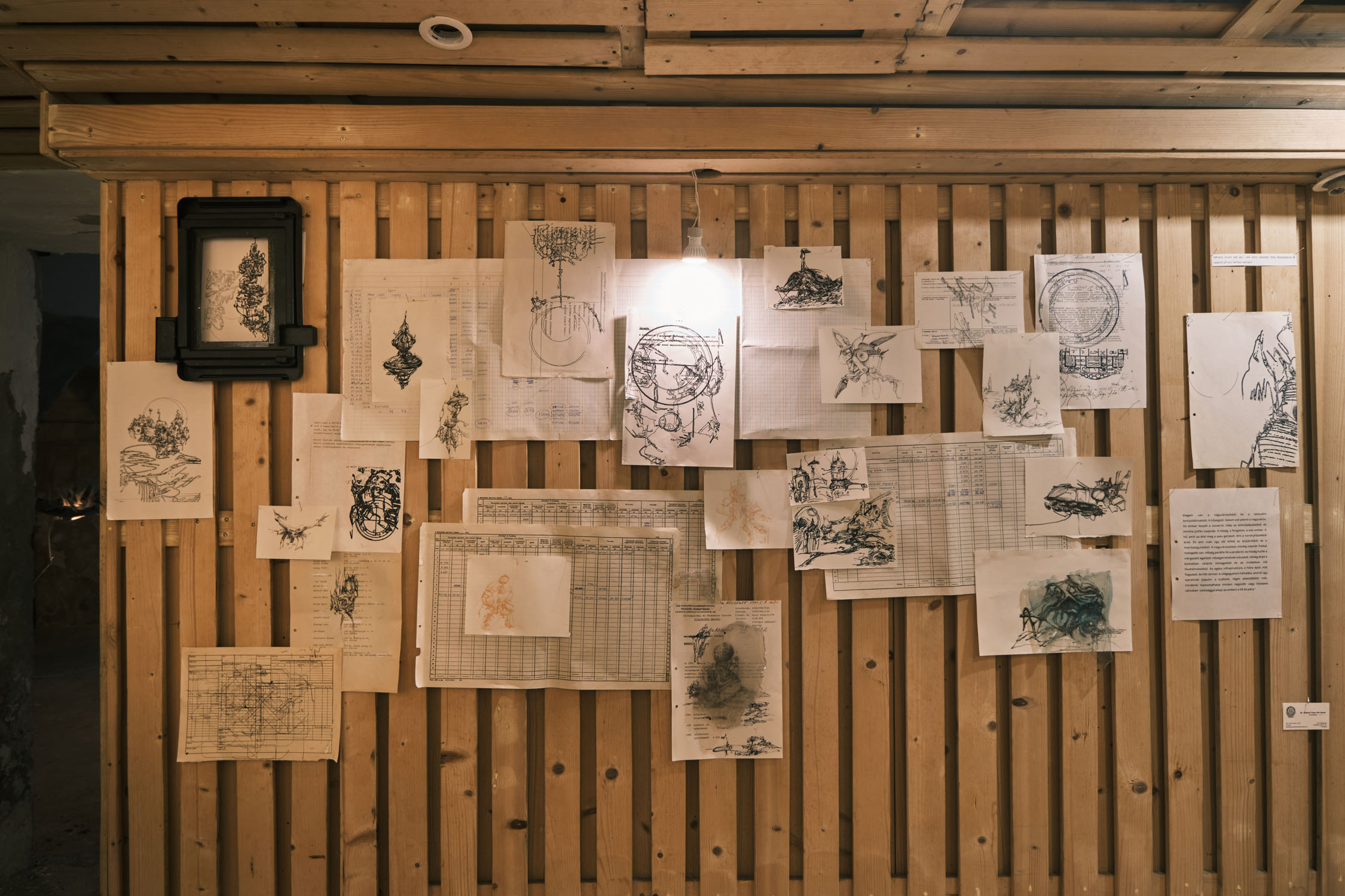 The exhibition is an environment-like space, a journey into the future by aesthetic experiences and free associations based on a lore (background story) that have been published earlier for the visitors. The offsite venue in the heart of Budapest was a haloterapeutical cellar once. Now it is out of use. In our after-the-future saltworld, it is a safe-heaven for scavenger partisans, a secret alchemy laboratory and an antiquities shop for the collected goods and parts. Life is harsh on the salty sand dunes. The ruined city is raided so many times that the few survivors have seek shelter underground. People make a living by mining and processing salt from the scorched earth, while youngsters organize junkcar races in the dried riverbed of the Danube. Saltpunks are the people who try to survive in these rugged conditions, but the term also refers to an aesthetic and political genre, like cyberpunk. The immersive, atmospherical space and the fragmental nature of the exhibited found-like objects make the visitors create their own narratives and stories about this imagined world.