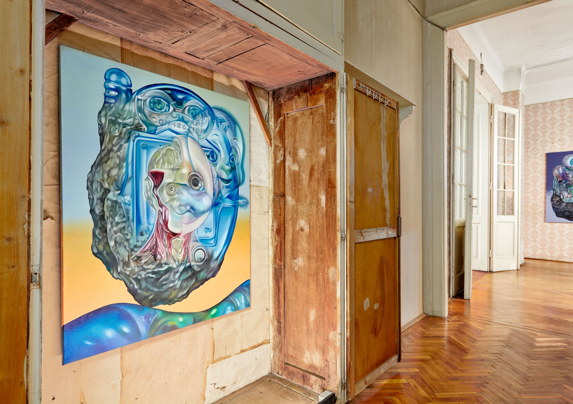 Botond Keresztesi is one of the most powerful and distinctive voices in contemporary Hungarian painting. His works simultaneously evoke the surreal distortions of consumer society, the nostalgic fragments of pop culture, and reconfigured references from art history. Earlier this year, he presented a solo exhibition at the X Museum in Beijing, and now, for the first time, Hungarian audiences can experience his latest body of work in the castle-like, magical exhibition space of Longtermhandstand.