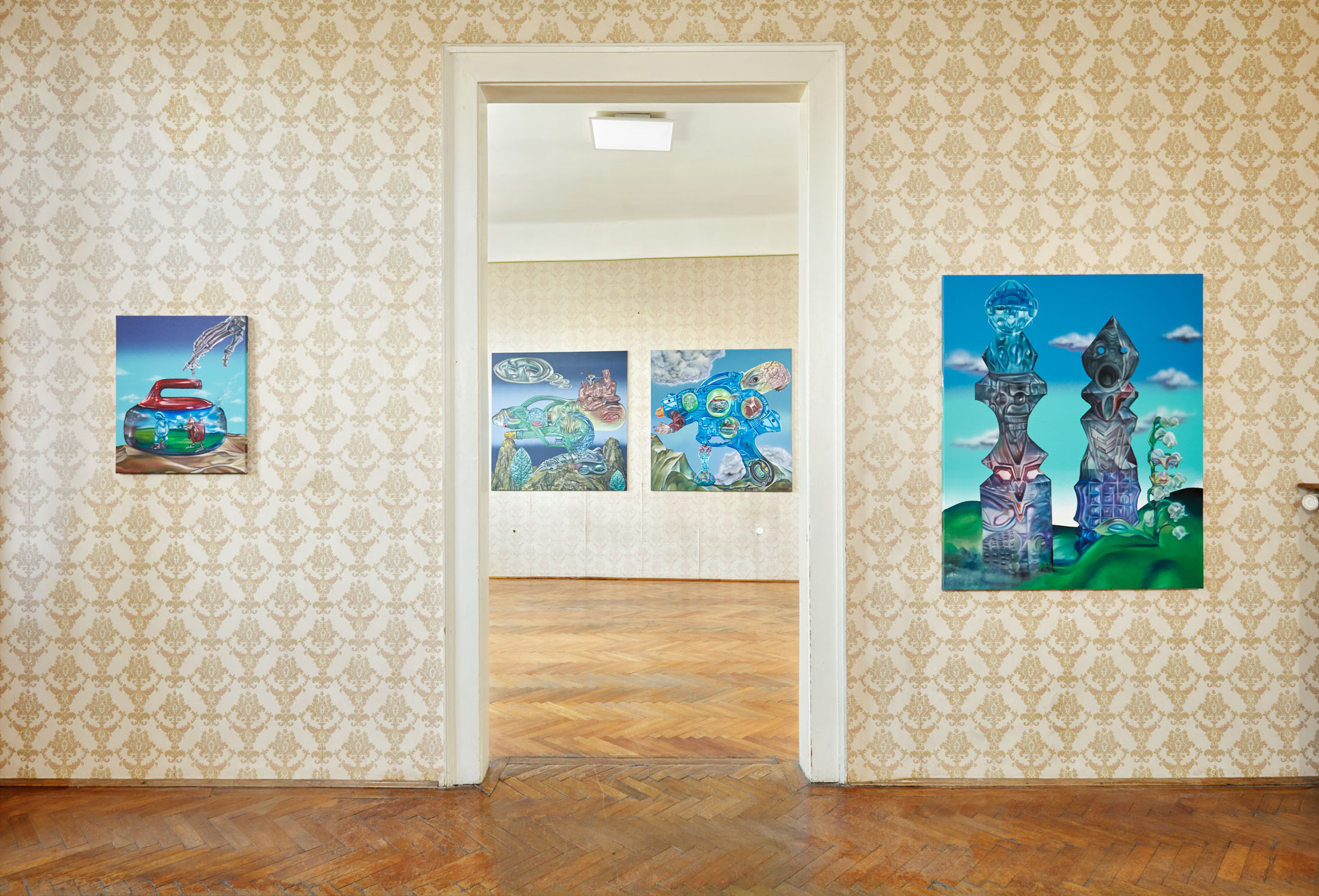 In this exhibition, Keresztesi once again creates an alternative painterly cosmos, where the congestions of visual memory, the defunct bodies of collective pop icons, and reinterpreted painterly traditions slide into one another, producing kaleidoscopic images.