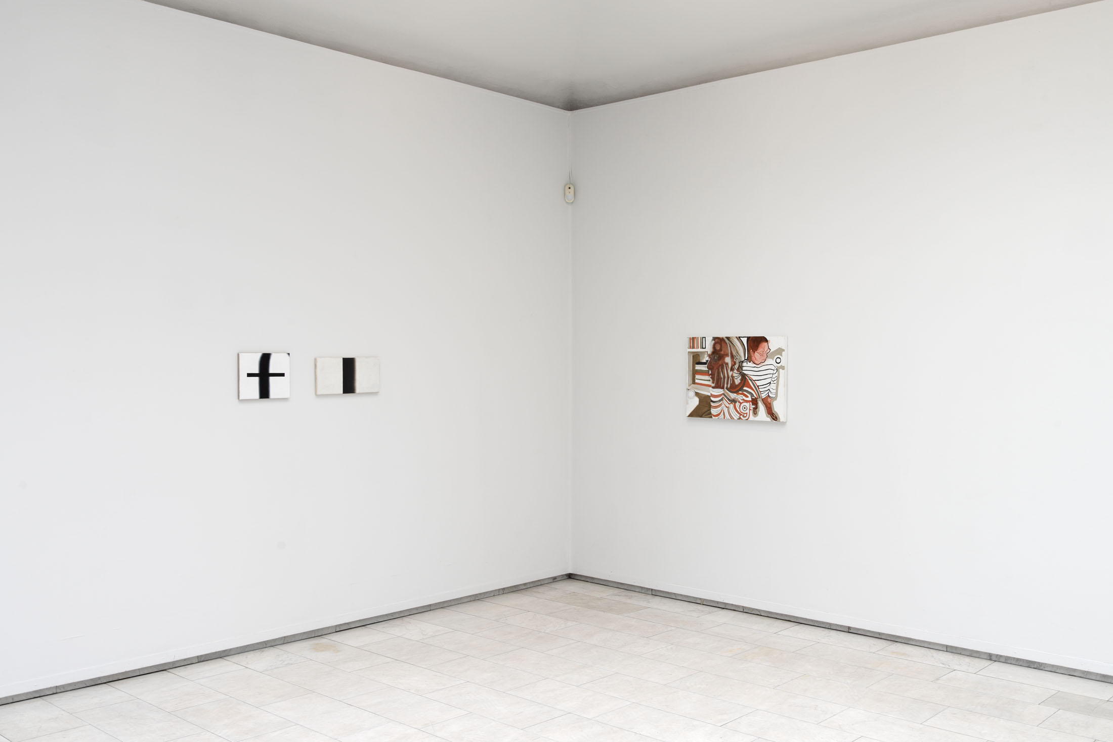 The building blocks of the works—letters, people, body parts, or clothing—are arranged in a scenography where everything is potentially performative. What unites them all is the ambiguous balance between encoding and decoding, between figuration and abstraction.