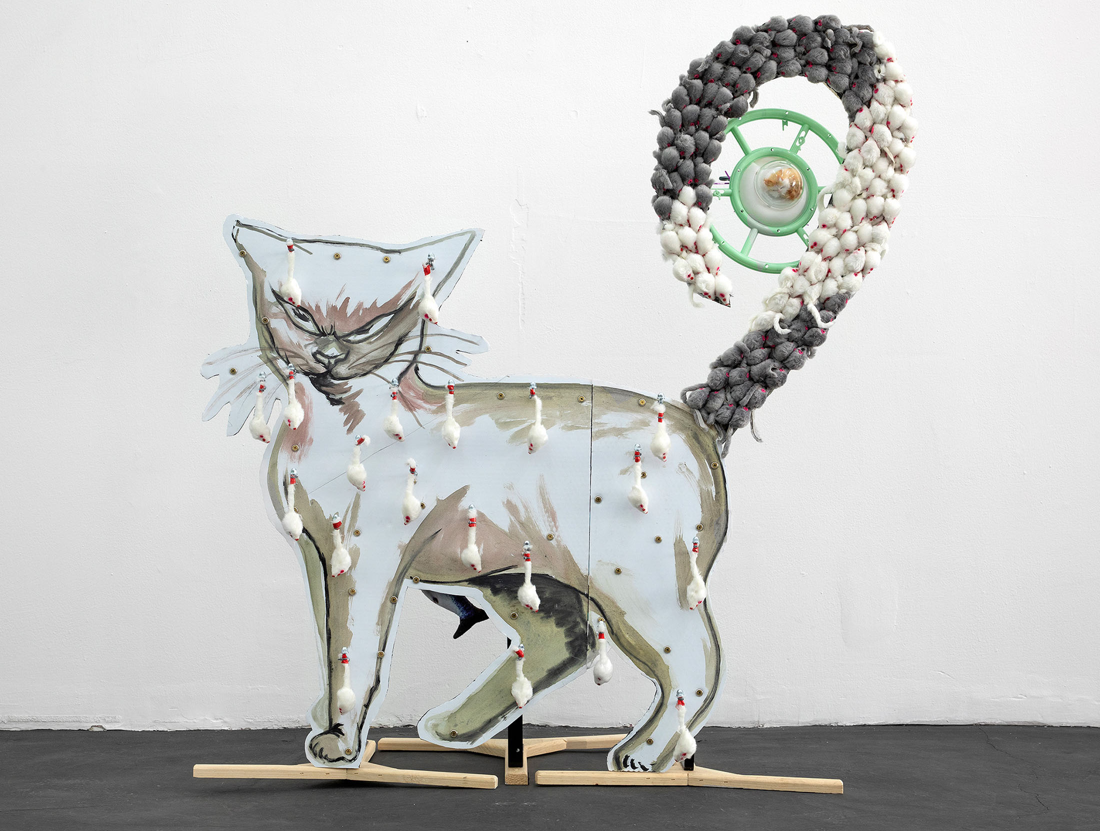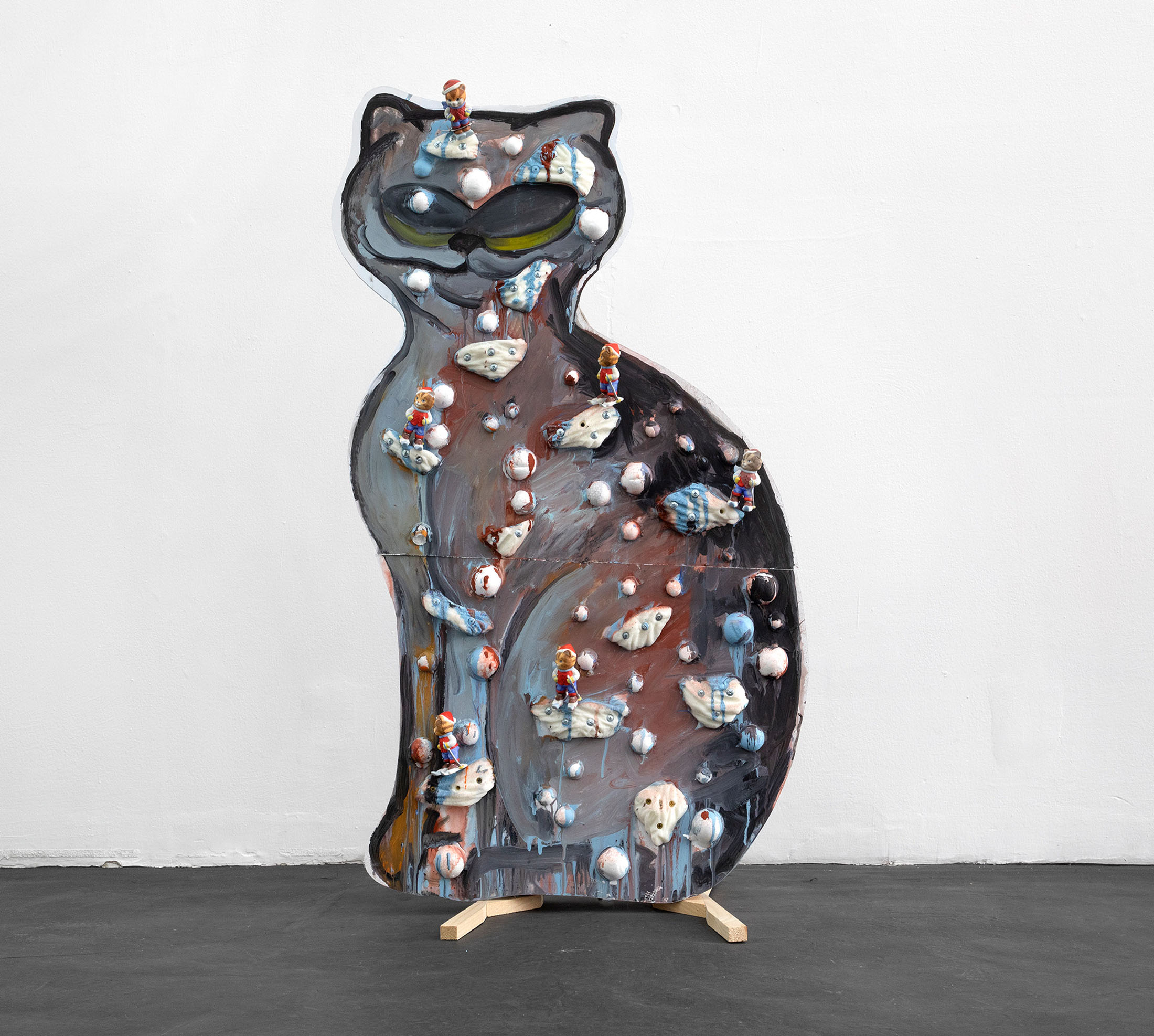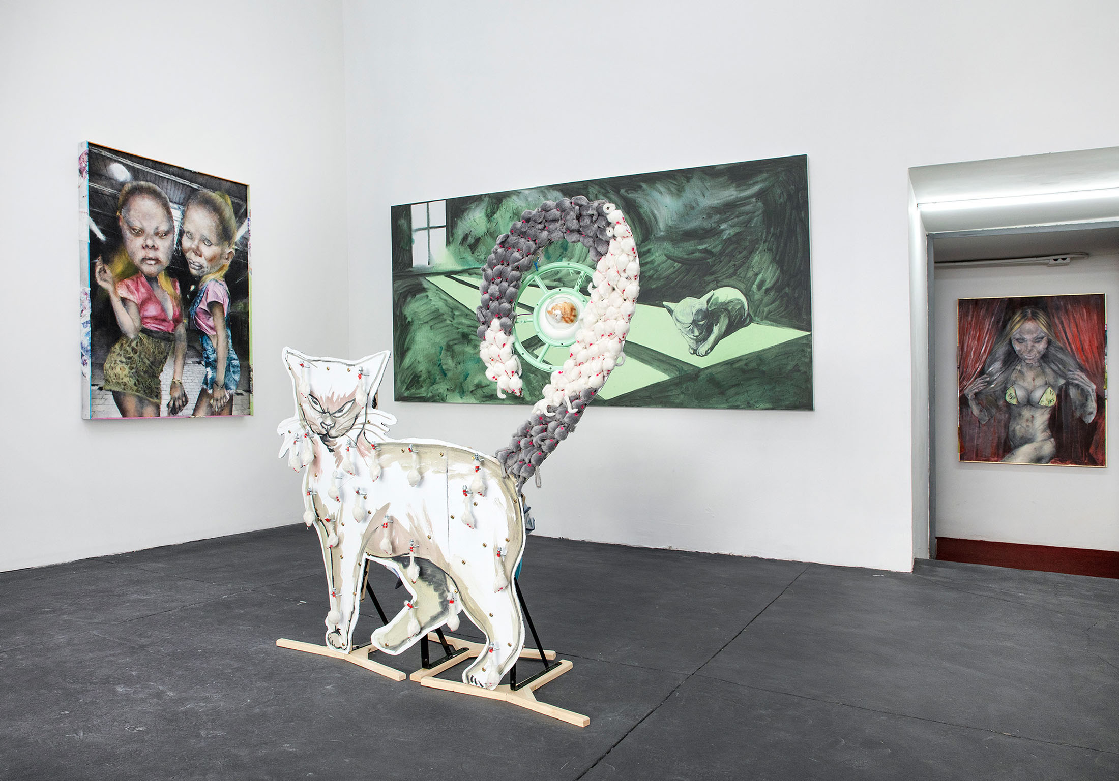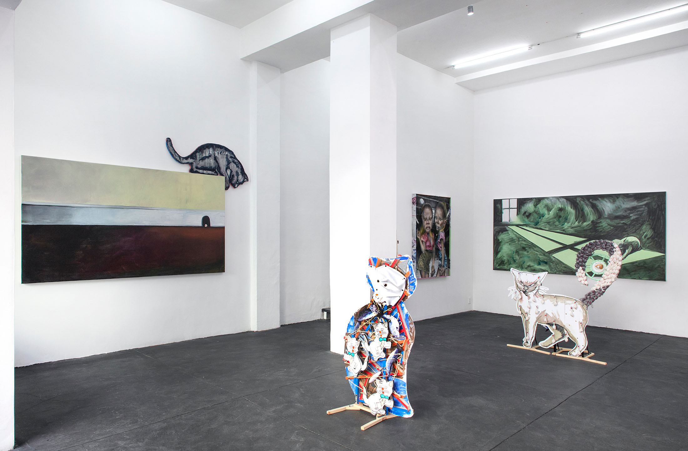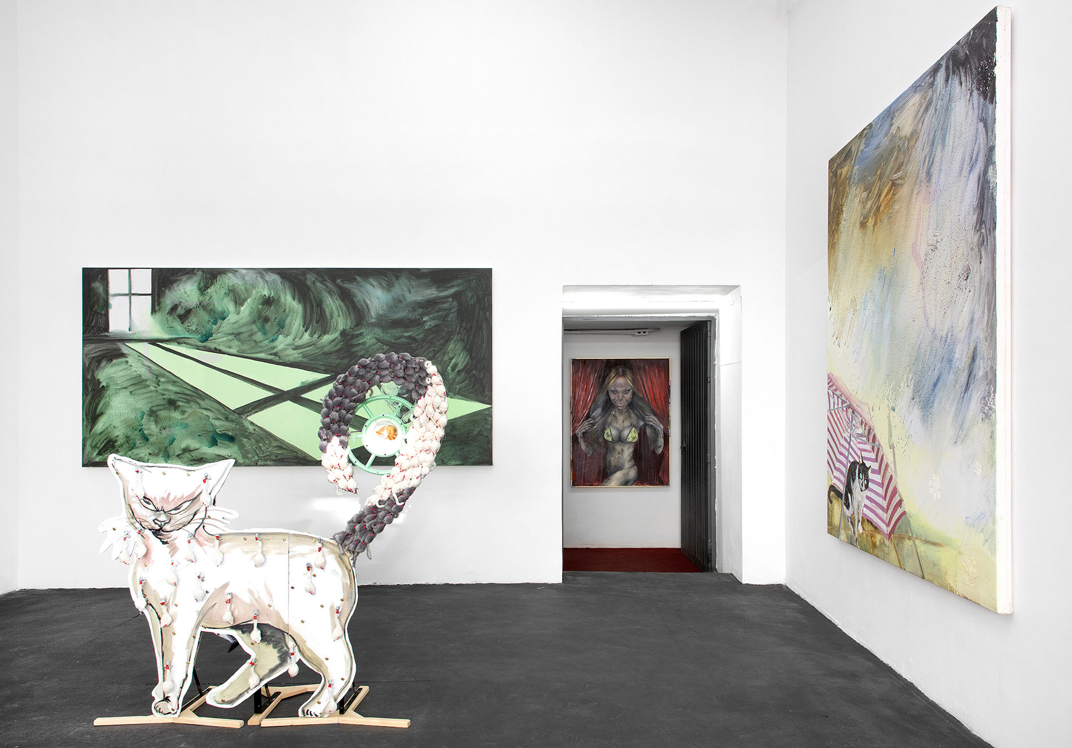 General Expenses is pleased to present Meadowlands, a two-person exhibition featuring Catherine Mulligan and Philip Hinge. Taking its name from the enigmatic ecosystem of wetlands in New Jersey—home to sports arenas, industrial ruins, and a history of clandestine waste dumping—the show displays how beauty and obsession have influenced their practice. Mulligan’s oil paintings depict portraits of hyper-feminine women, not far away from models, surrounded by an eerie landscape with a Y2K aesthetic bringing back the uneasy tensions between the concept of beauty and the dark side of how to achieve or maintain it. Hinge, navigates the thin line between humor and seriousness, exploring through contemporary painting his obsession with cats into works that blend historical and modern representations of them through time, bringing into question the high and low cultural legacies.