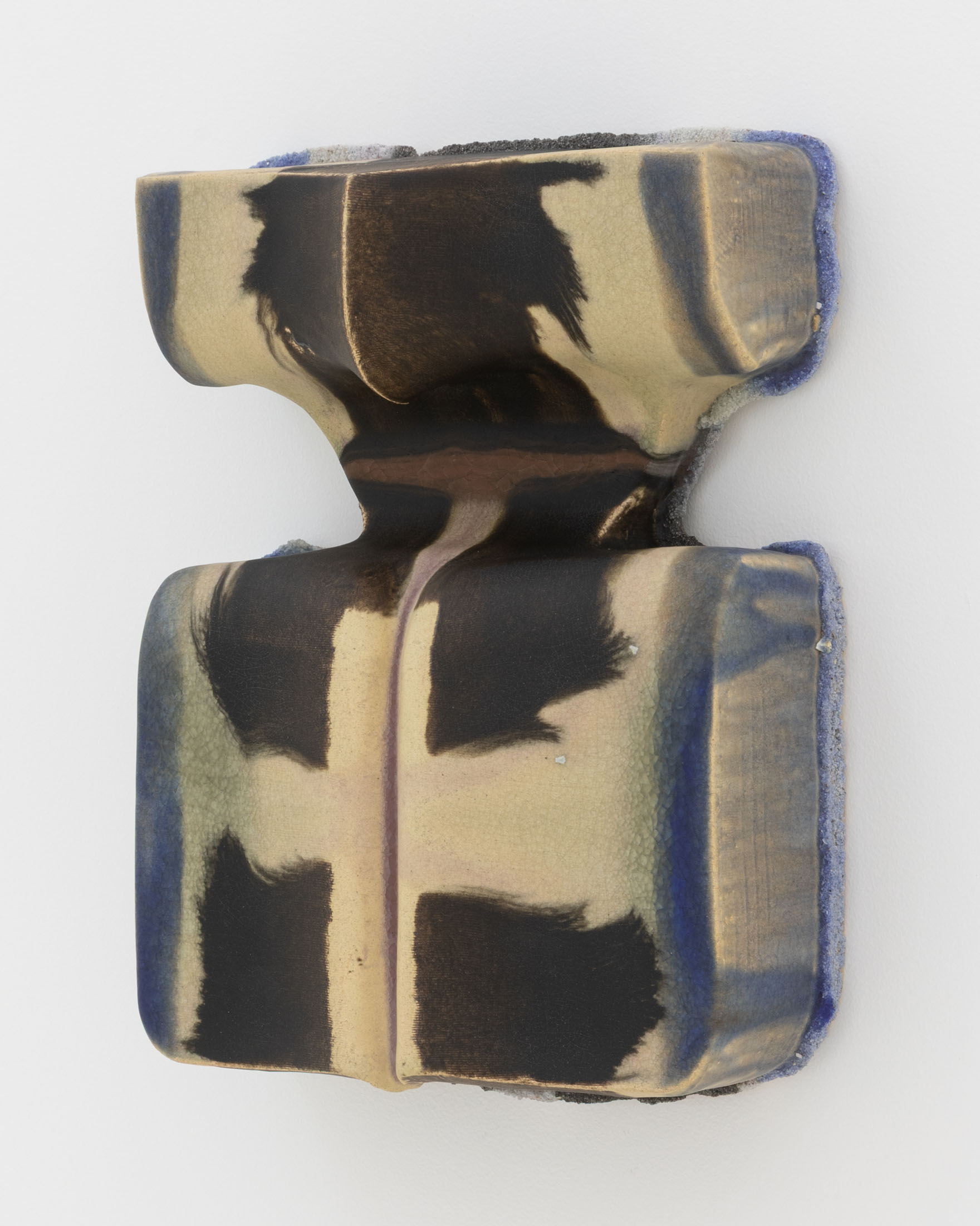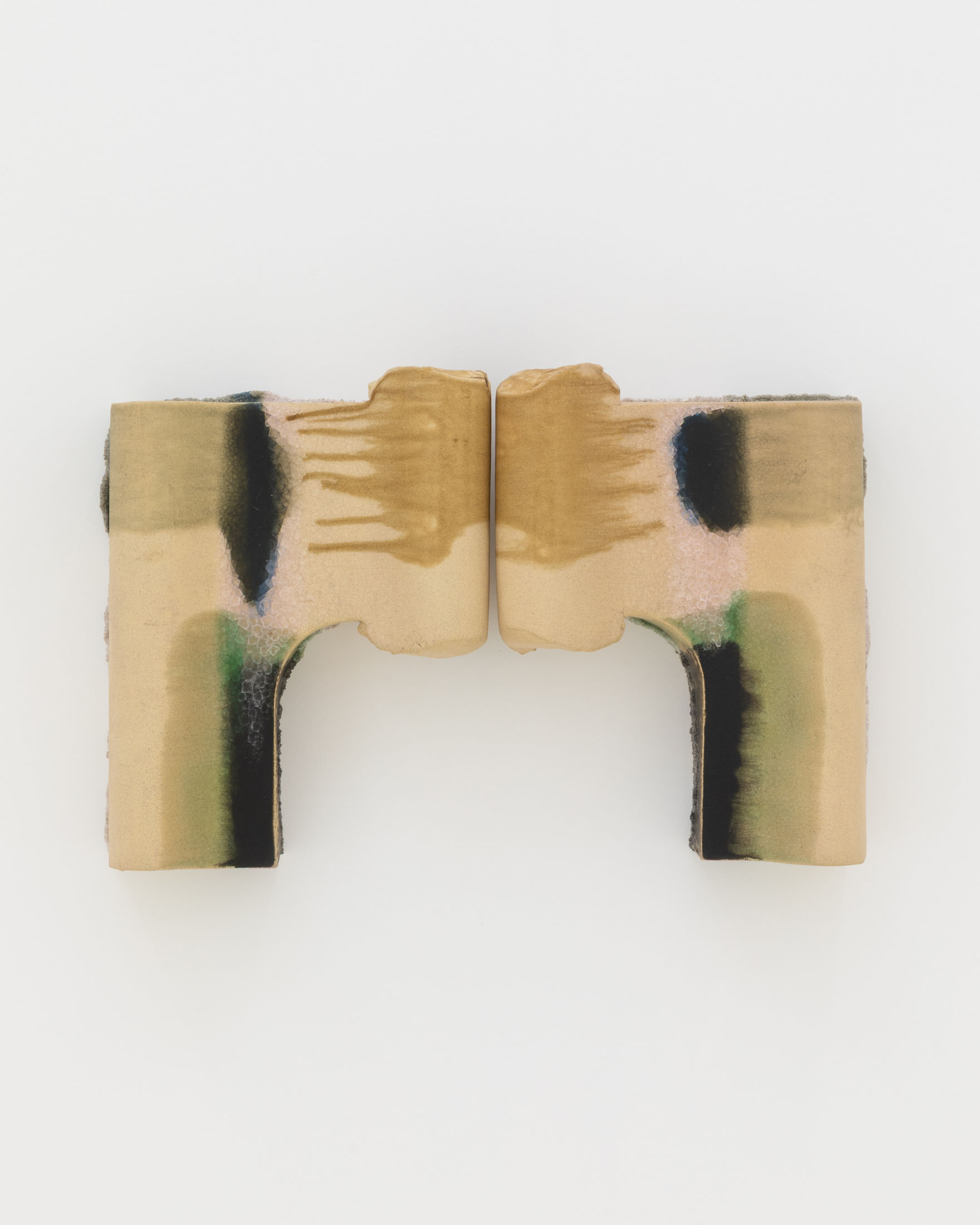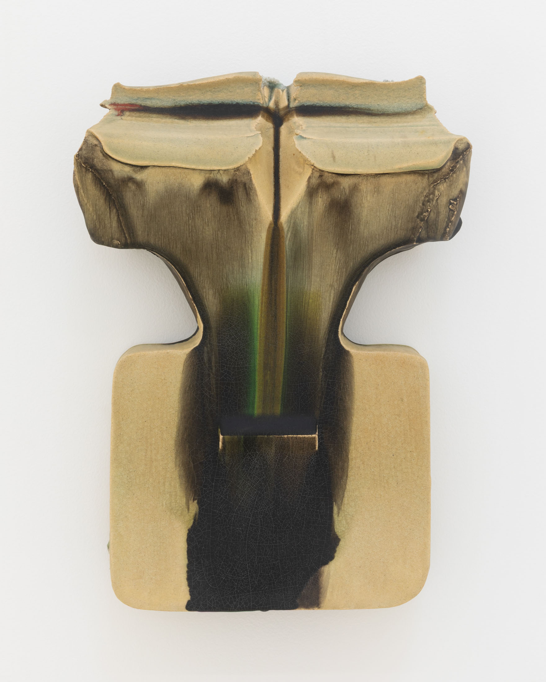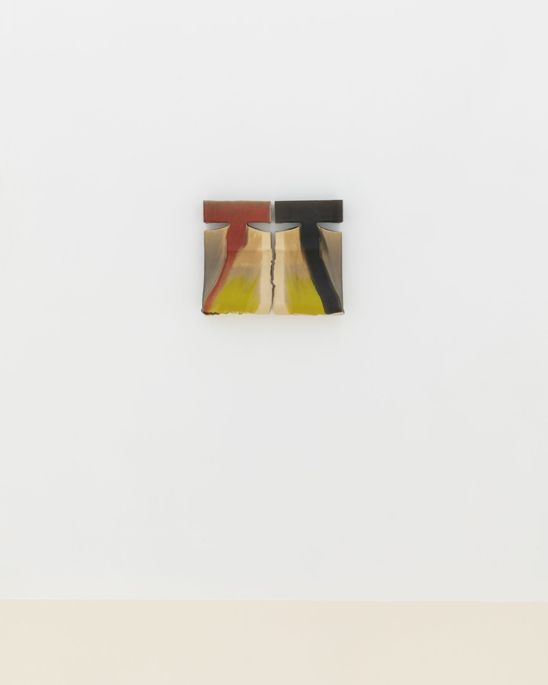 Life partners who have been collaborating together for almost a decade, Tyler Cross and Kyle Lypka make ceramic sculptures which are both freestanding and exist on the wall. The stark, if severe simplicity of what they create elegantly yields a multiplicity of allusions and significations. Loamy and alluvial, the work extends the sensuous line of the body over the rugged, coastal landscape of Northern California, as if the grainy complexion of the sculptures was buffeted smooth by the surf and wind. The formal silhouettes of the work, which are known to double or butterfly, teem with lexical, typographical, or heraldic evocations, bringing to mind an alien semiotics whose key has either been lost or has yet to be found.