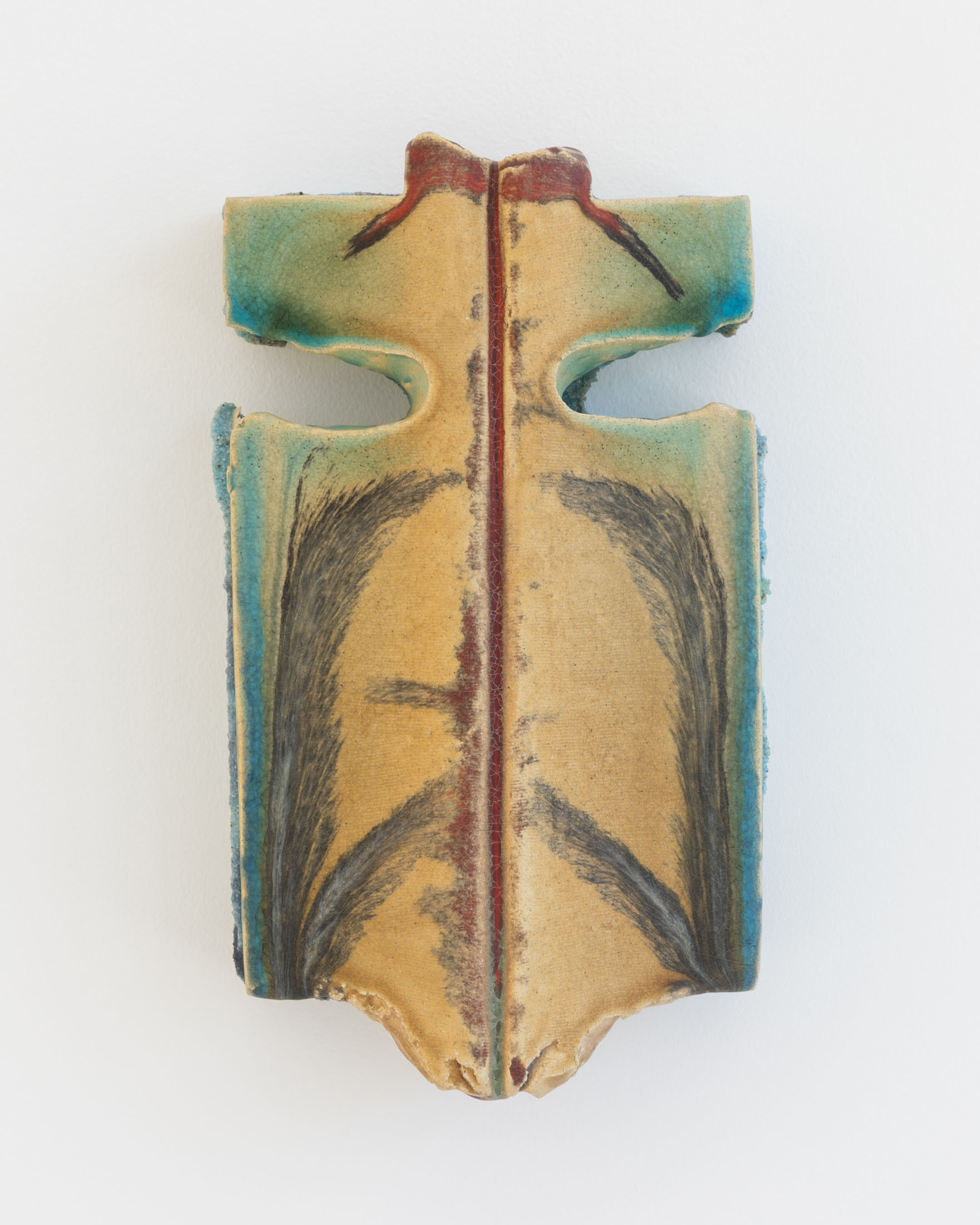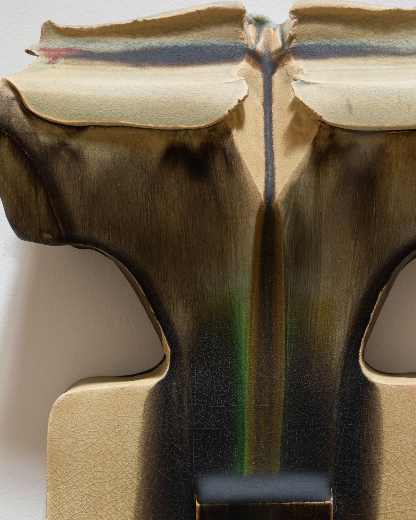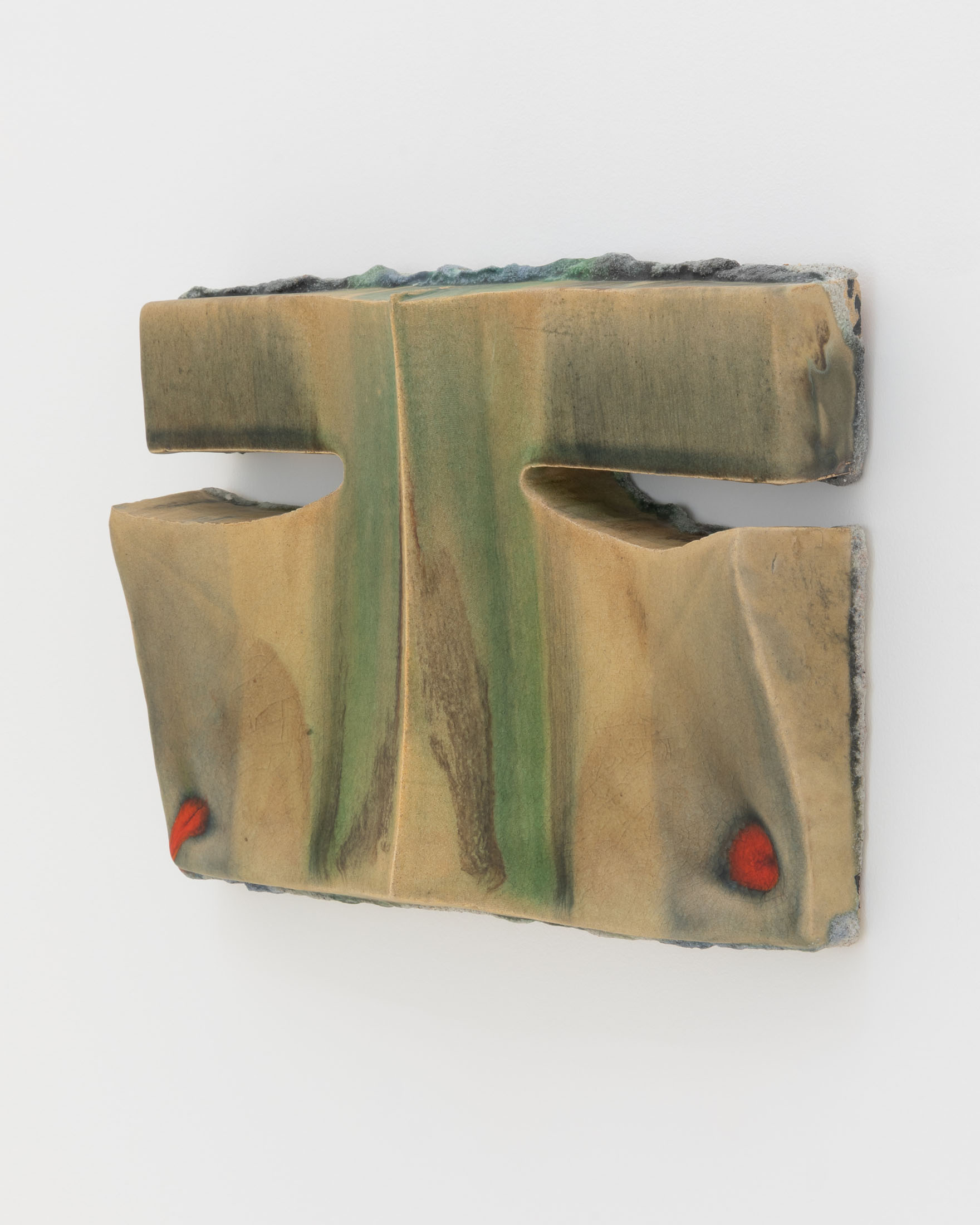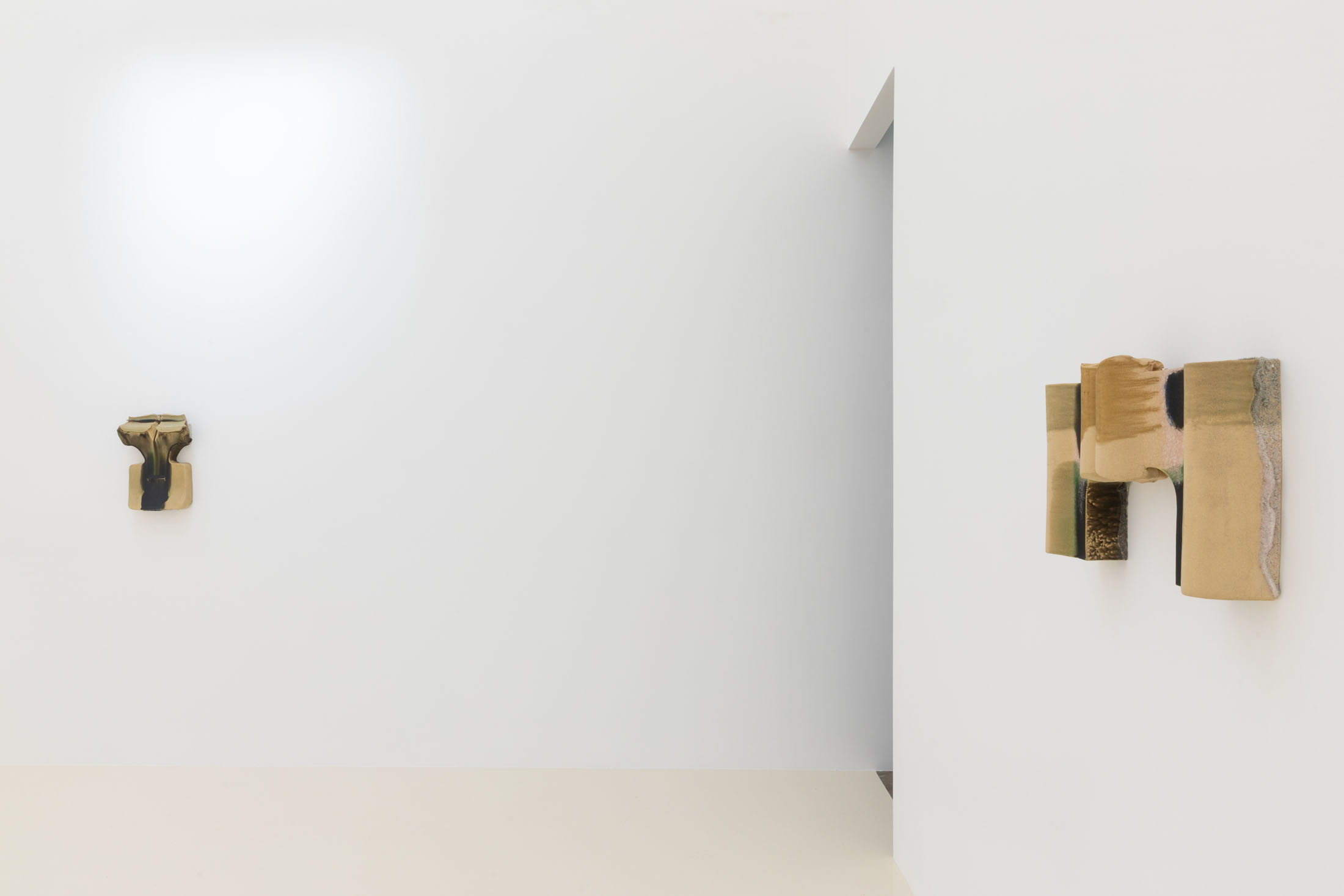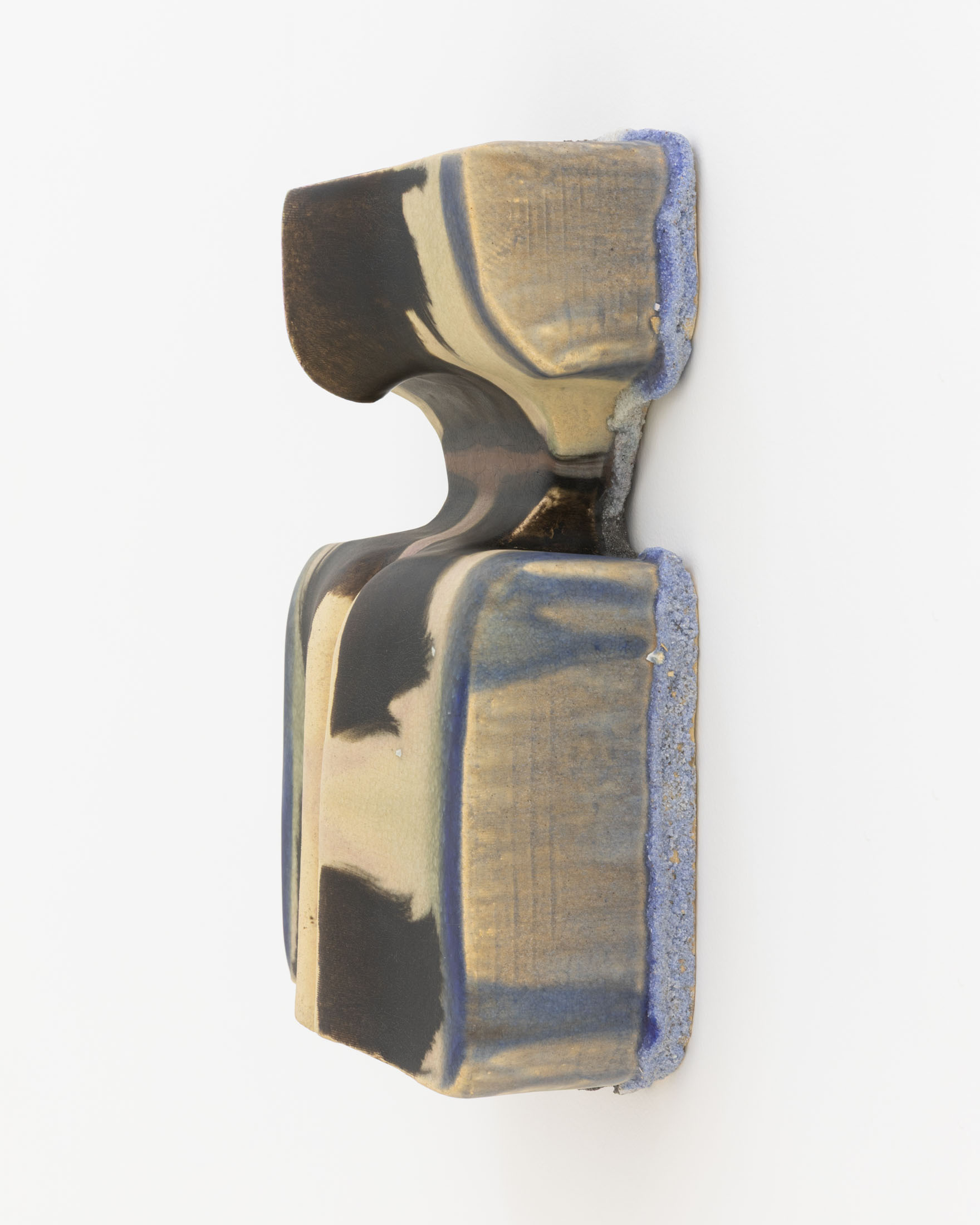Life partners who have been collaborating together for almost a decade, Tyler Cross and Kyle Lypka make ceramic sculptures which are both freestanding and exist on the wall. The stark, if severe simplicity of what they create elegantly yields a multiplicity of allusions and significations. Loamy and alluvial, the work extends the sensuous line of the body over the rugged, coastal landscape of Northern California, as if the grainy complexion of the sculptures was buffeted smooth by the surf and wind. The formal silhouettes of the work, which are known to double or butterfly, teem with lexical, typographical, or heraldic evocations, bringing to mind an alien semiotics whose key has either been lost or has yet to be found.