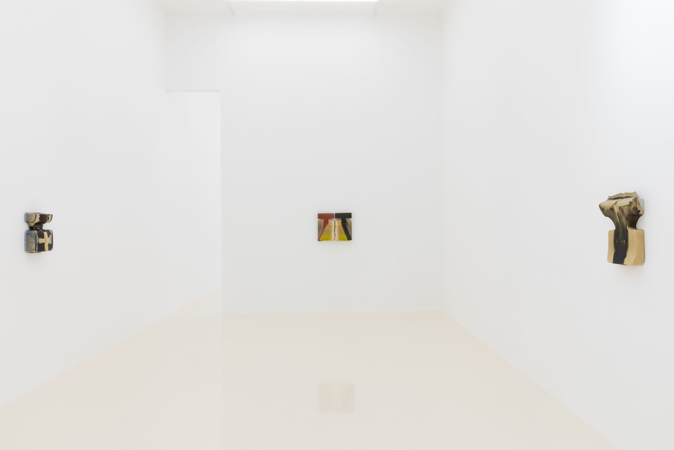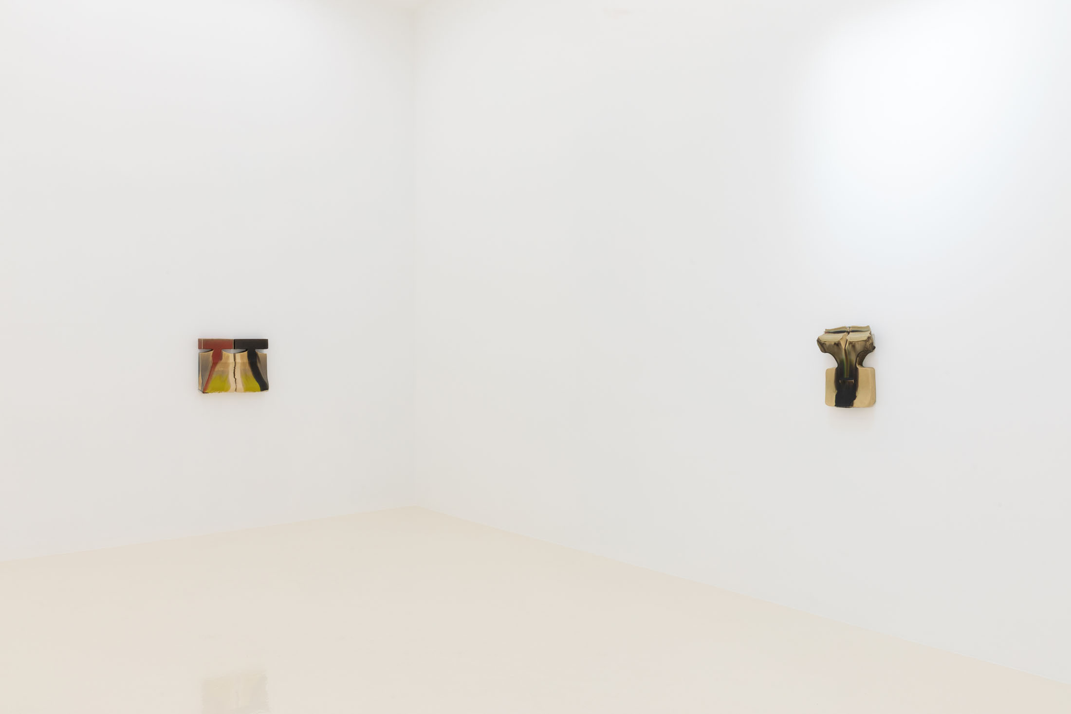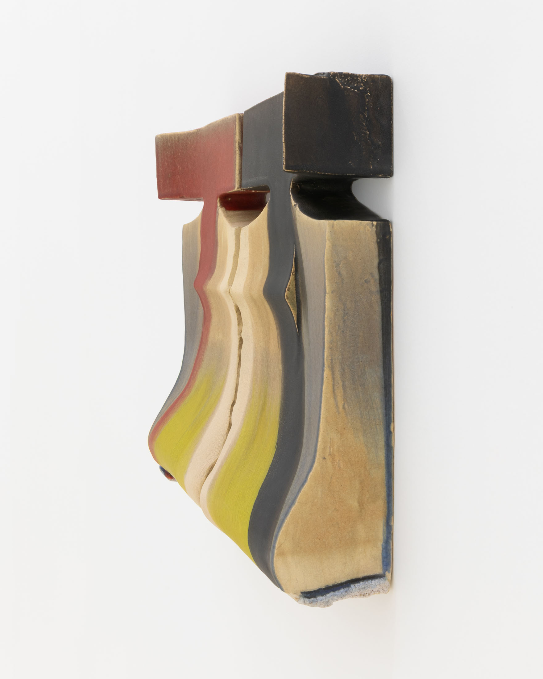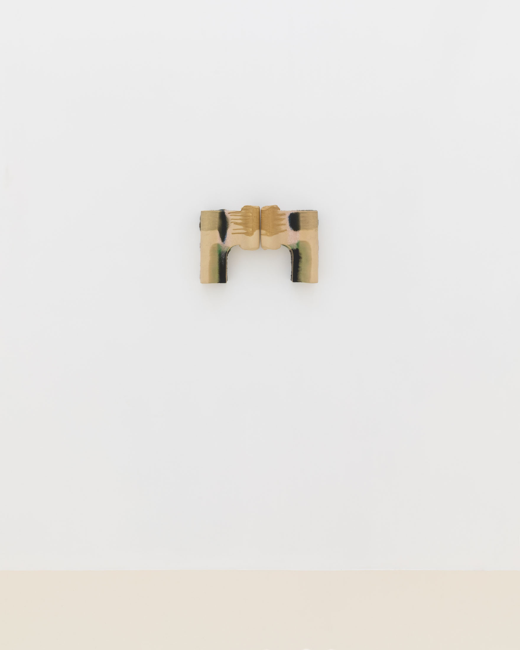 Life partners who have been collaborating together for almost a decade, Tyler Cross and Kyle Lypka make ceramic sculptures which are both freestanding and exist on the wall. The stark, if severe simplicity of what they create elegantly yields a multiplicity of allusions and significations. Loamy and alluvial, the work extends the sensuous line of the body over the rugged, coastal landscape of Northern California, as if the grainy complexion of the sculptures was buffeted smooth by the surf and wind. The formal silhouettes of the work, which are known to double or butterfly, teem with lexical, typographical, or heraldic evocations, bringing to mind an alien semiotics whose key has either been lost or has yet to be found.
