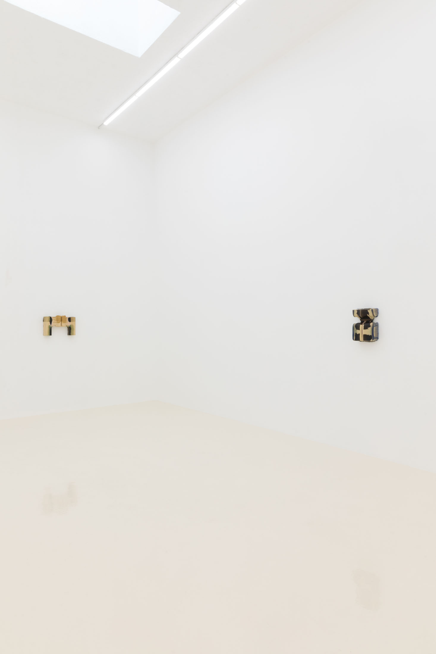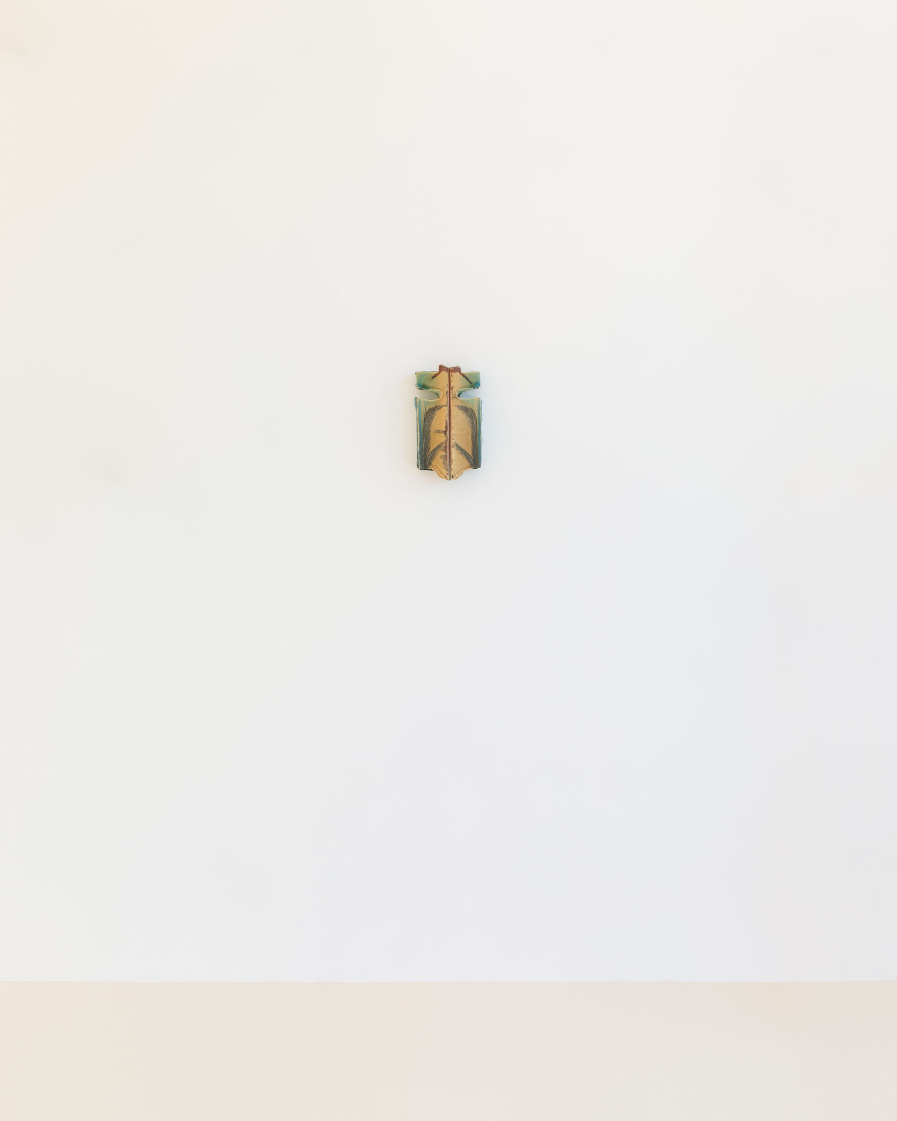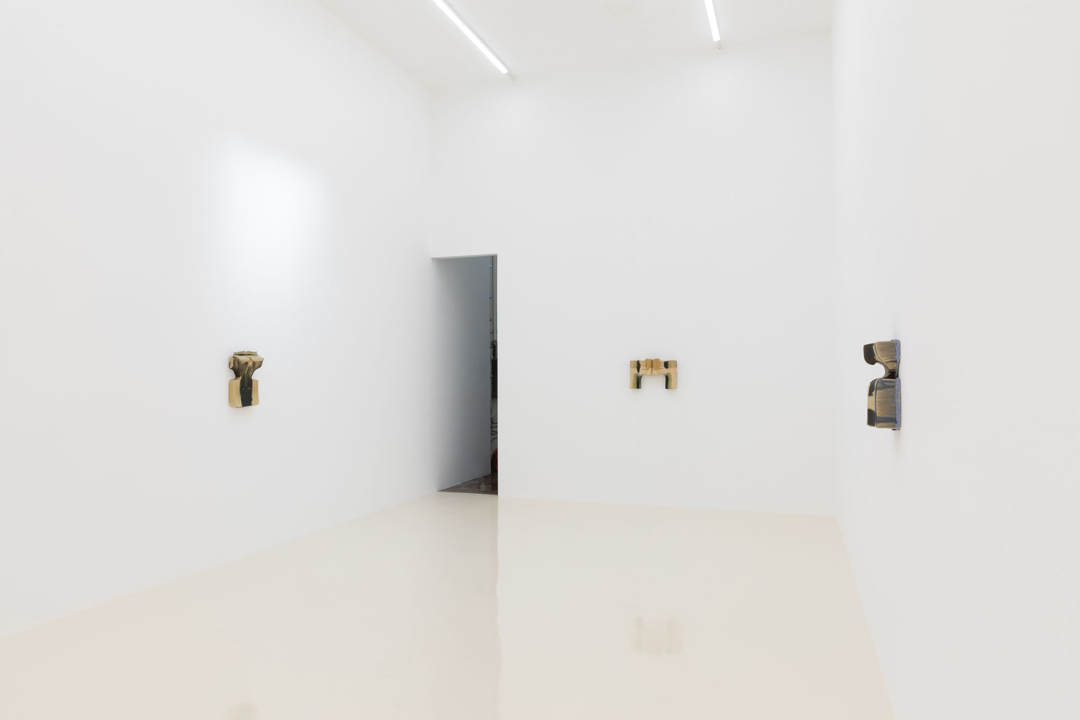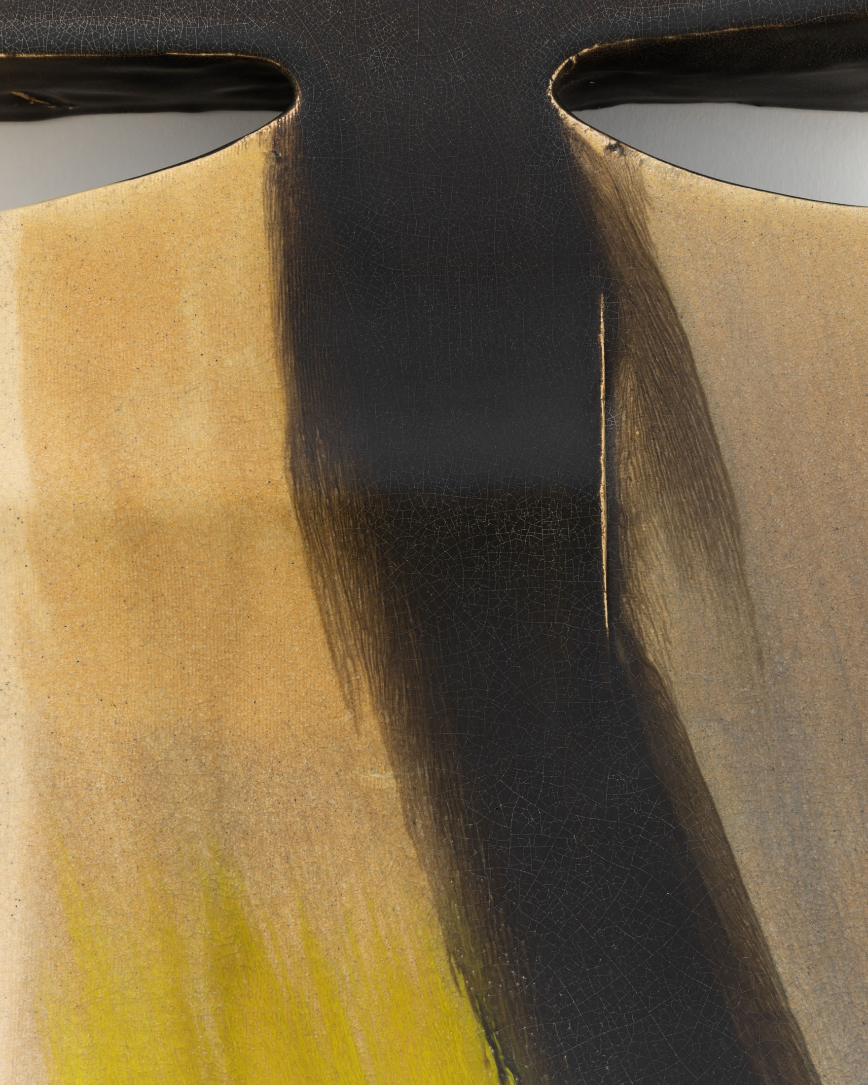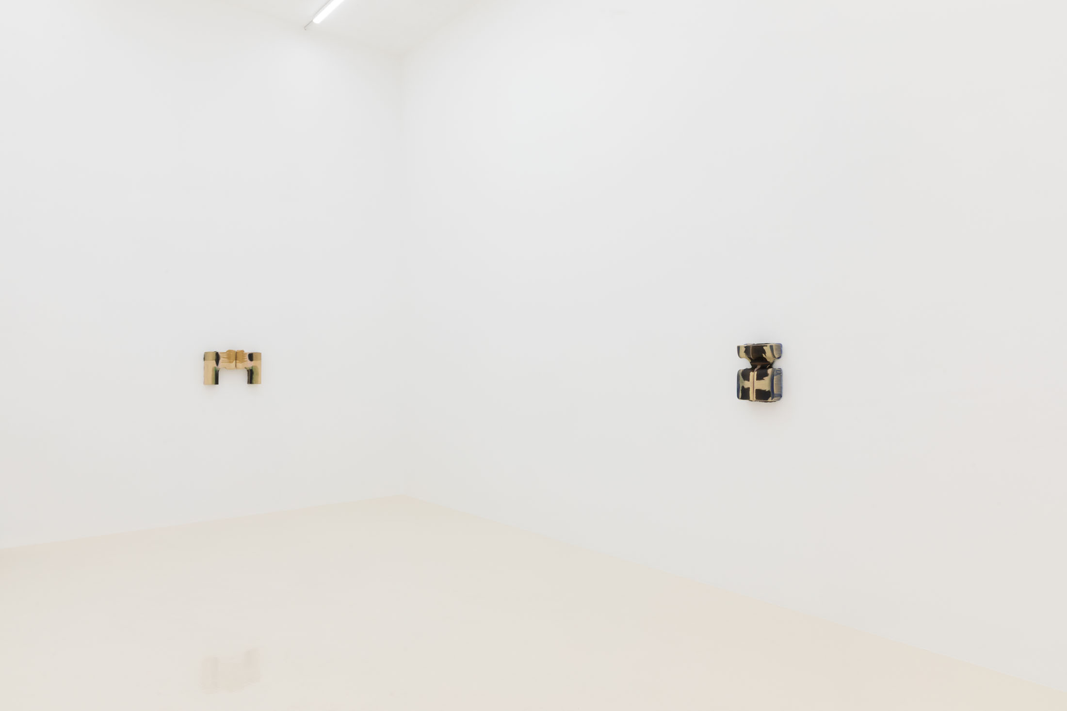 Life partners who have been collaborating together for almost a decade, Tyler Cross and Kyle Lypka make ceramic sculptures which are both freestanding and exist on the wall. The stark, if severe simplicity of what they create elegantly yields a multiplicity of allusions and significations. Loamy and alluvial, the work extends the sensuous line of the body over the rugged, coastal landscape of Northern California, as if the grainy complexion of the sculptures was buffeted smooth by the surf and wind. The formal silhouettes of the work, which are known to double or butterfly, teem with lexical, typographical, or heraldic evocations, bringing to mind an alien semiotics whose key has either been lost or has yet to be found.
