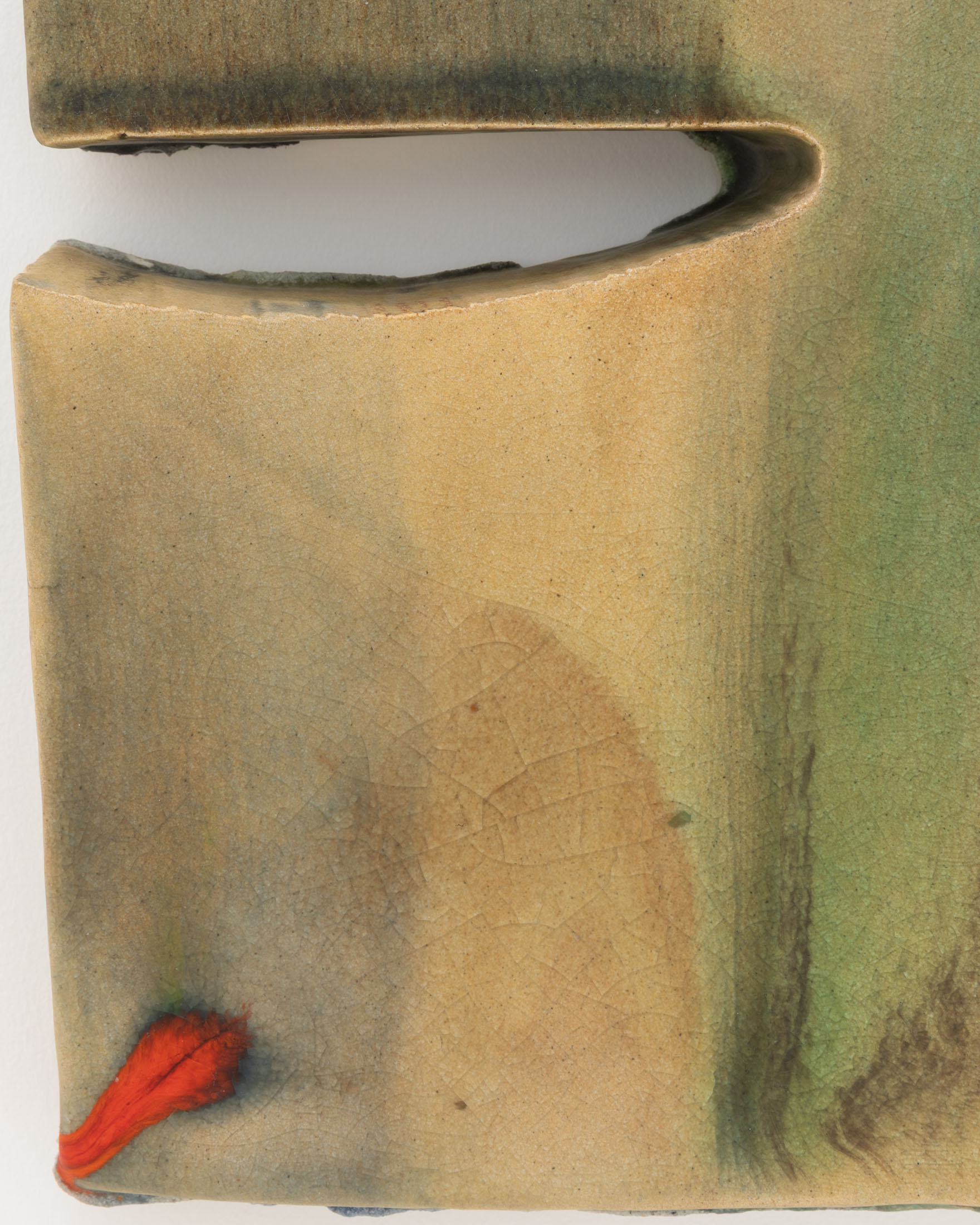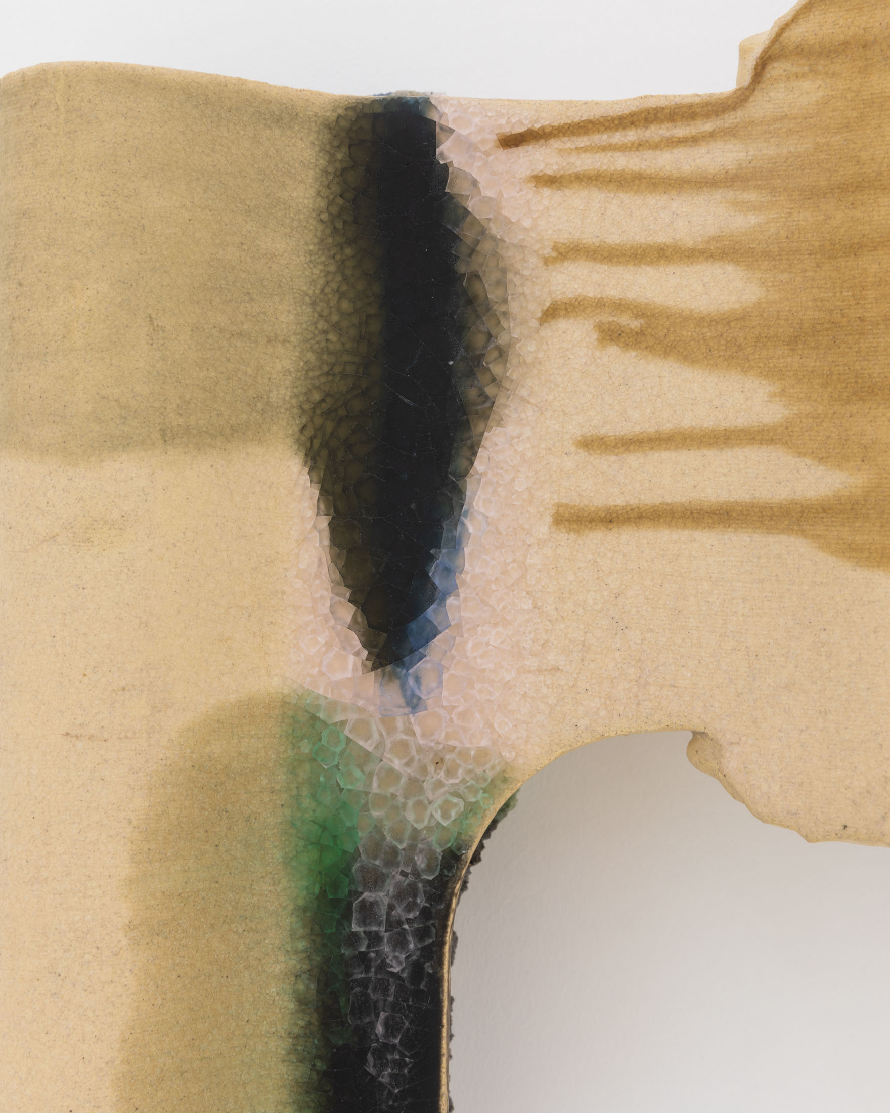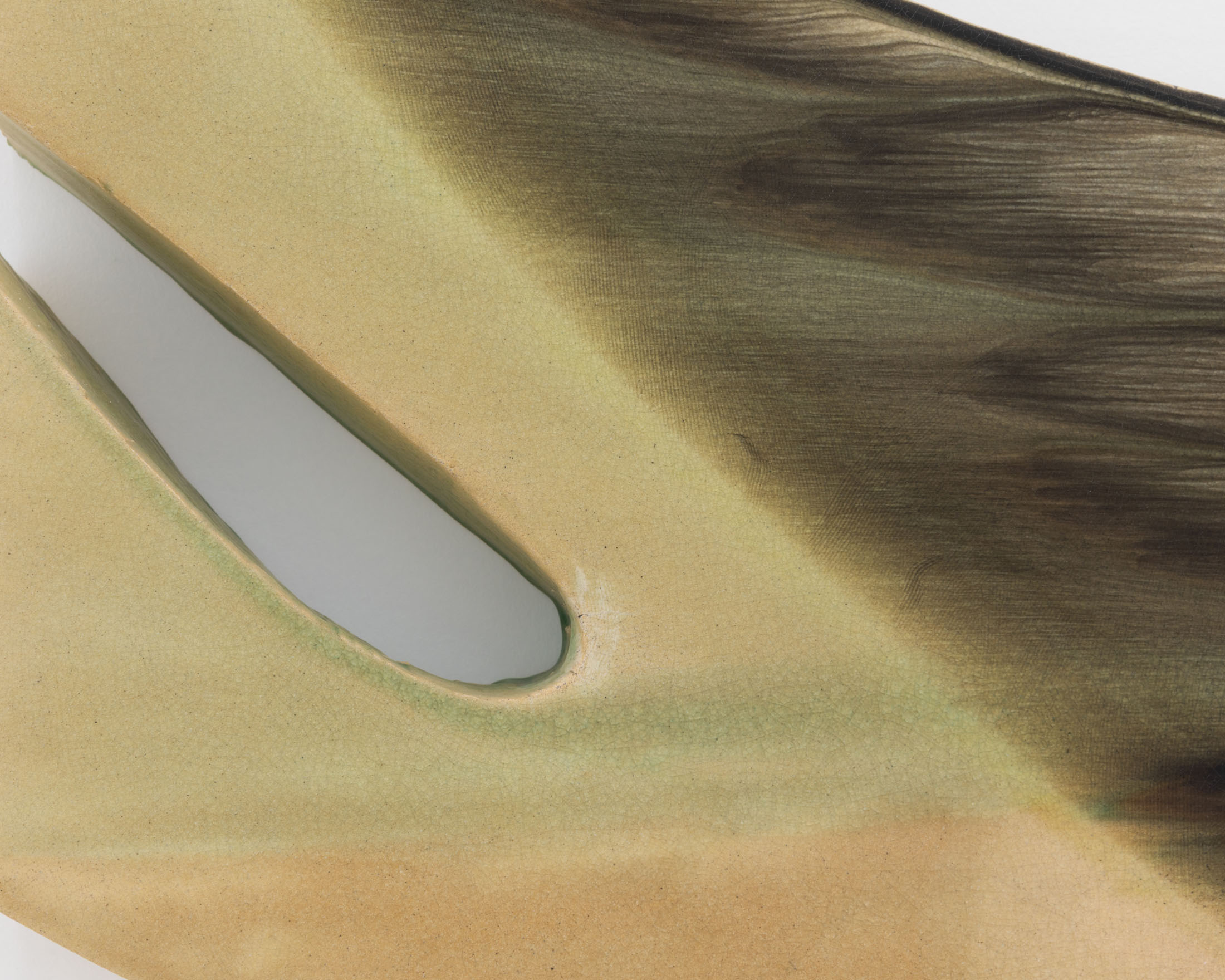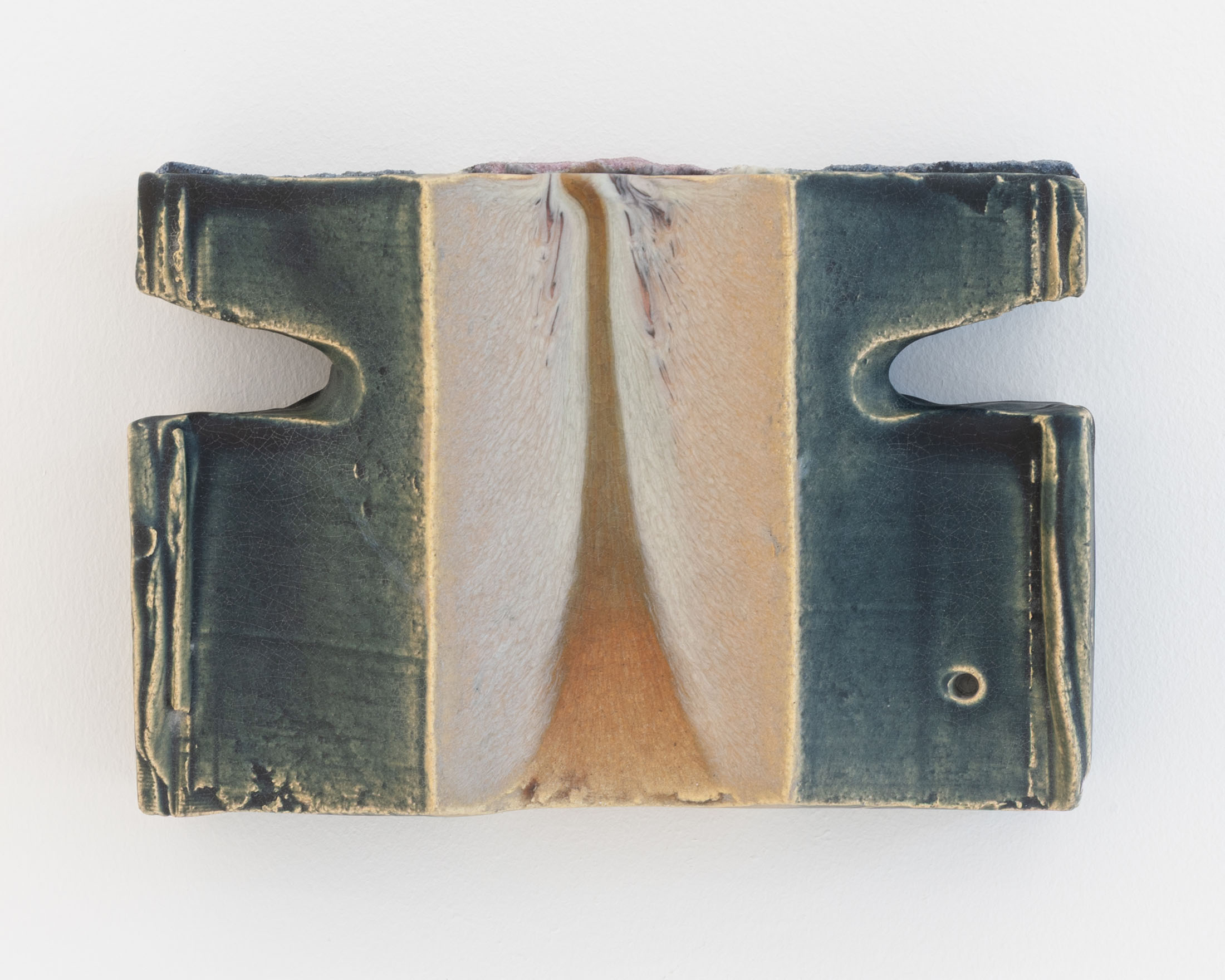 What they make is not foreign to Donald Judd’s notion of the “specific object.” Neither “painting nor sculpture,” but closely related to both, these objects are as pictorially entrancing as they are spatially compelling, to say nothing of the myriad subtleties that dwell on, within, and around them. Yet their so-called specific objecthood is compli-cated by the graphic nature of the fluid, if imperfect curvilinear contours which shape them– that which ultimately speaks to a starting point grounded in drawing. The glazes that both adorn and are indivisible from their surfaces are anything but excessive, but rather seem to have been reduced to their essence. Here color functions not so much as an embellishment but more as a trace or wash. For all its allusiveness, however, there is nothing coy about this work; its intentionality is as lucid as the occasionally cracked and transparent veneer of glass caked on and wedded to its forms.