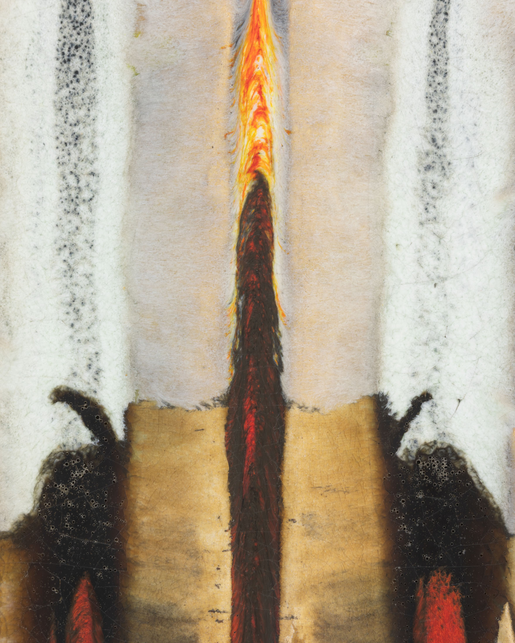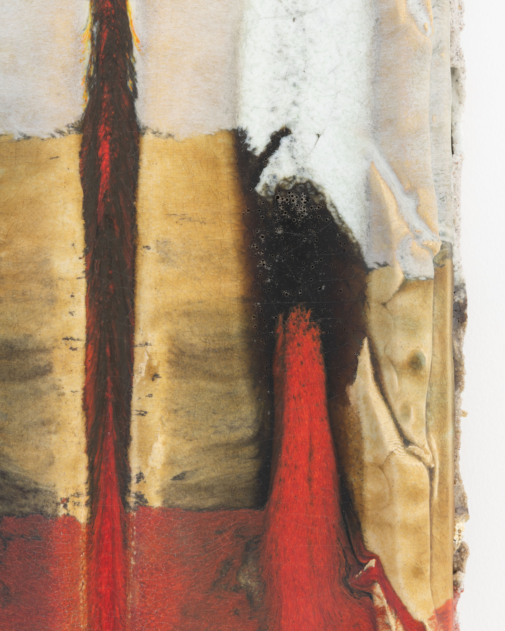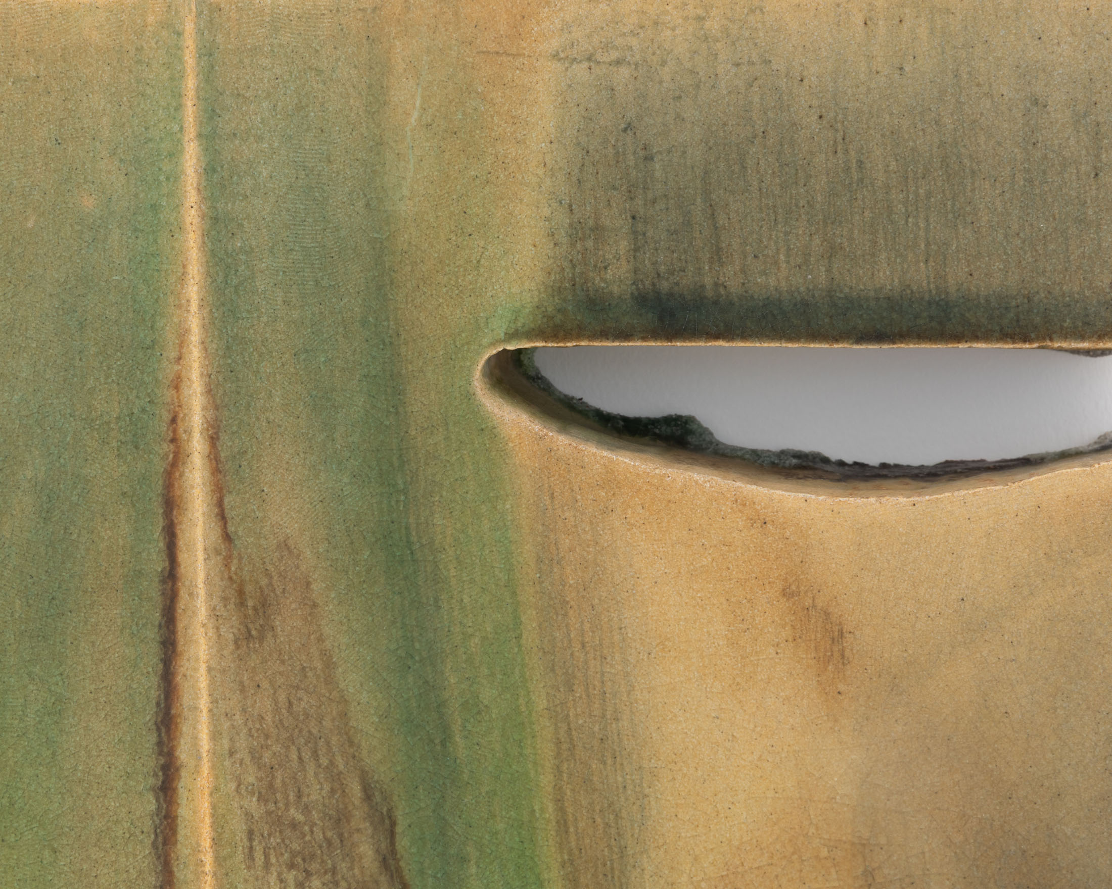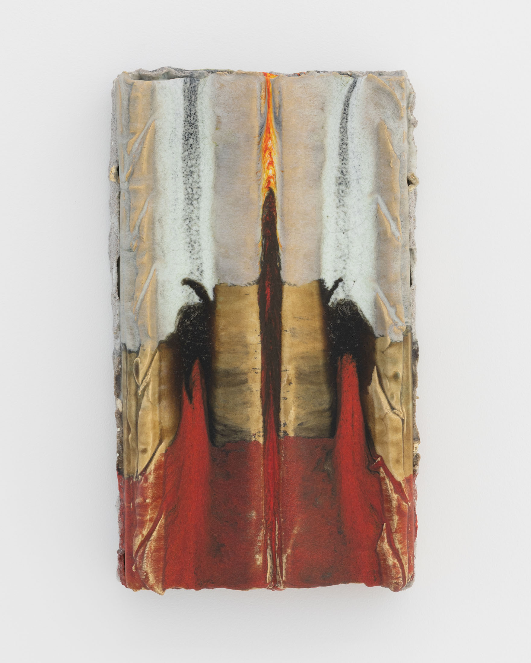 What they make is not foreign to Donald Judd’s notion of the “specific object.” Neither “painting nor sculpture,” but closely related to both, these objects are as pictorially entrancing as they are spatially compelling, to say nothing of the myriad subtleties that dwell on, within, and around them. Yet their so-called specific objecthood is compli-cated by the graphic nature of the fluid, if imperfect curvilinear contours which shape them– that which ultimately speaks to a starting point grounded in drawing. The glazes that both adorn and are indivisible from their surfaces are anything but excessive, but rather seem to have been reduced to their essence. Here color functions not so much as an embellishment but more as a trace or wash. For all its allusiveness, however, there is nothing coy about this work; its intentionality is as lucid as the occasionally cracked and transparent veneer of glass caked on and wedded to its forms.