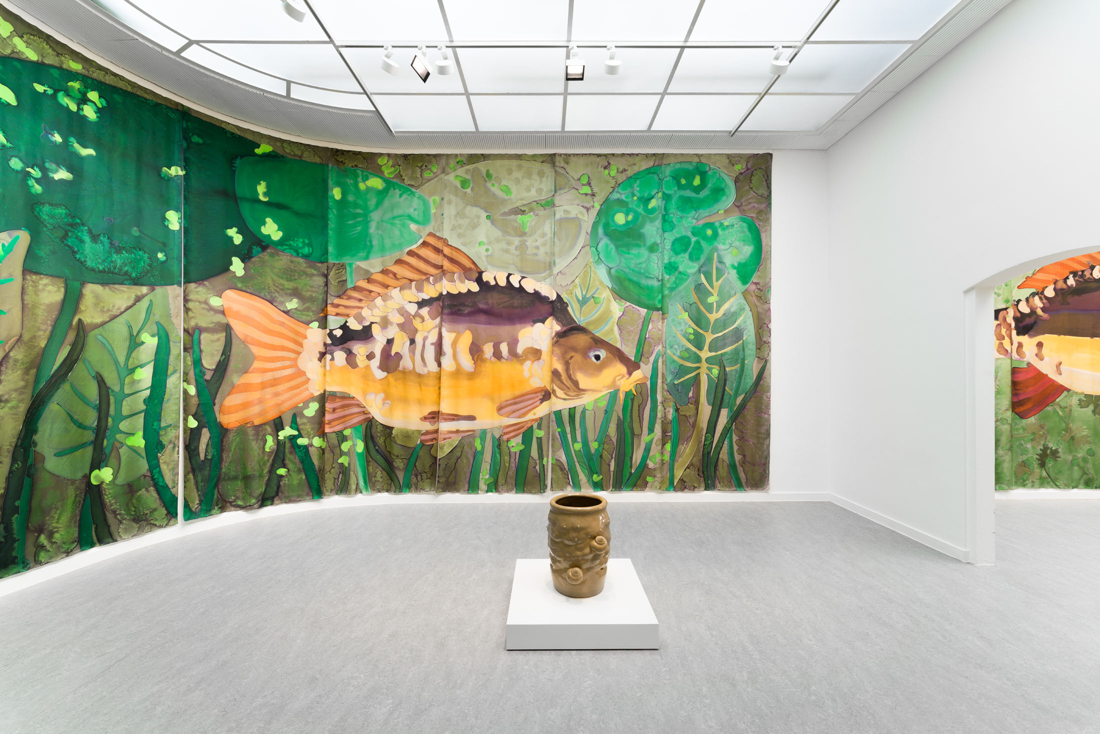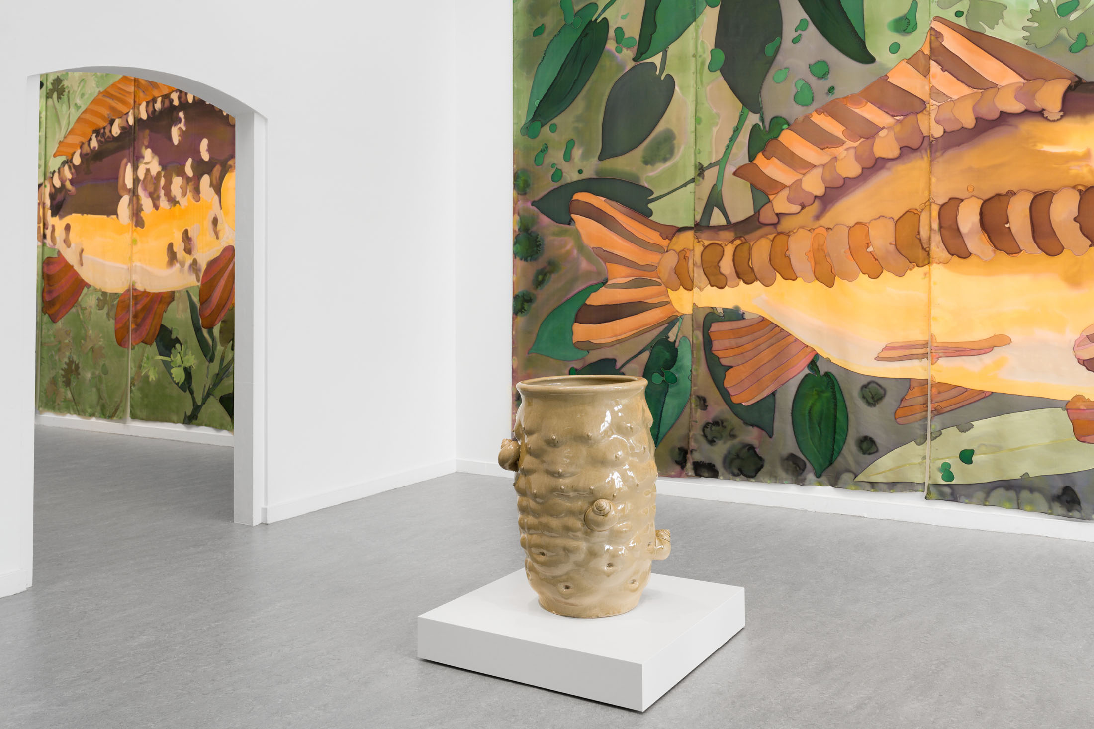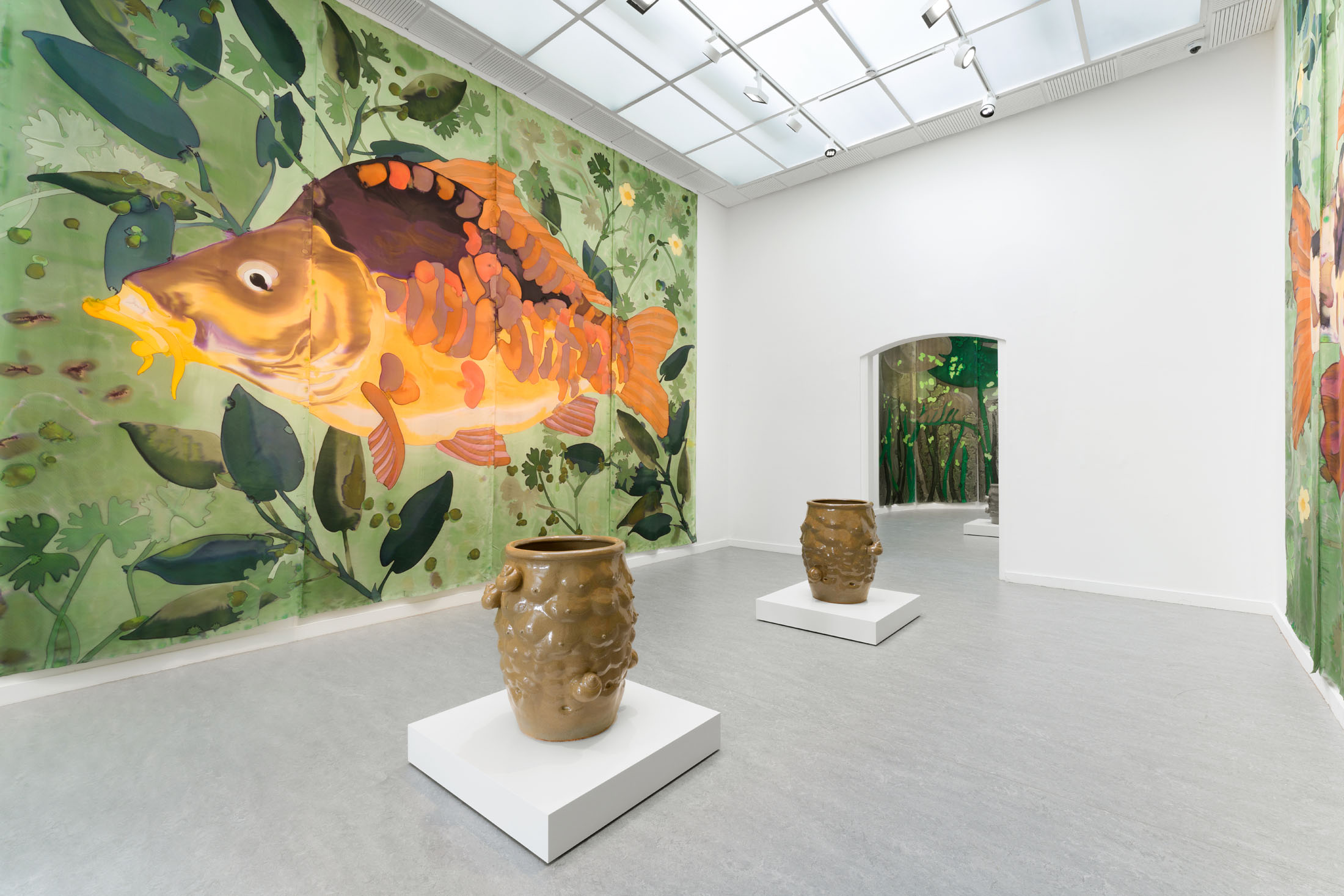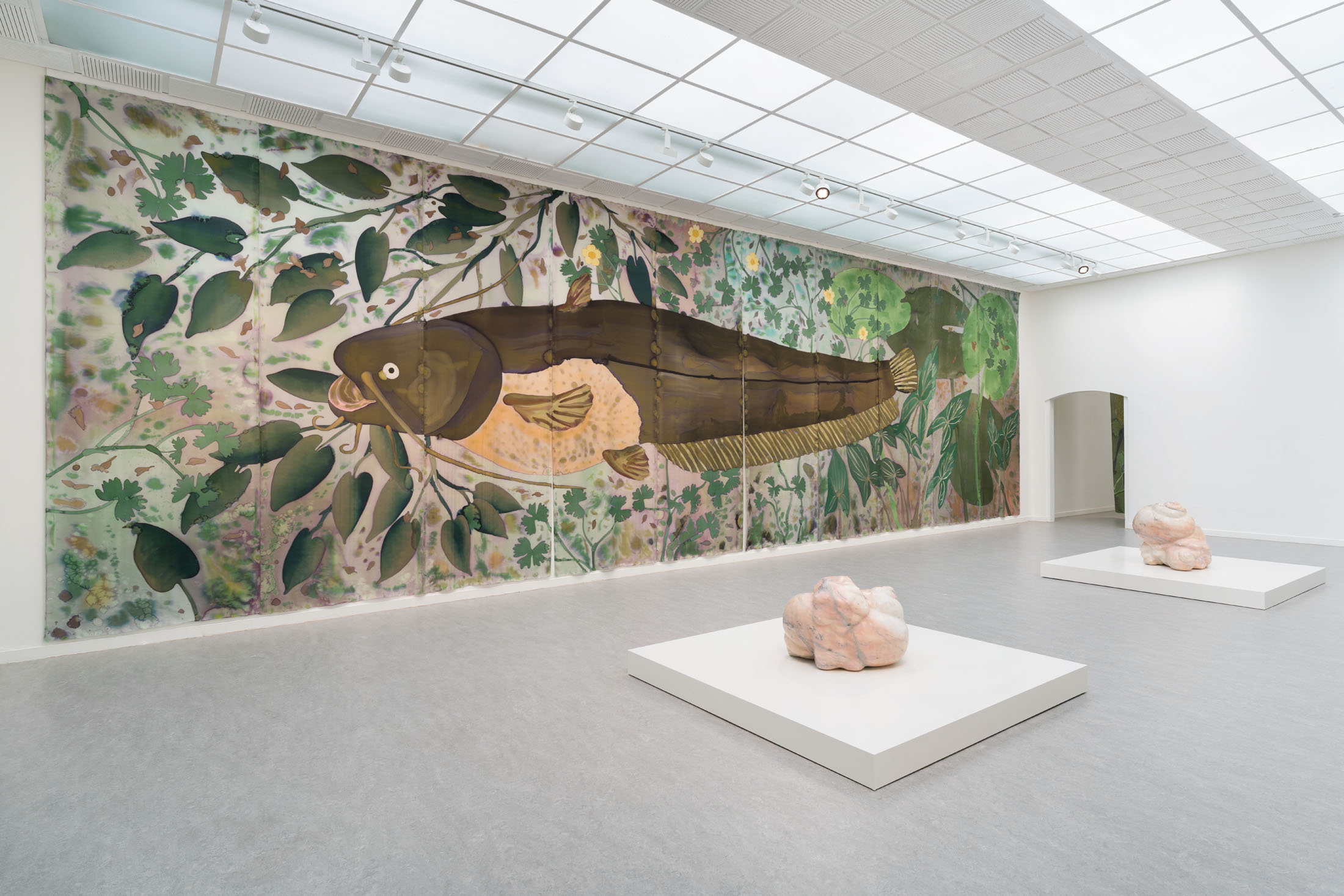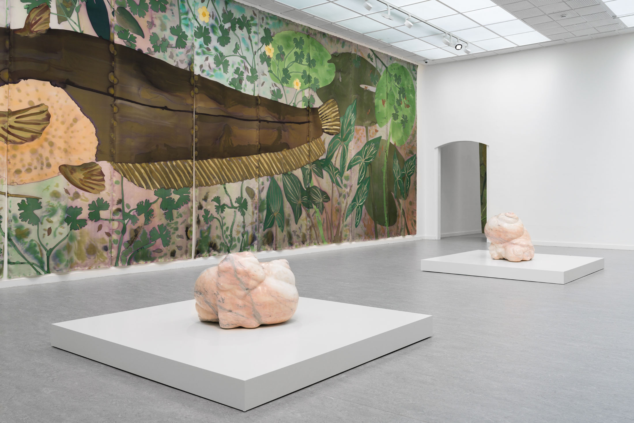 For their upcoming solo exhibition at Z33, Dewar and Gicquel are embarking on the production of a new monumental silk painting, which will stream through the five galleries of the historic Vleugel 58. For this epic painting, the duo have chosen to depict a river scene with freshwater fish. As companions to this immersive aquatic scene, Dewar and Gicquel will be presenting a new series of sculptures made of stoneware ceramics and pink marble.