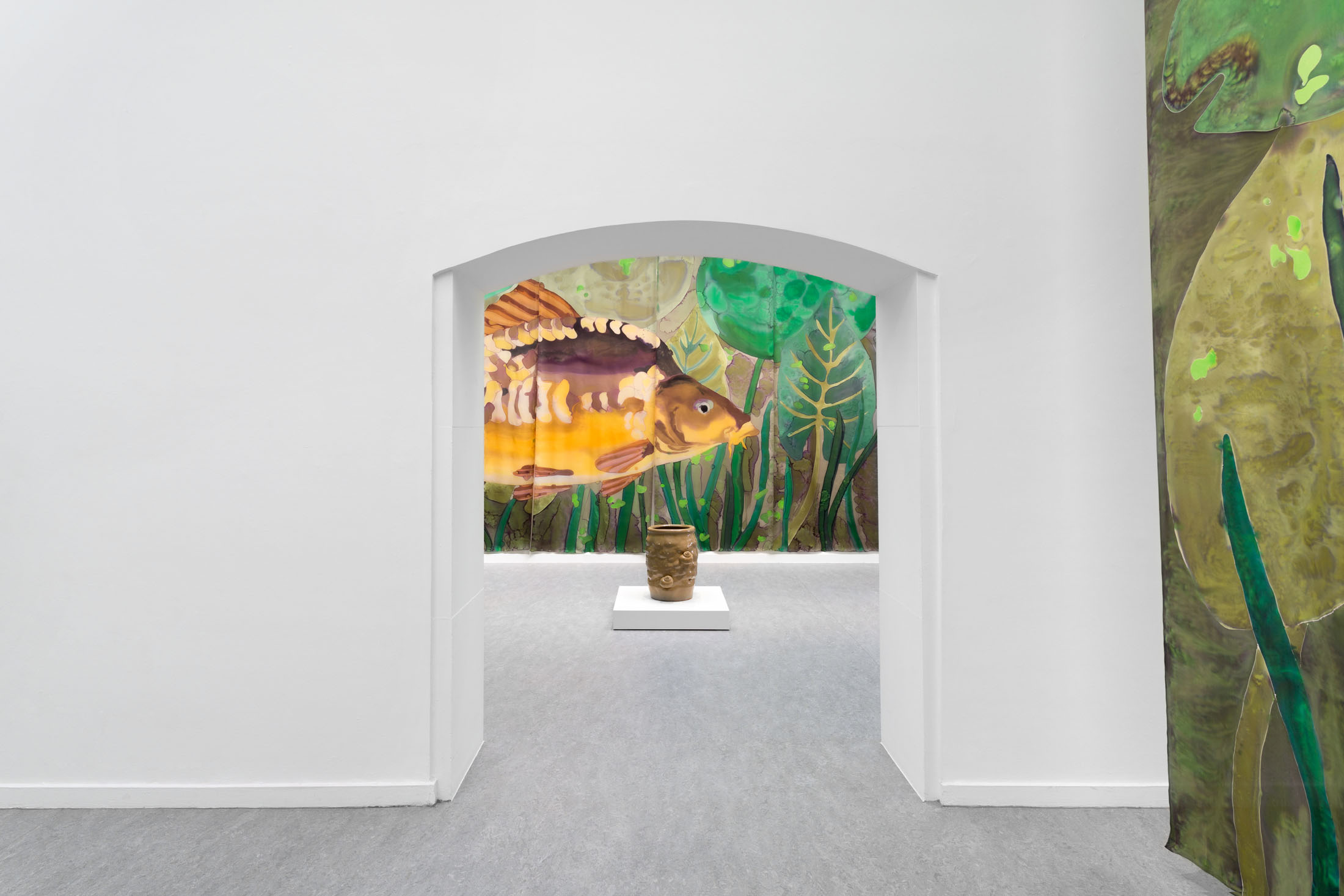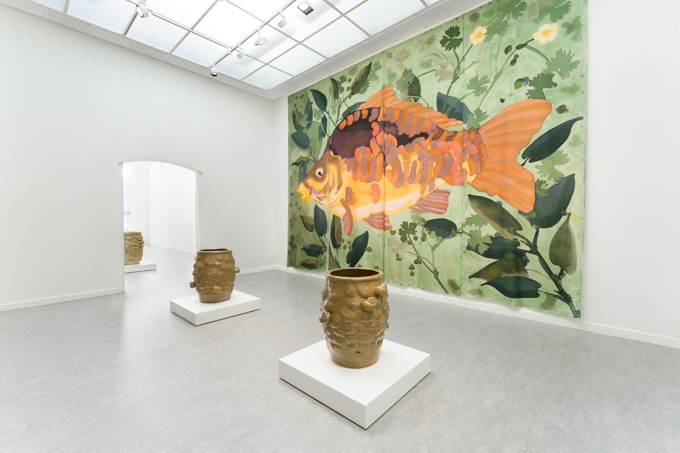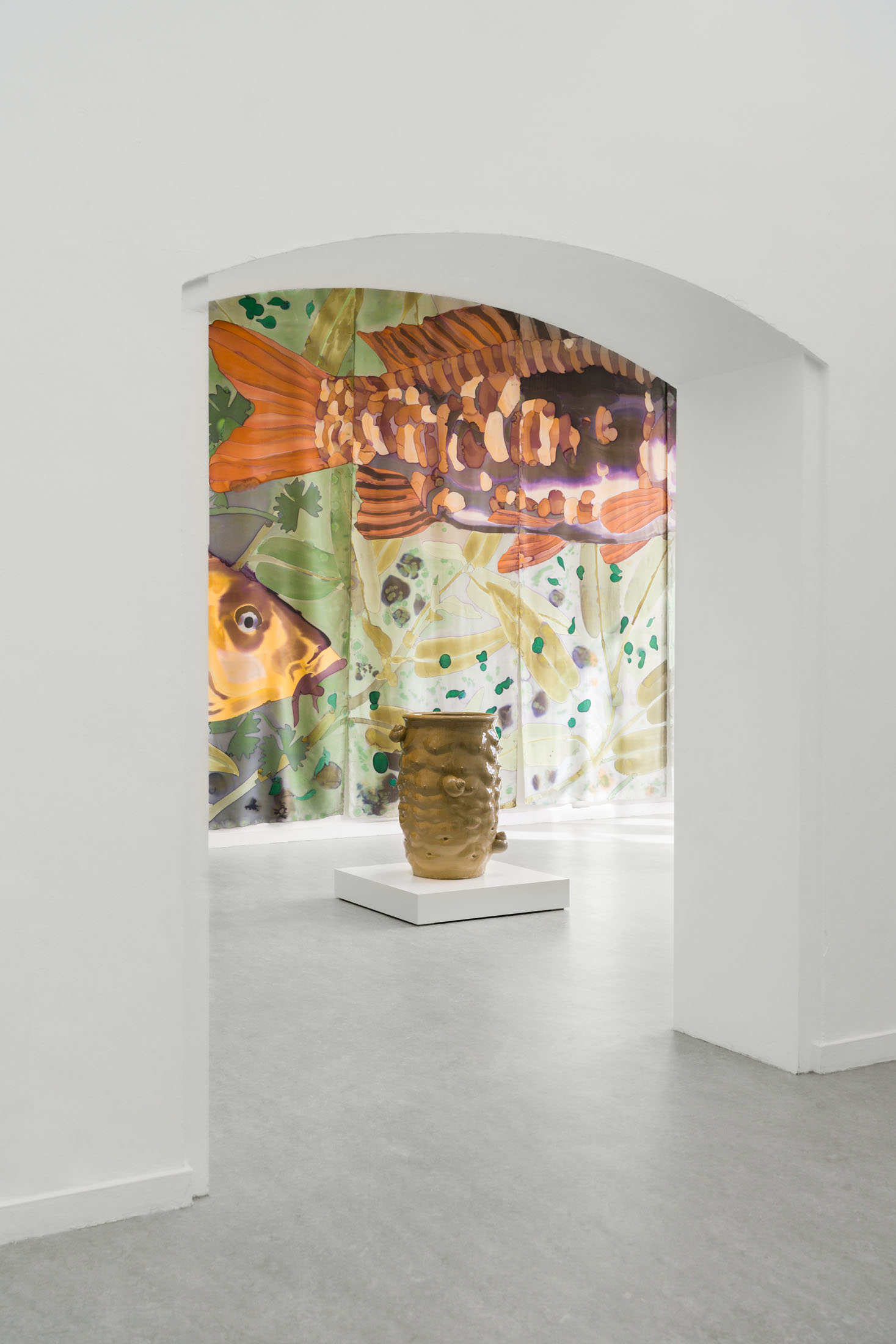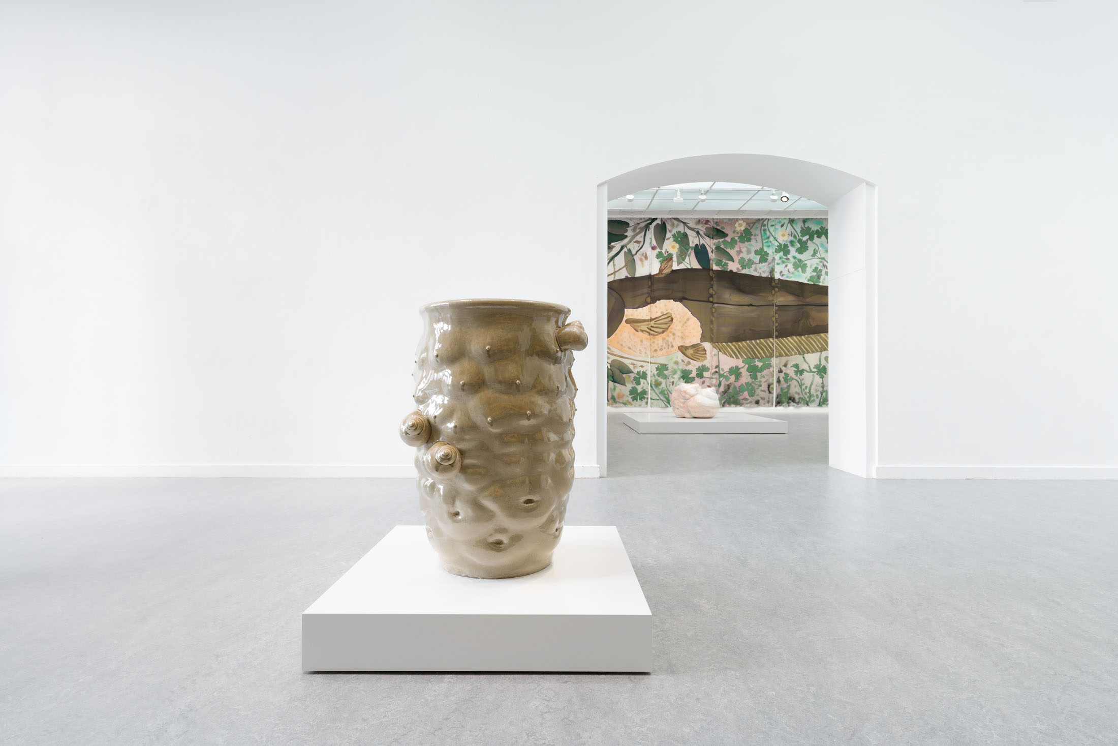 For their upcoming solo exhibition at Z33, Dewar and Gicquel are embarking on the production of a new monumental silk painting, which will stream through the five galleries of the historic Vleugel 58. For this epic painting, the duo have chosen to depict a river scene with freshwater fish. As companions to this immersive aquatic scene, Dewar and Gicquel will be presenting a new series of sculptures made of stoneware ceramics and pink marble.