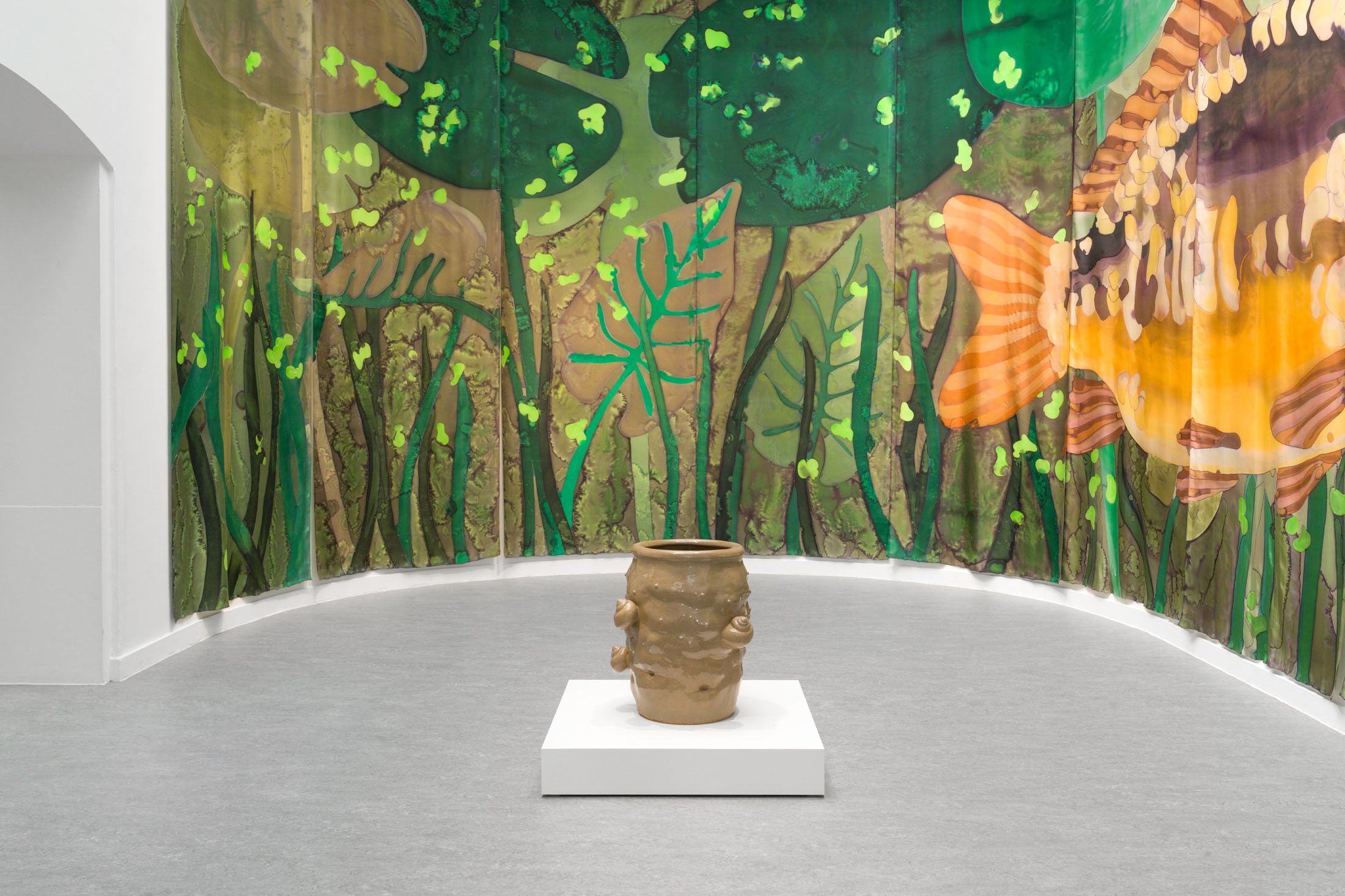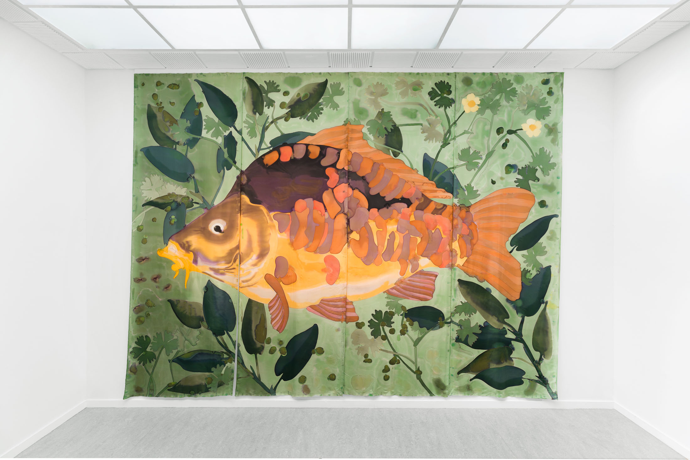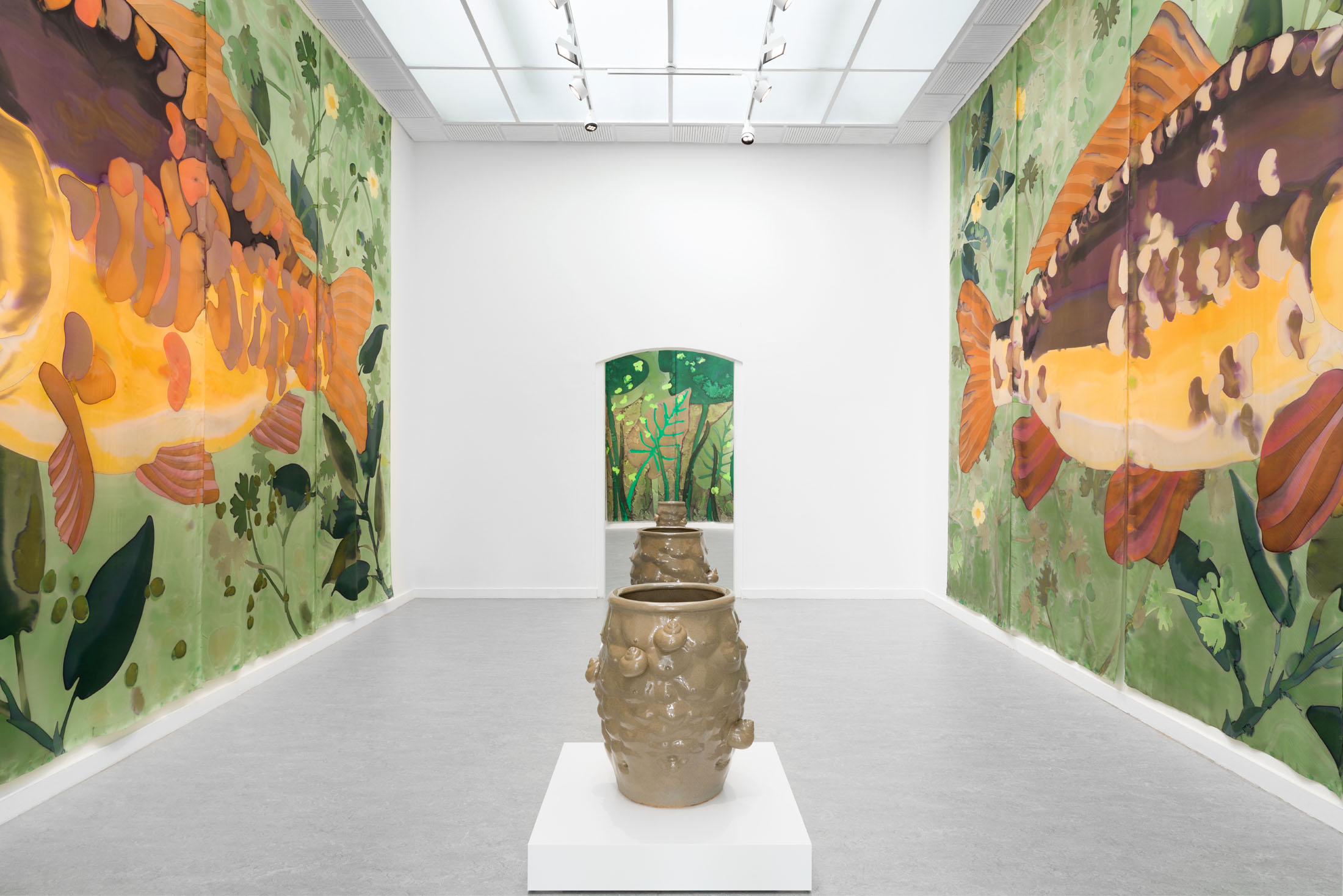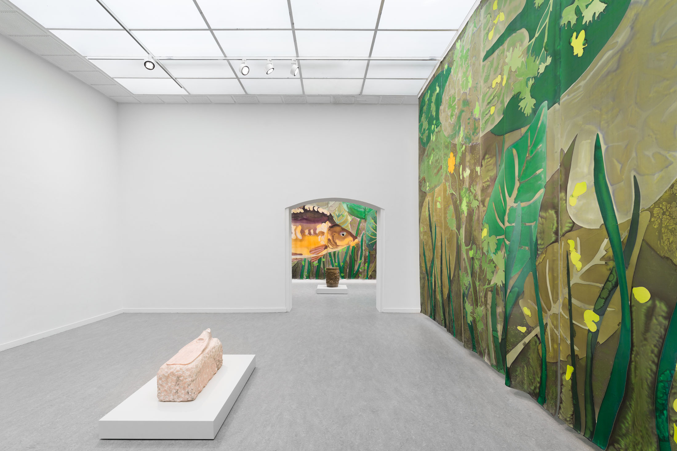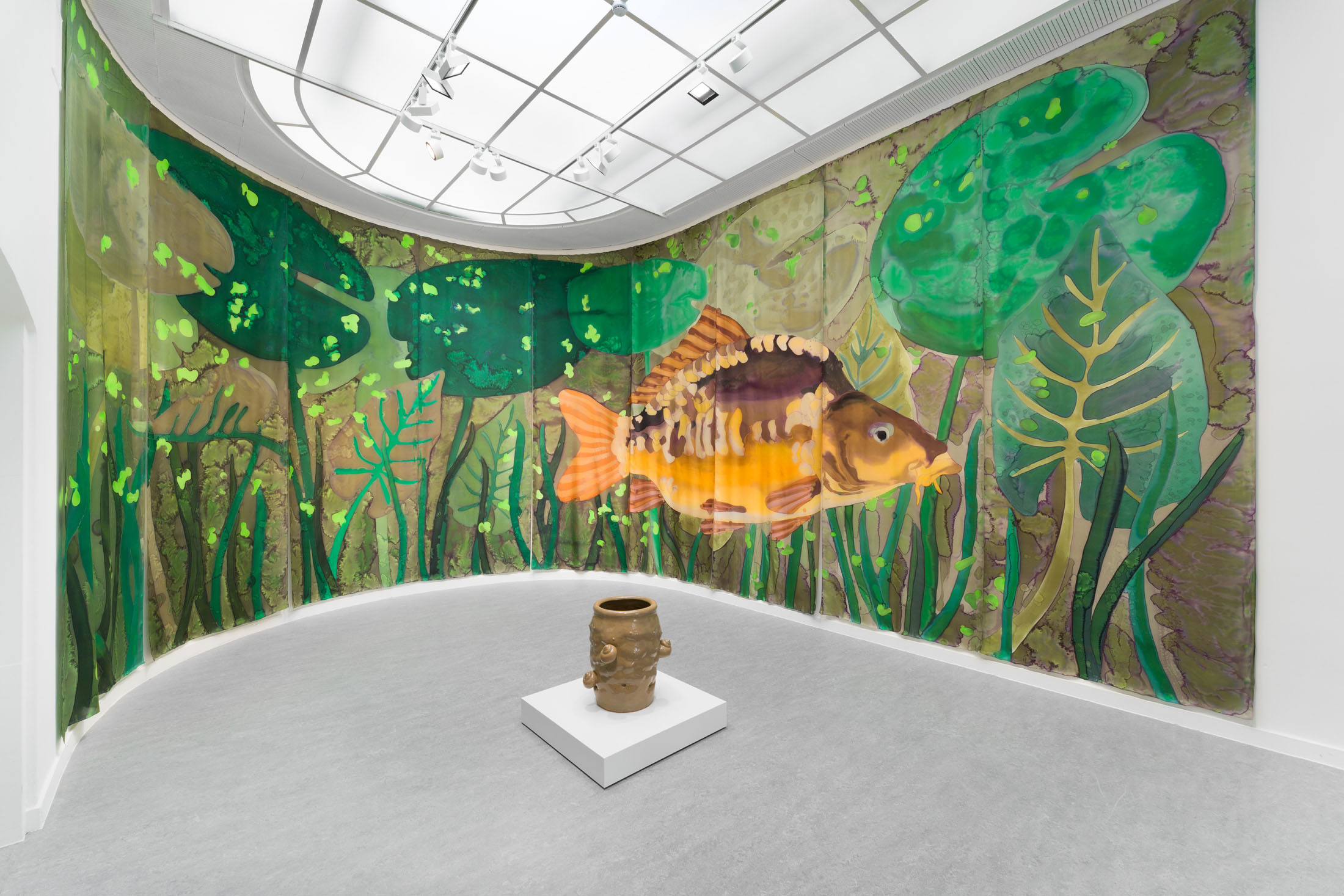 For their upcoming solo exhibition at Z33, Dewar and Gicquel are embarking on the production of a new monumental silk painting, which will stream through the five galleries of the historic Vleugel 58. For this epic painting, the duo have chosen to depict a river scene with freshwater fish. As companions to this immersive aquatic scene, Dewar and Gicquel will be presenting a new series of sculptures made of stoneware ceramics and pink marble.