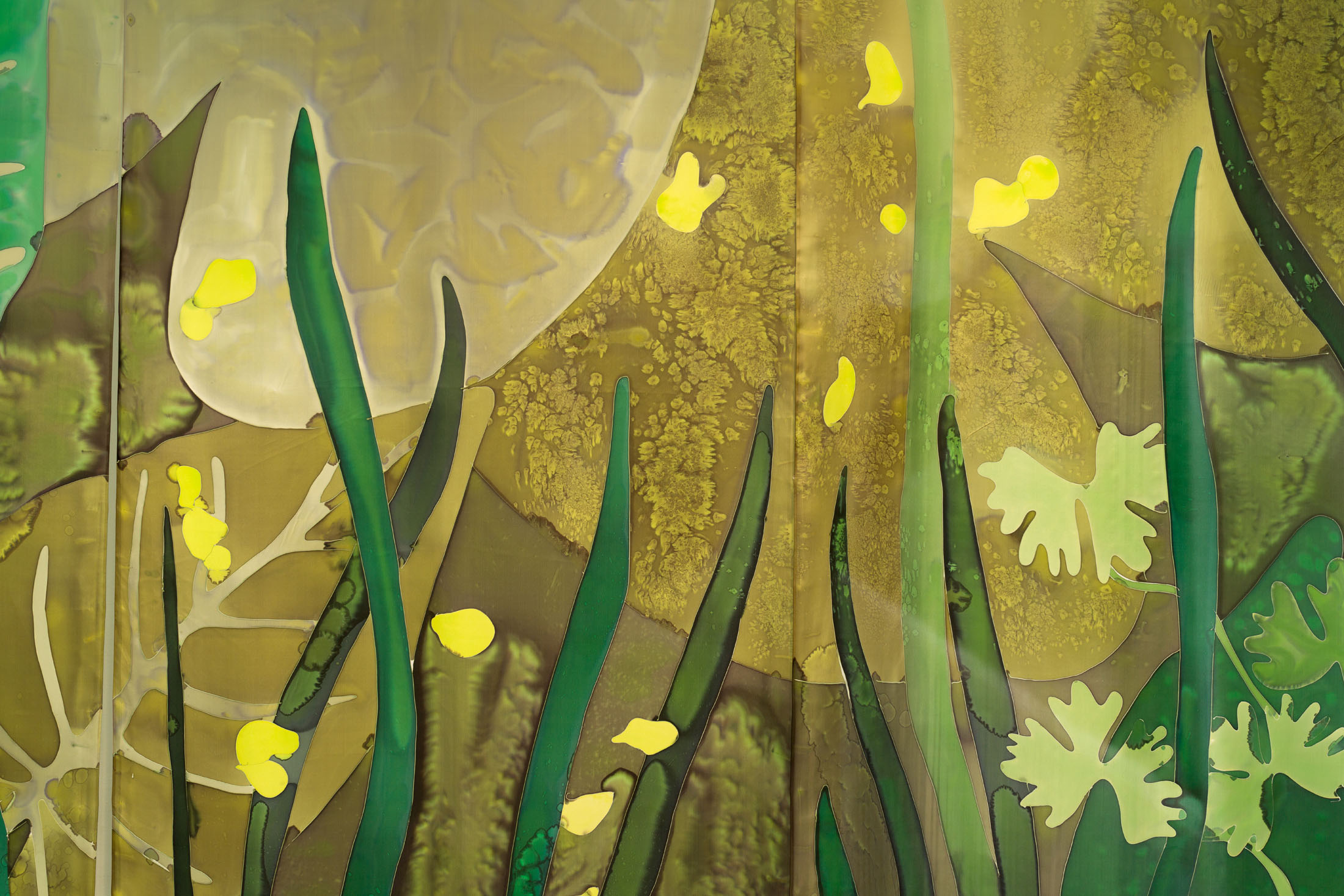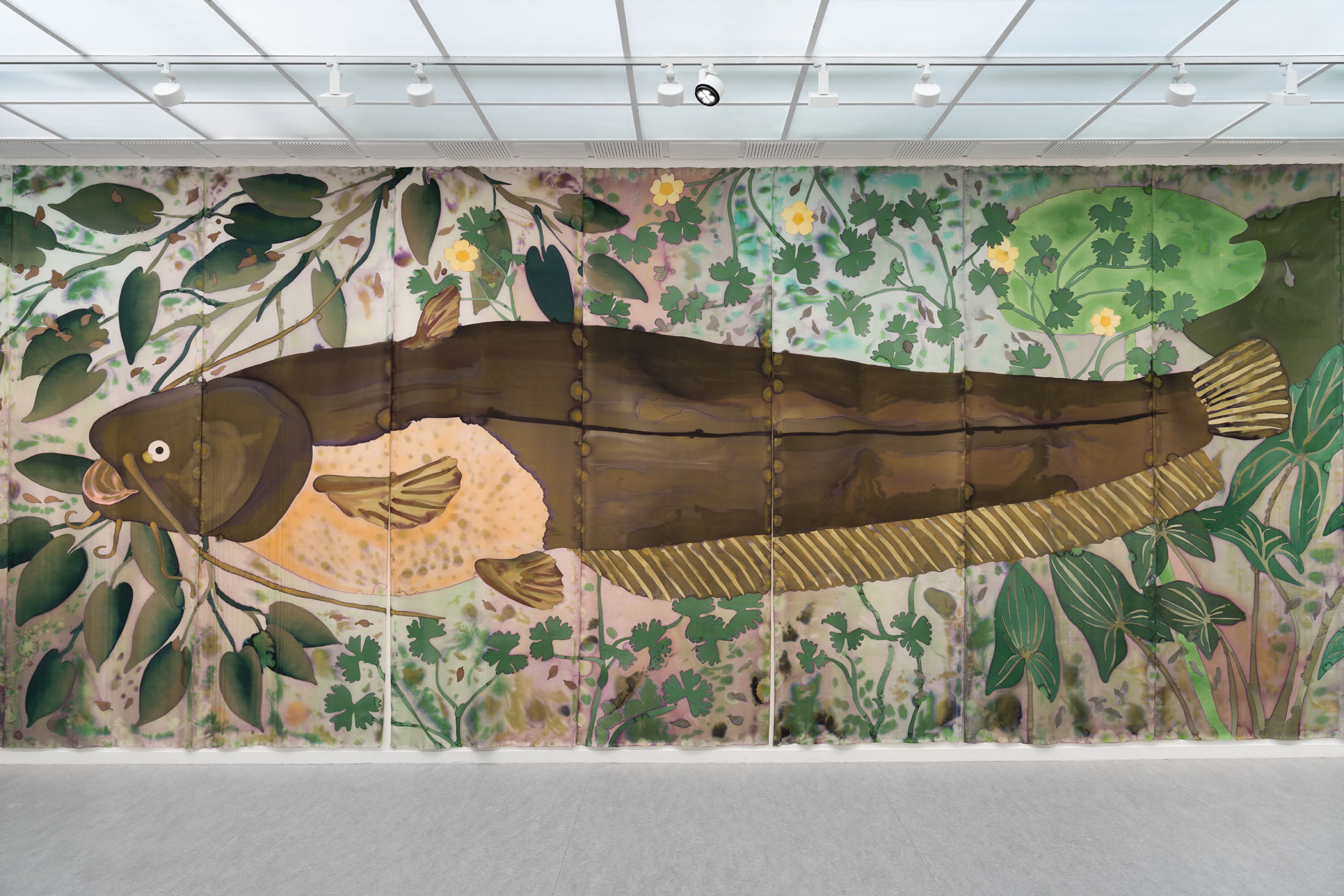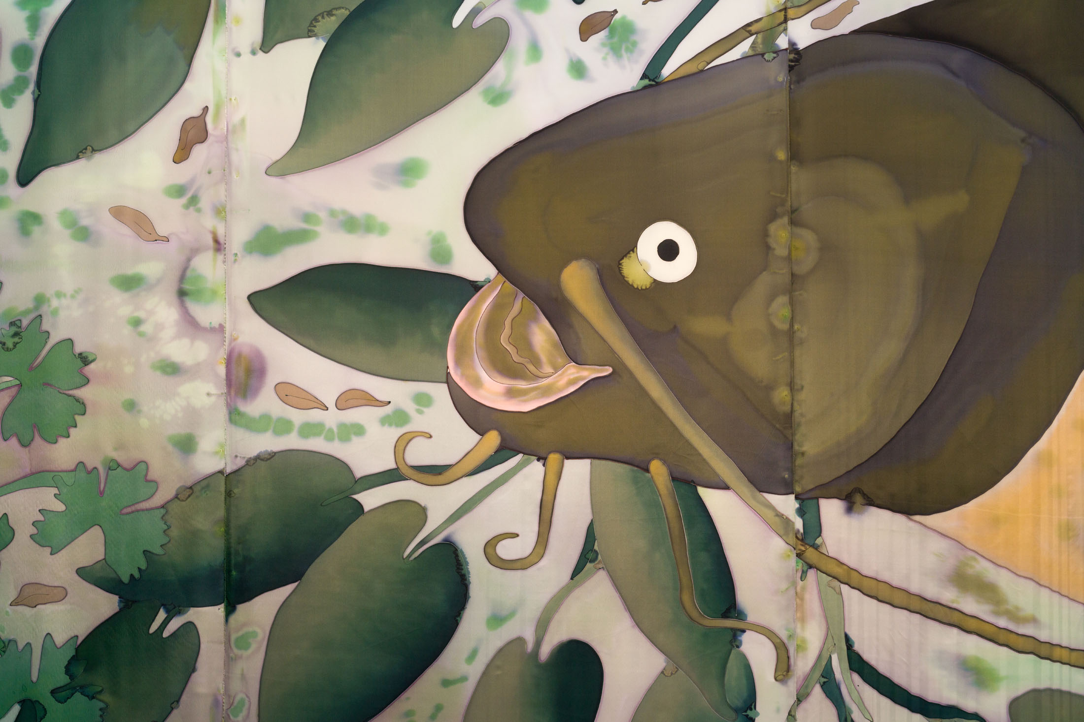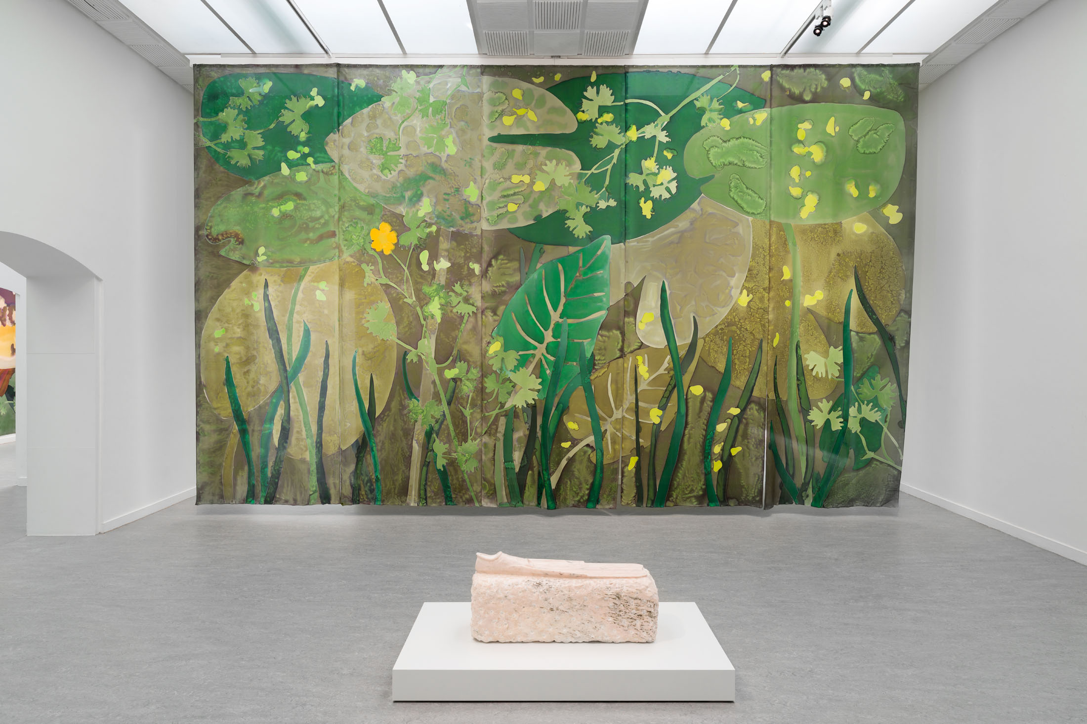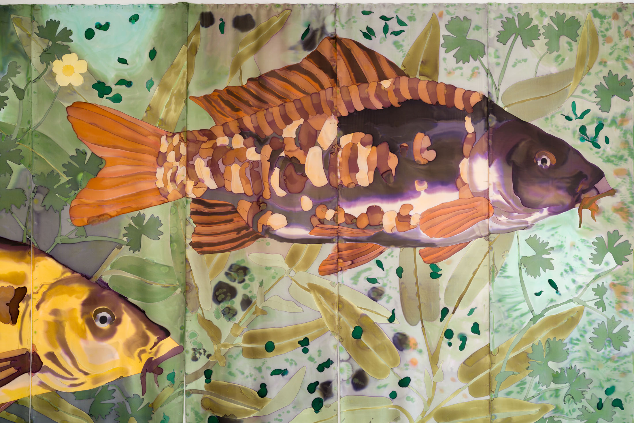 For their upcoming solo exhibition at Z33, Dewar and Gicquel are embarking on the production of a new monumental silk painting, which will stream through the five galleries of the historic Vleugel 58. For this epic painting, the duo have chosen to depict a river scene with freshwater fish. As companions to this immersive aquatic scene, Dewar and Gicquel will be presenting a new series of sculptures made of stoneware ceramics and pink marble.