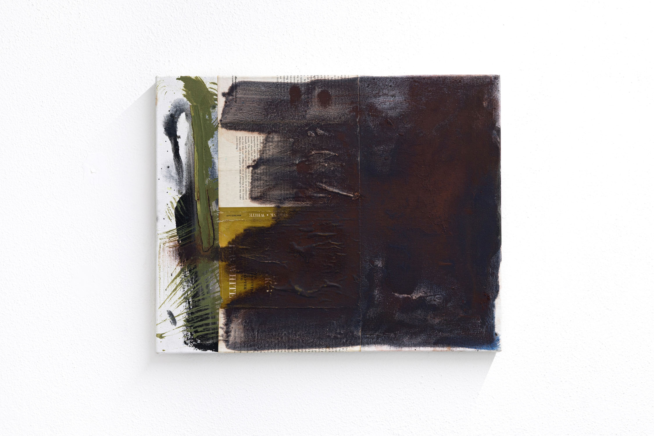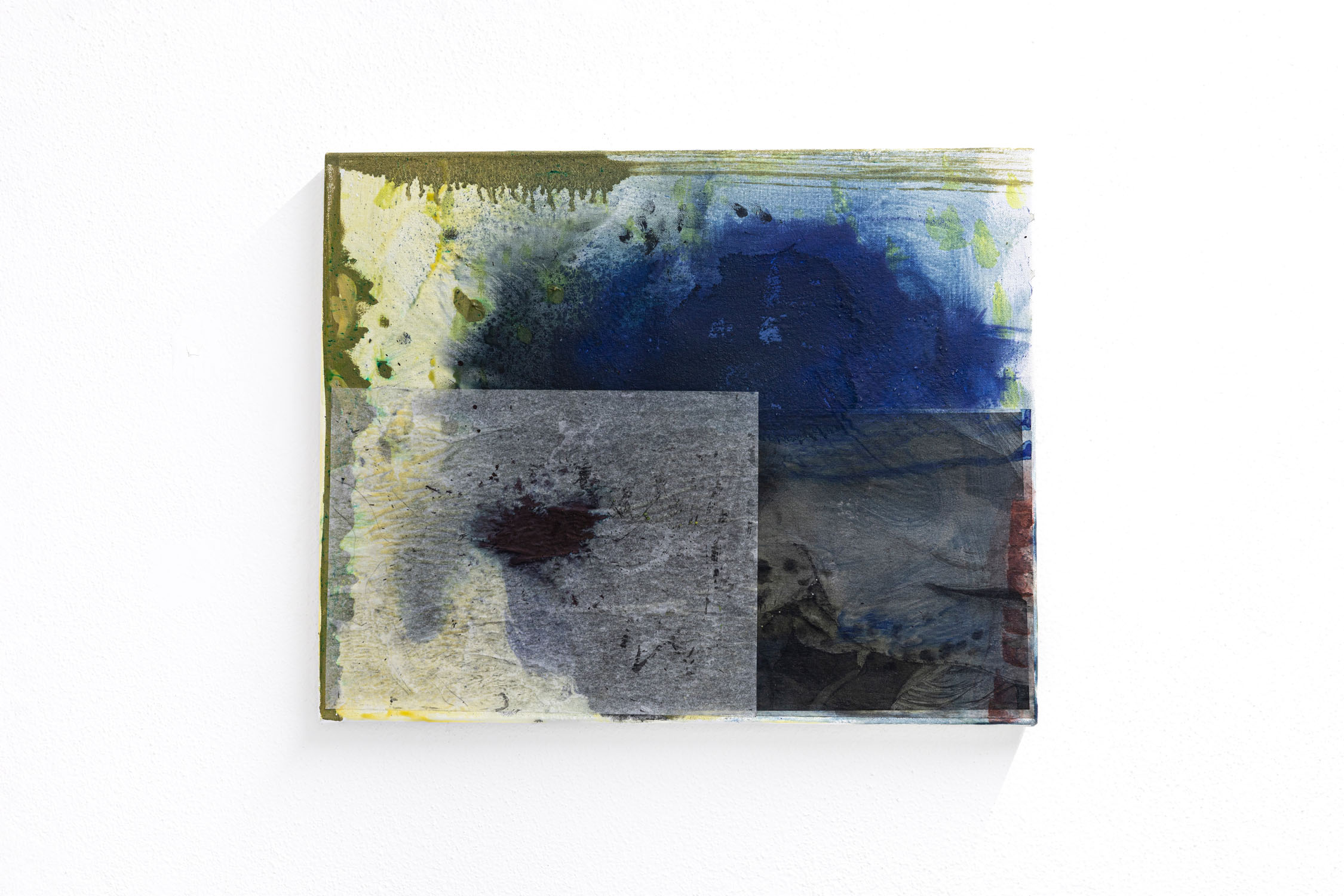 Florentine Paper. “Leo and Ludo want it to be a central piece in the show.” Found right outside of the gallery. Dan opened the drawer, cut the paper and brought it to the studio in Pontevico, near Cremona. Little piece of hardware is the clue. Three axes in the painting expand into a component of a larger piece of furniture. A very classic surface to work on. Repetition vs. freedom of the painting, dripping, a rag, moving paint around with paper, no fingers this time. That’s a bit of a Beat (thanks Allen!) green and blue organic ambiance. Outdoor and indoor. The part and the whole. The world outside and ongoing relationships inside. Home. Partners. Families. The wheel was originally there. The paper was already glued to the panel. Suggesting, instead of affirming. “Painting and the found surface are collaborating, not competing.” Could you help me with that?