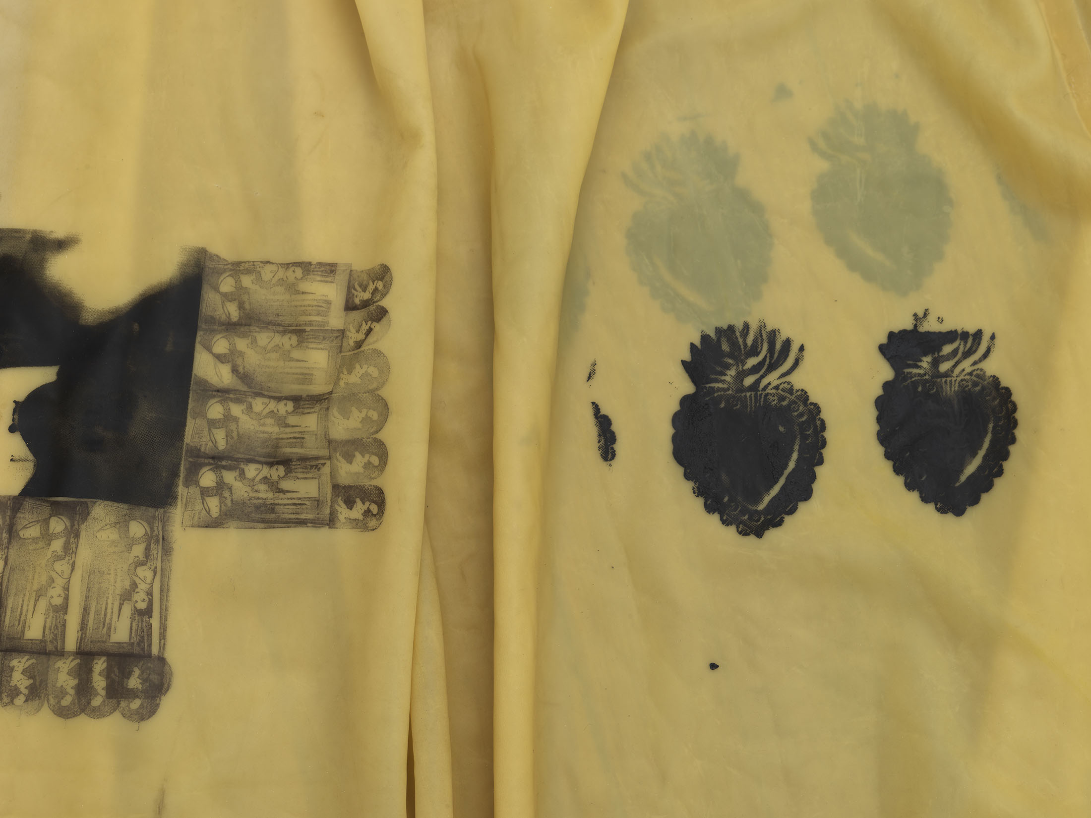 Tenderness is a shield and a sanctuary, a language that gestures toward the divine. Care is mapped at its edges—unseen labor, affect, transaction. Power, support, control, comfort: these forces intersect in private, porous moments, their residue embedded in silk screen, block print, soap, latex, cotton, bedsheets marked by encounter.