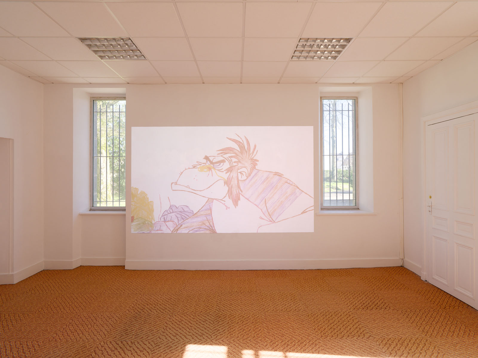 The video by Oliver Beer, placed at the centre of the exhibition, shows us this process in a very simple way. An image from a well-known cartoon seems to be reborn before our eyes, sketch after sketch. We recognise it even before we can put a name to it. A memory forms along with the image.