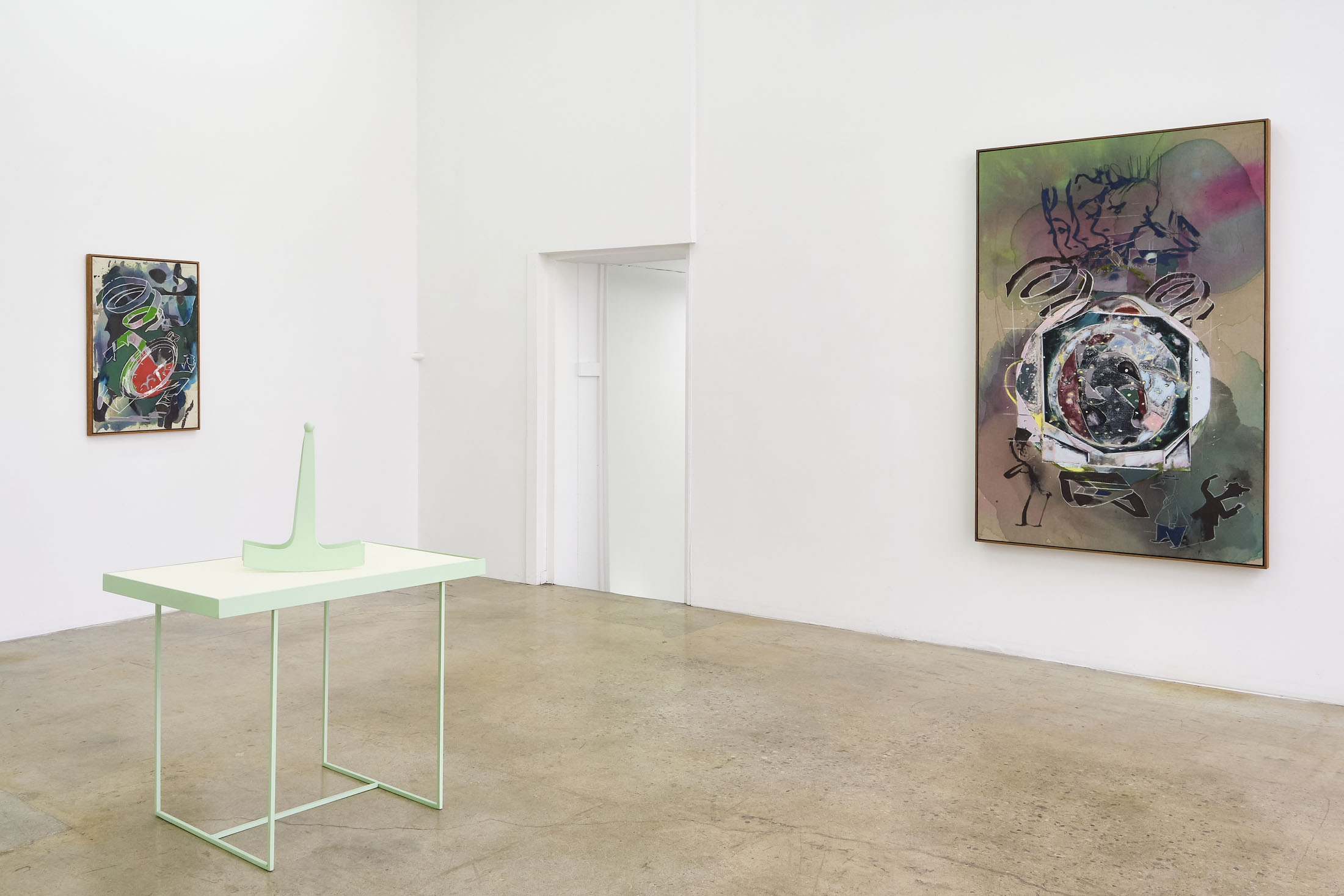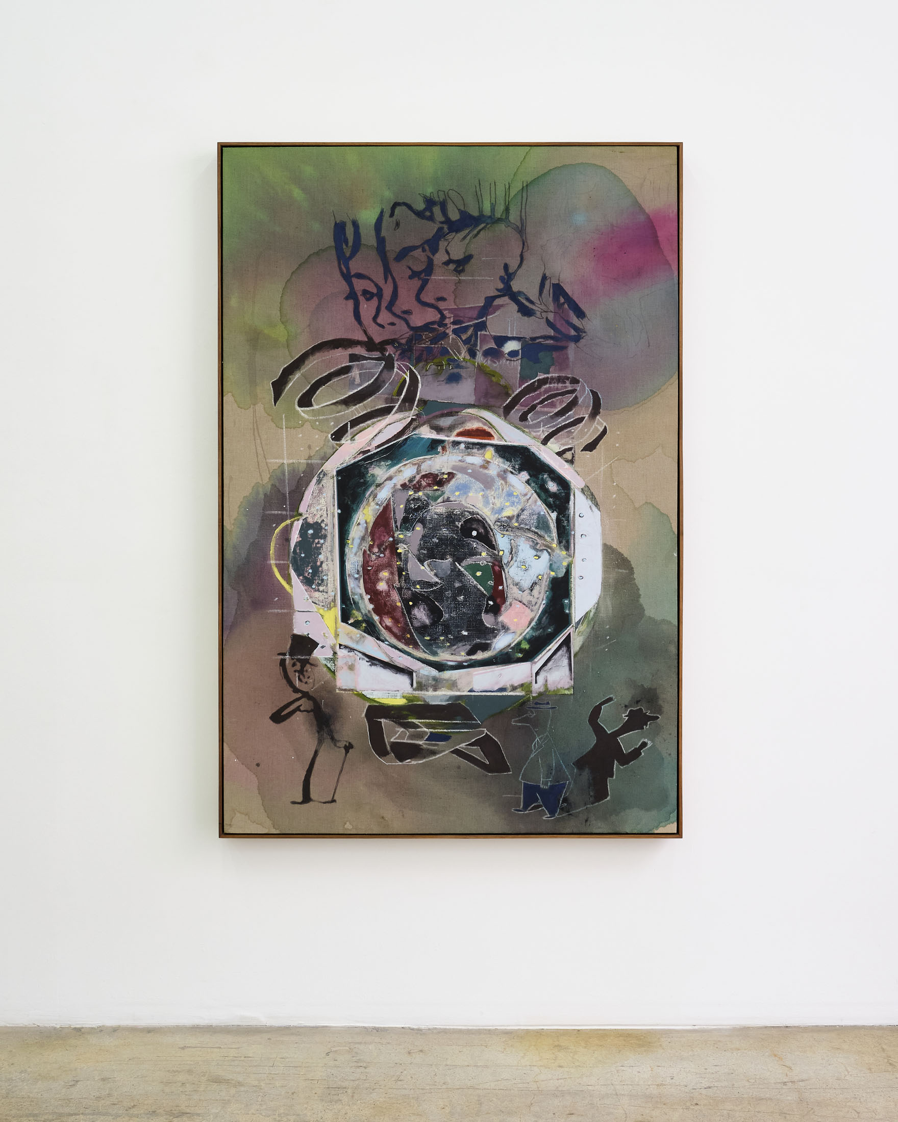 One thing I’ve always liked about your art is the way it purports to organize wholly unintelligible content. One of my favorite illustrations of this can be found in a new painting of yours called “Last of The Moses Codex.” In it, an indecipherable cipher appears scrawled on the grid of a crossword puzzle (an artifact you discovered and bought on Ebay). In your painting, the document is torn down the middle. Beyond it, a midnight void.
