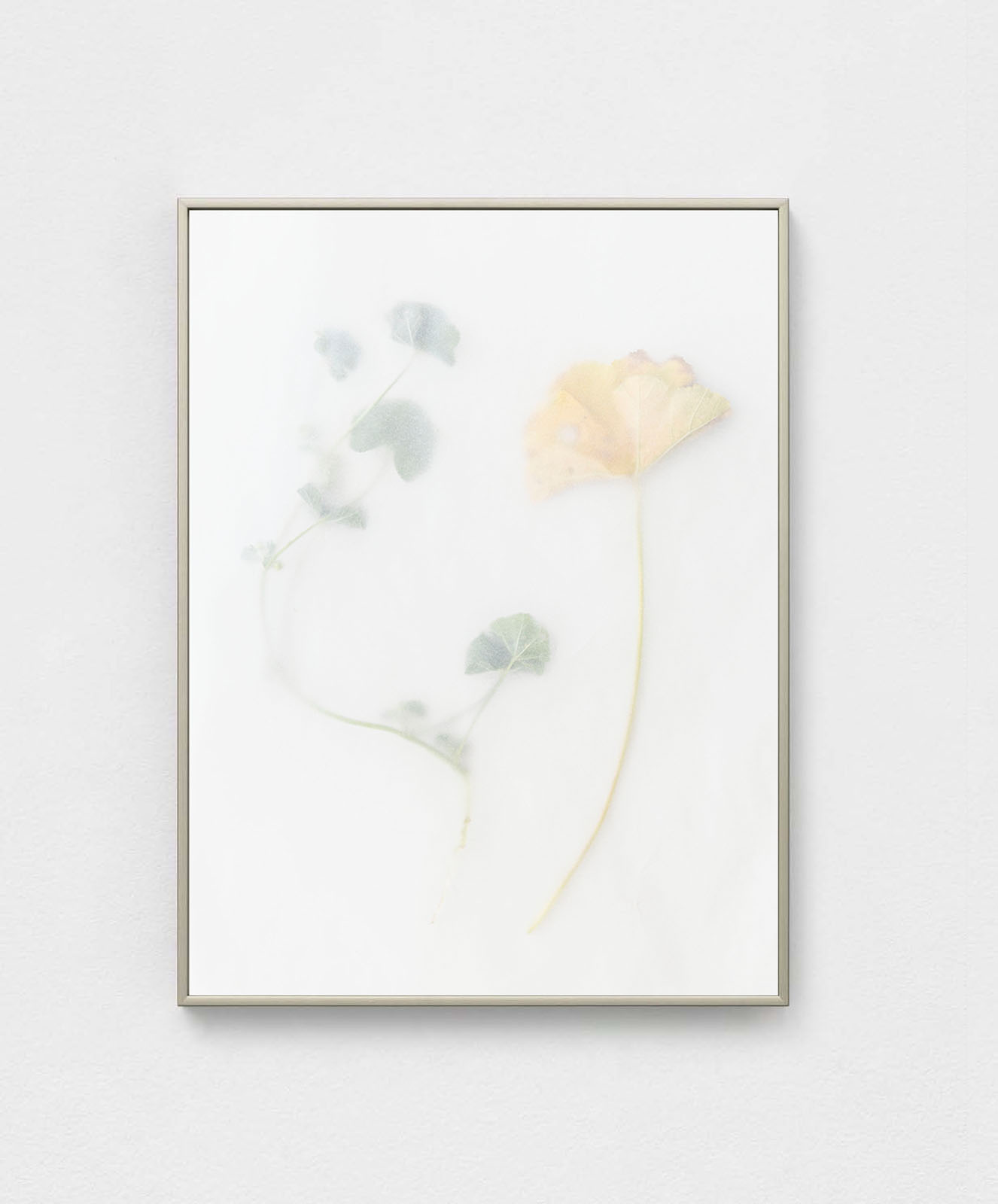 The exhibition also includes Khubayza, a series Guez has been working on for the past two years that documents the wild mallow plant, which grows abundantly across the Levant and holds deep cultural significance. Historically and currently used as a bread substitute during times of famine—its name derived from the Arabic word for “bread”, Khubayza is both personal and political for Guez. Echoing the scientific language Guez collects, presses, and dries leaves, stems, and roots, arranging them between sheets before photographing them from above. The resulting images appear suspended, neither fully anchored nor entirely gone.