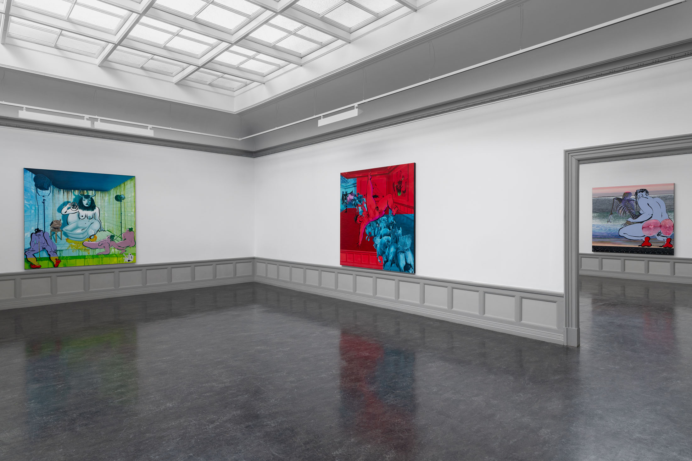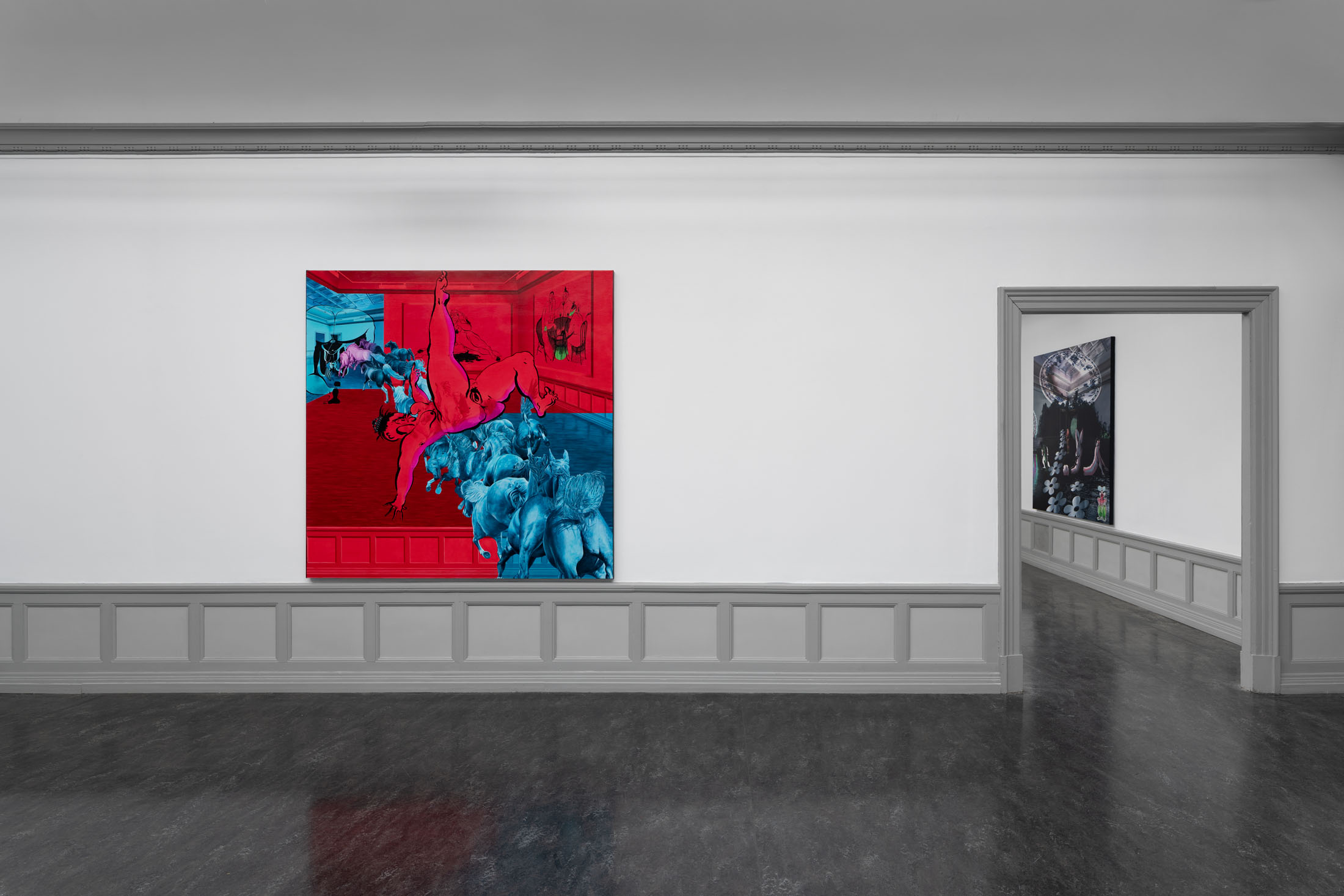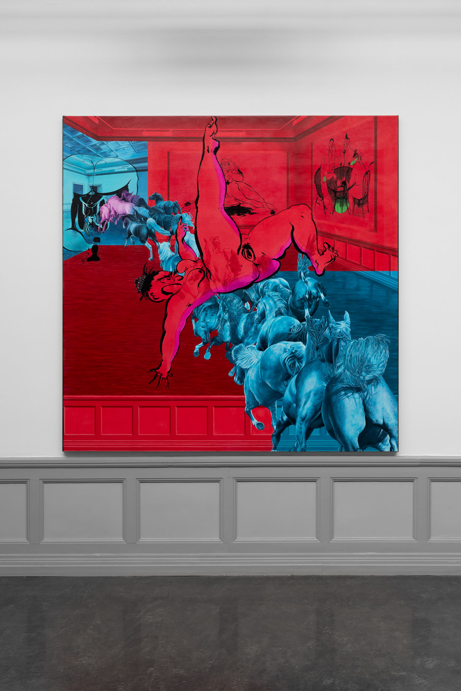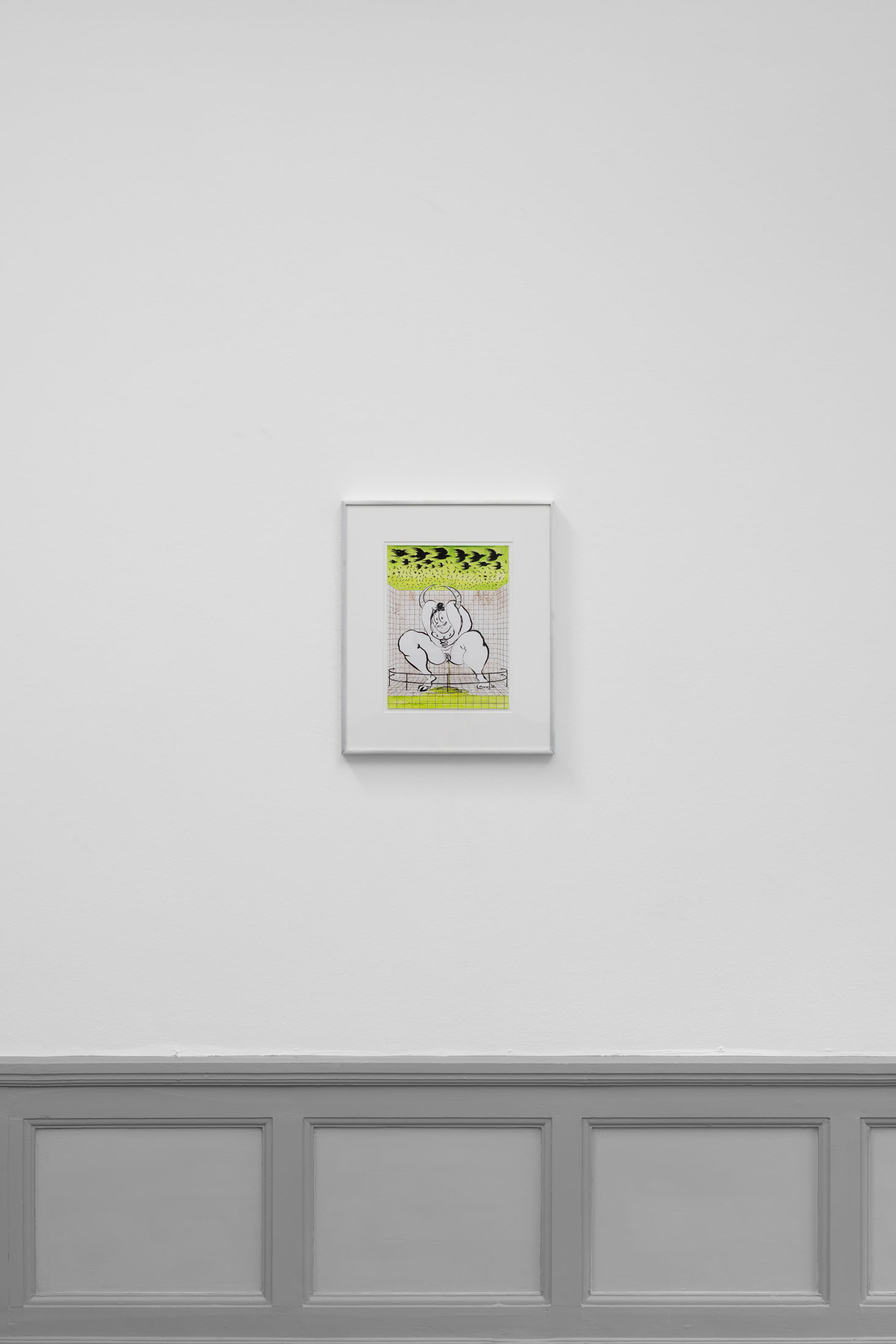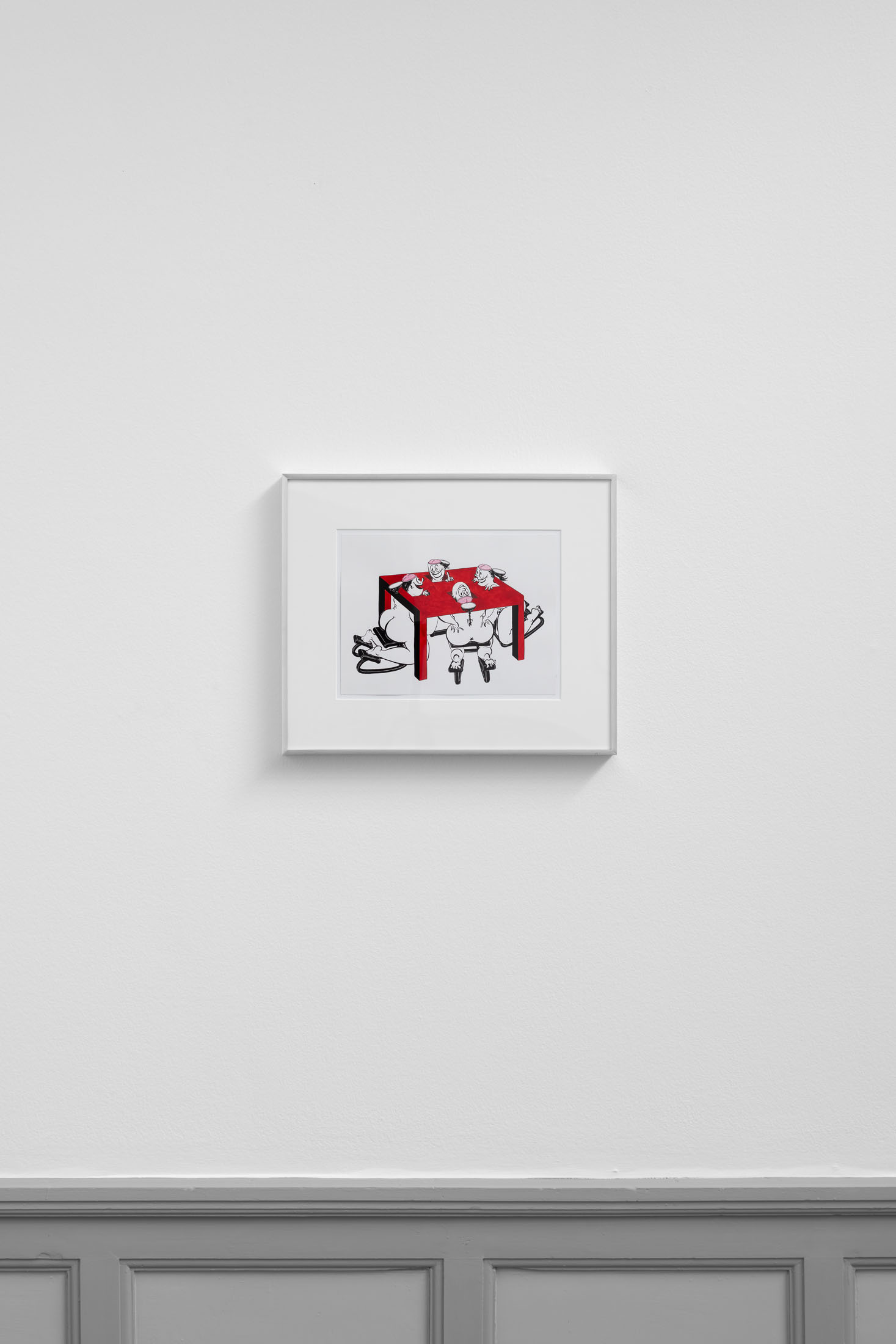 At Kunsthall Stavanger, Fatebe Shadows unfolds as a vivid exploration of the individual and collective subconscious through the figure of Fatebe as she moves through shadowed interiors and psychic spaces, including several of the Kunsthall’s own galleries. This collection of drawings and paintings captures fleeting moments in the life of Fatebe, where she inhabits rooms and stages that become sites of multiplicity, ritual, and drama.