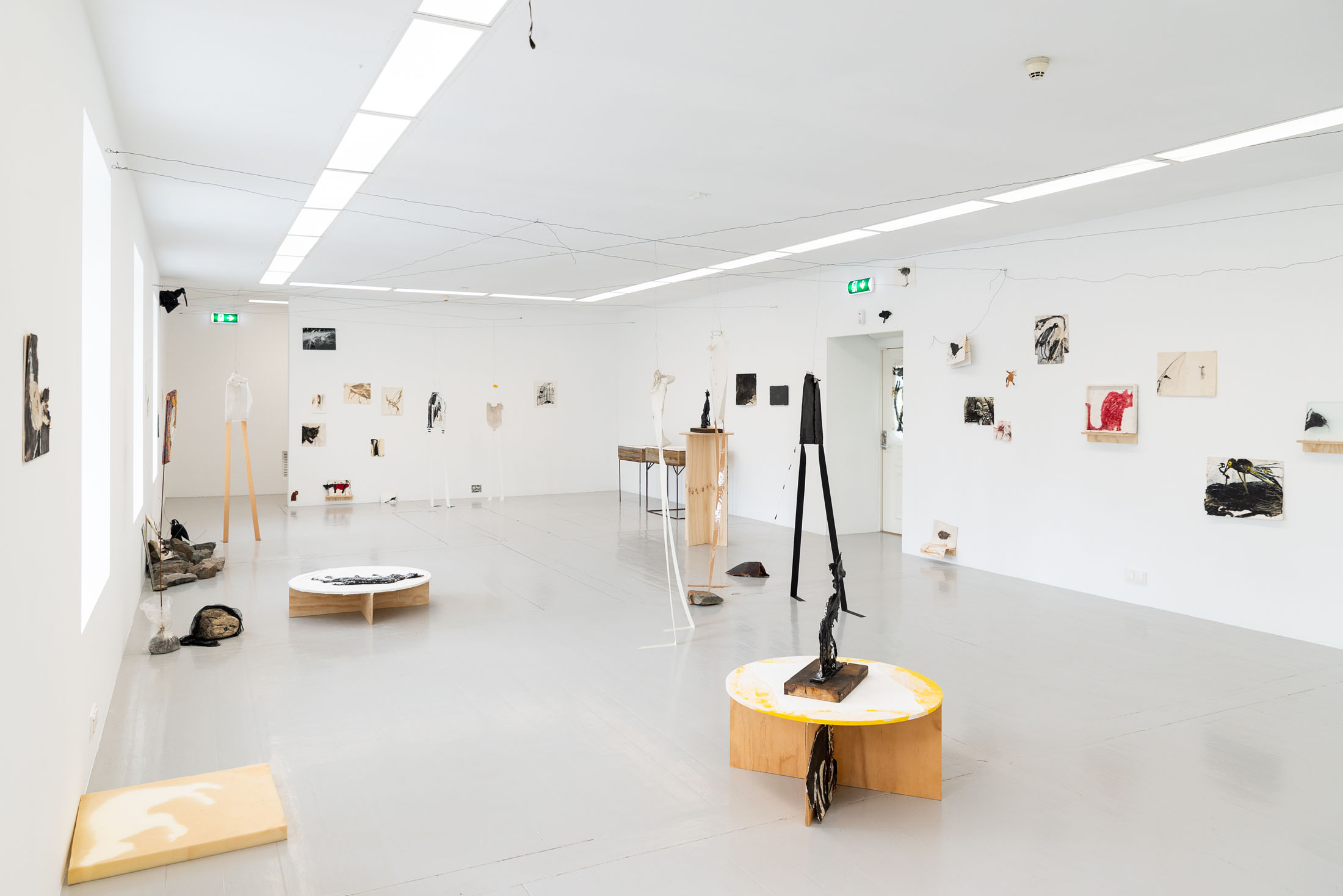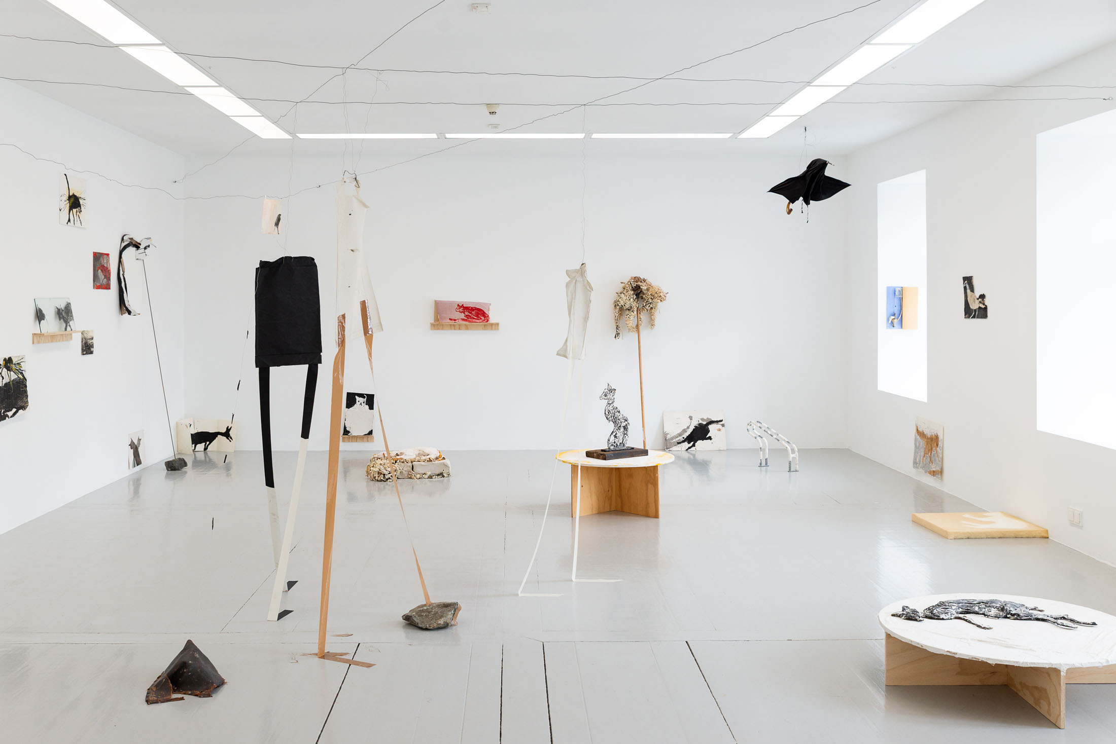 This summer, Hordaland Kunstsenter hosts an extensive solo exhibition by Bergen-based artist Elke Karnik, transforming the space into a rich habitat of creatures and stories. The exhibition features a diverse collection of paintings, sculptures, drawings, and a video, providing a comprehensive overview of Karnik’s work and experimentation in recent years.