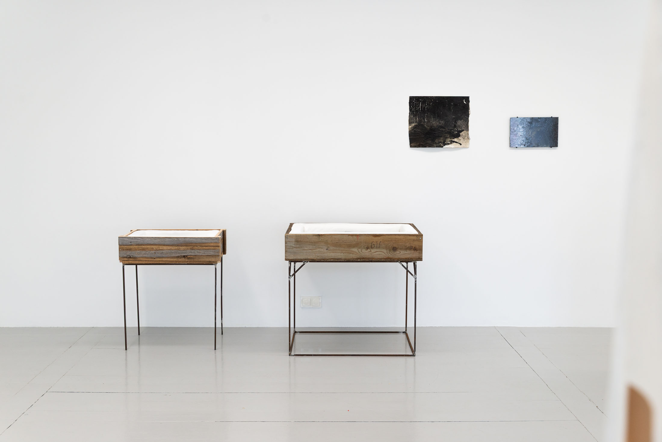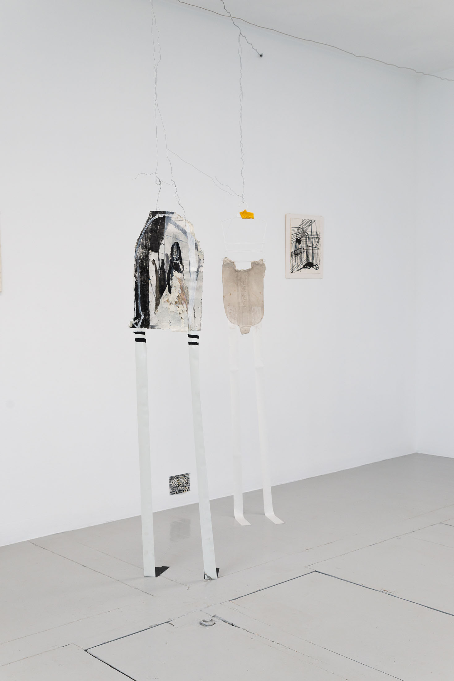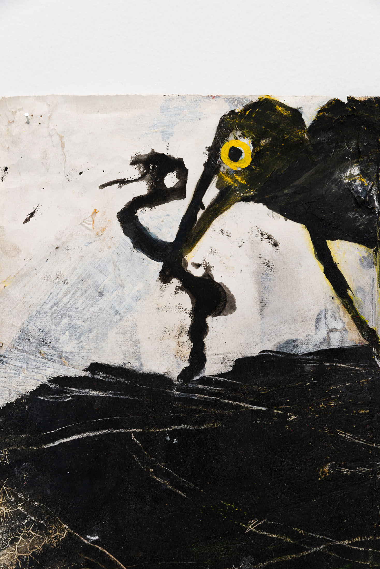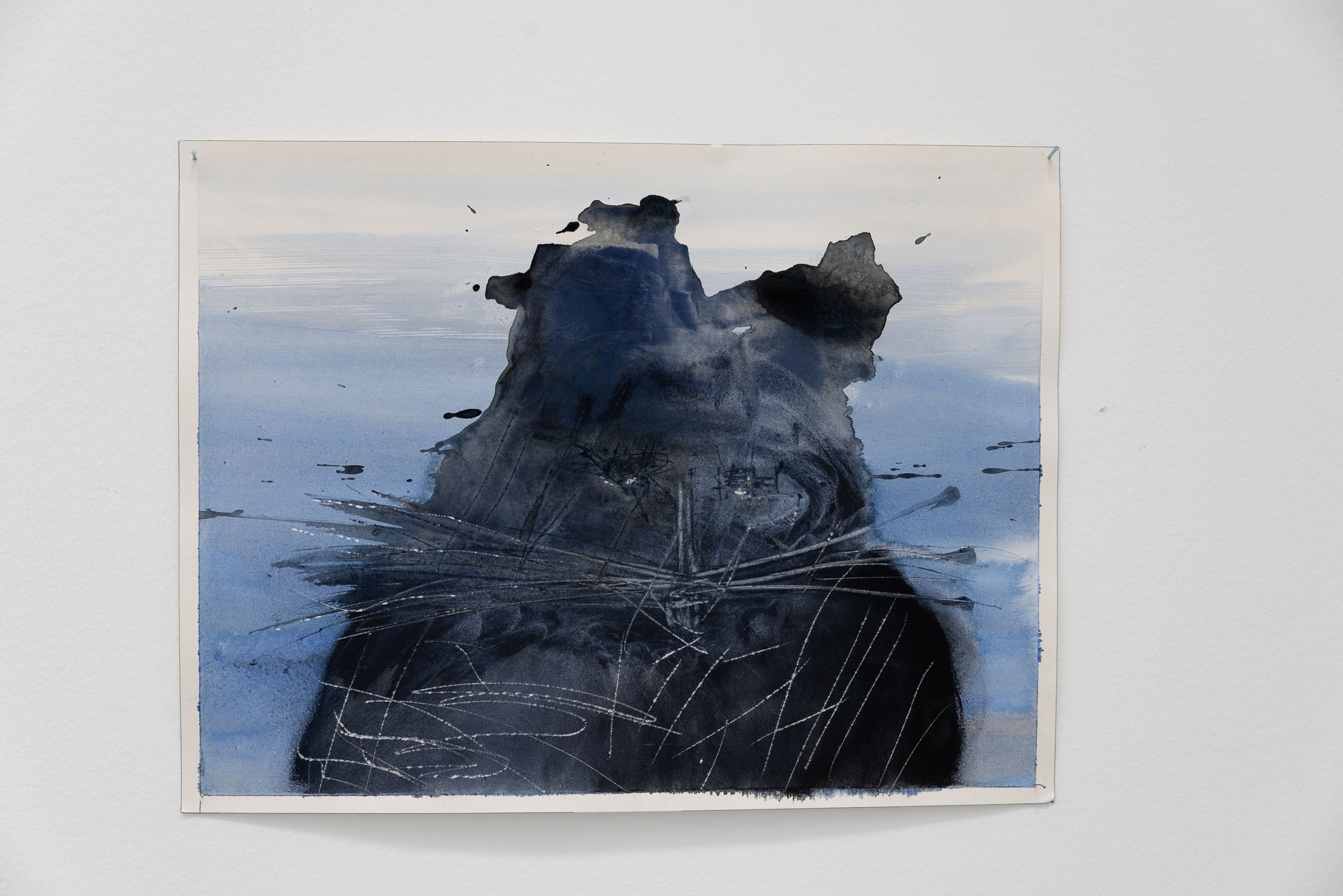 In Vandring we meet a number of animals, both in drawn and sculptural form. Several of them are made from repurposed, sometimes found, materials. Karnik reuses and manipulates drawings on paper, scraps and bits, working with them until each finds its rightful place and purpose. In the exhibition we also encounter sculptures made of glass from broken beer bottles, melted and reshaped, and broken umbrellas that have been transformed into birds.