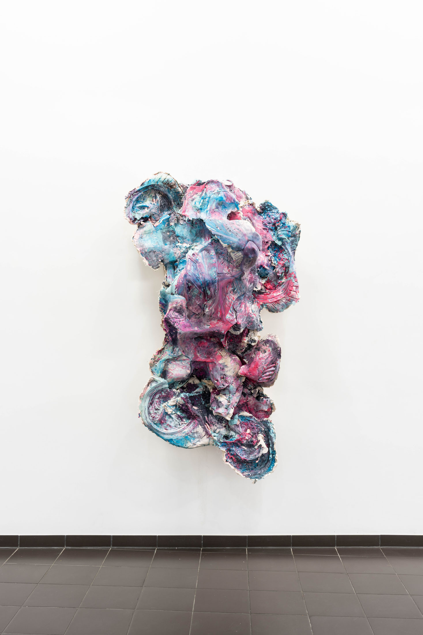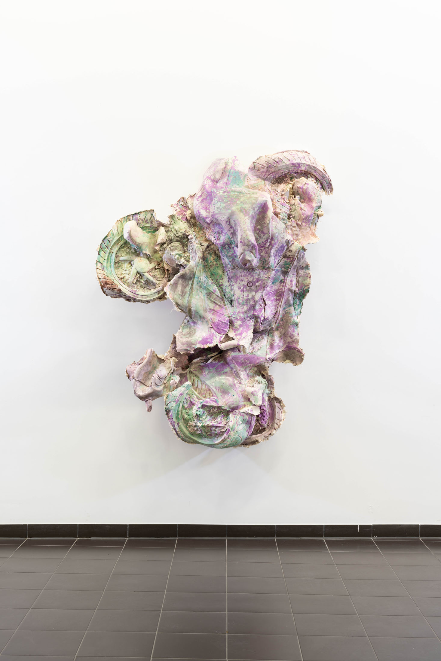 Neumann primarily works with plaster and concrete, casting these materials and coloring them with pigments. As shaping elements, she uses everyday objects that she dismantles, cuts apart, and reassembles in new ways. After casting, she selectively refines the surfaces: some areas are polished to a high gloss, while others are deliberately left rough and unprocessed.