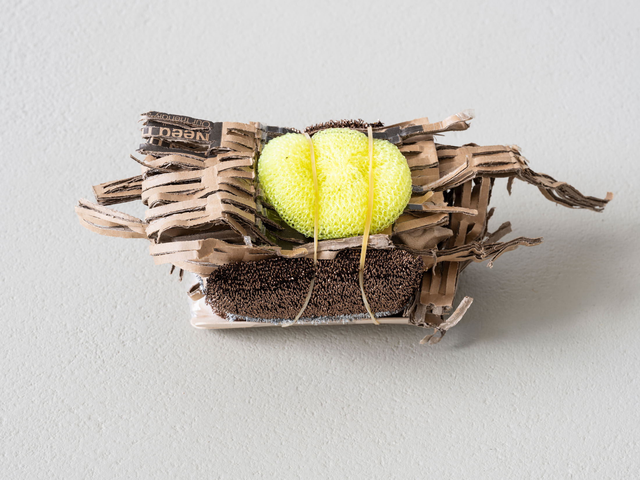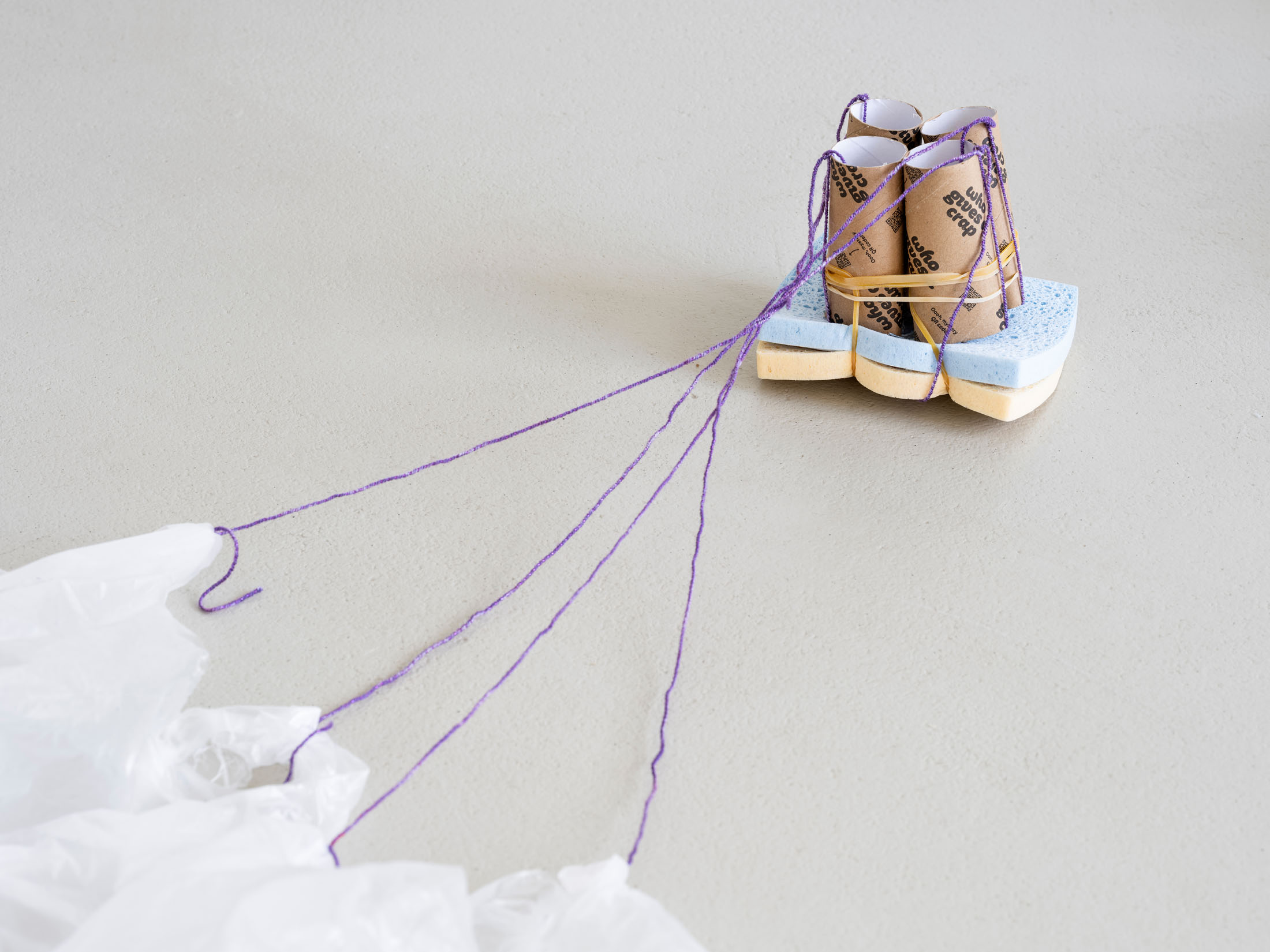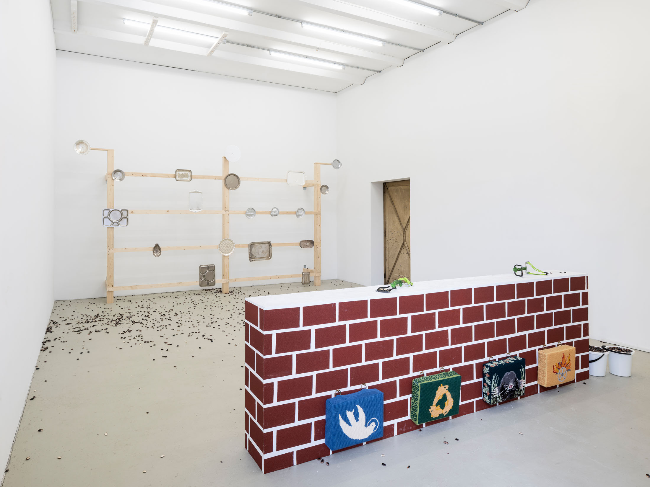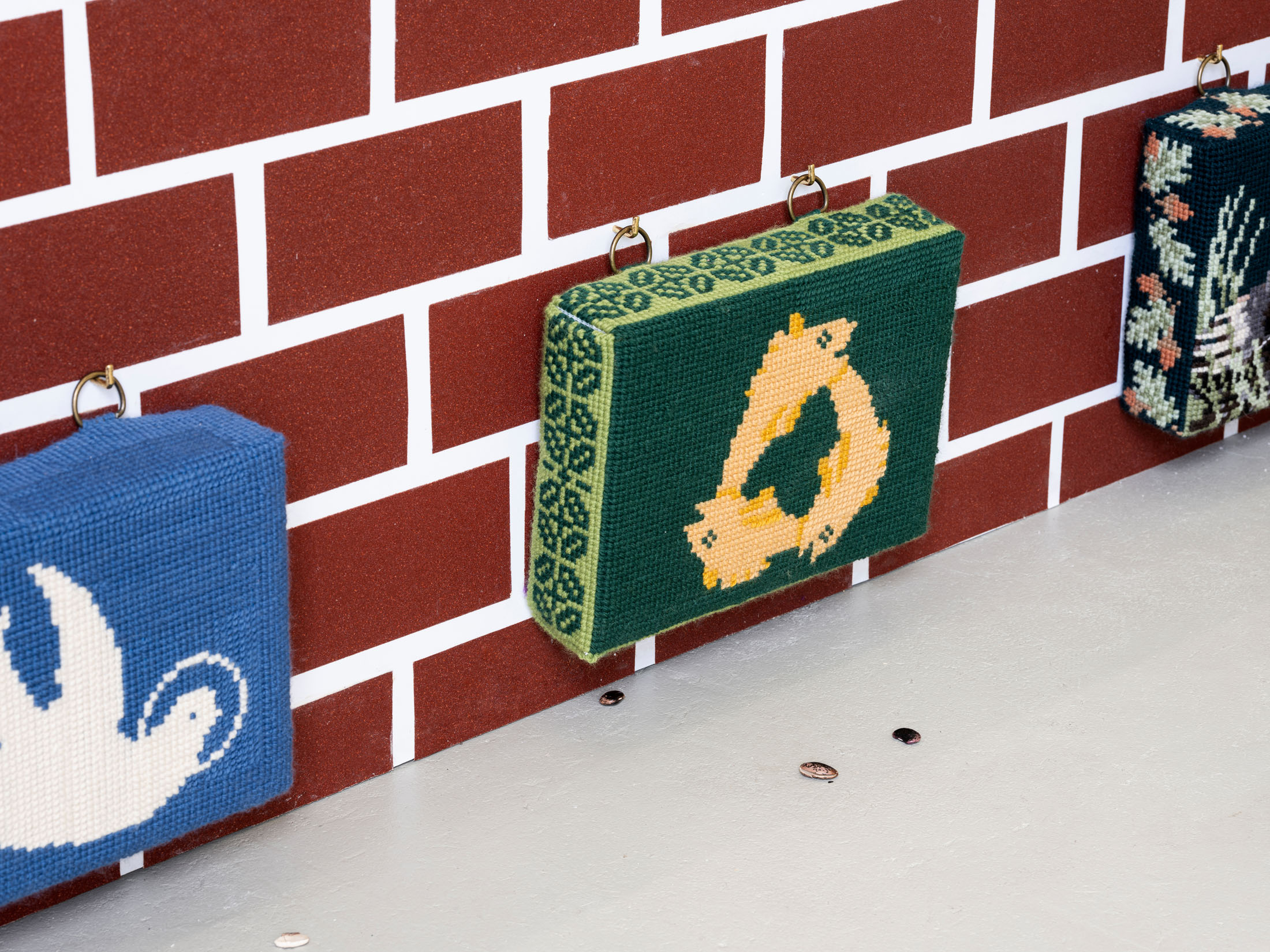 Her artistic repertoire of forms is fed by found objects, materials and visual languages that the artist draws from contexts such as DIY culture, collective self-organisation or educational practices. Organic materials enter into a dialogue with digitally generated forms; everyday objects encounter (mytho-)poetic narratives, creating hybrid spaces of image and meaning. Language does not act as an instrument of control or attribution, but rather as a means of shifting, multiplying or deliberately destabilising meanings.