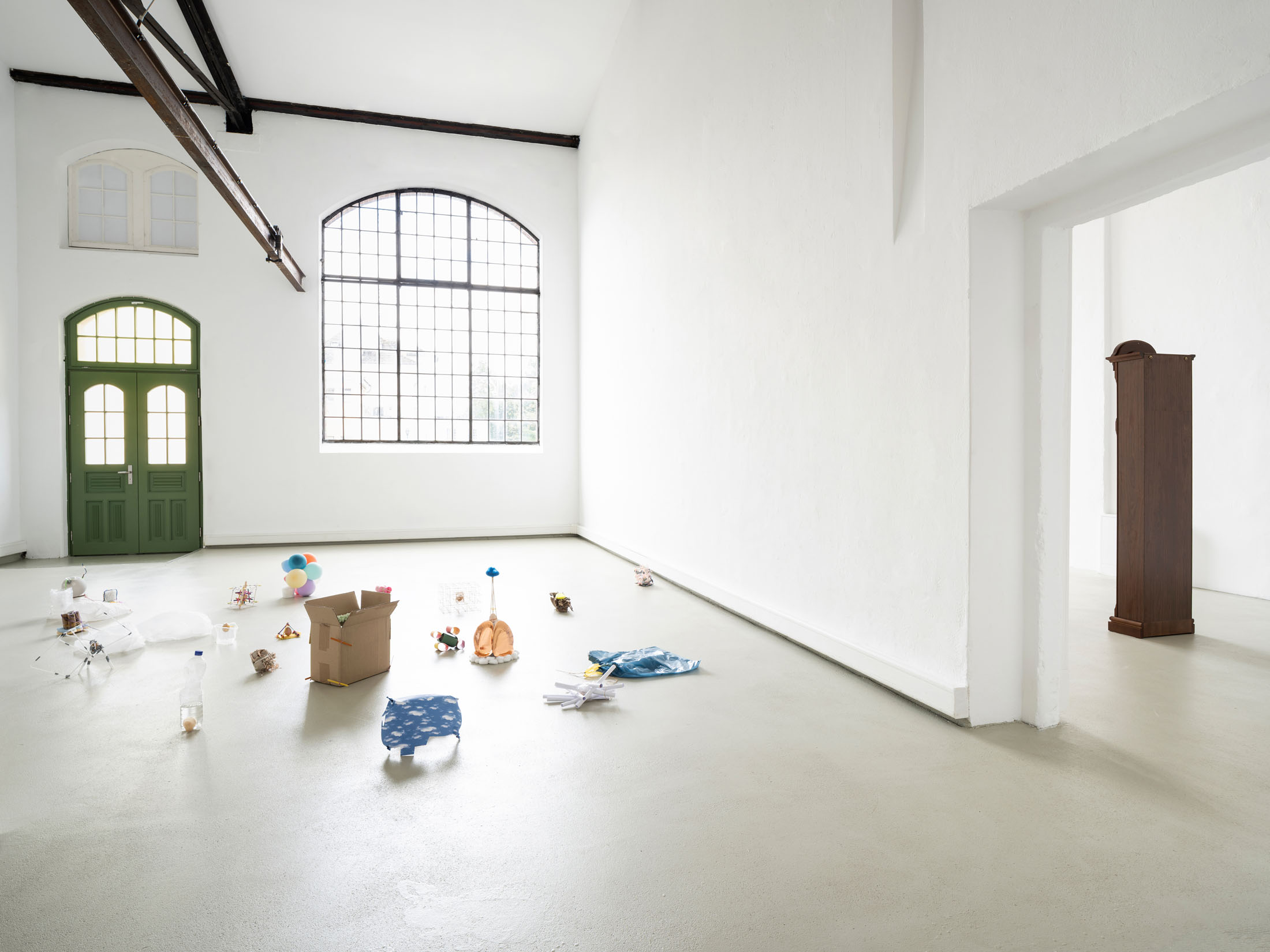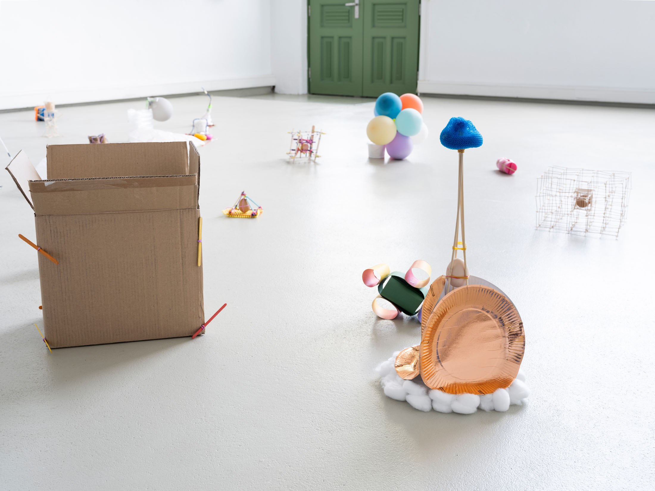 As the title suggests, the exhibition we‘re doing alien‘s milk aren‘t we thus rejects clear attributionsand linear interpretations and instead points to the potential of the unknown, the uninvestigated and the non-rationalisable. Aesthetic-experimental associative spaces are created in which alternative forms of togetherness and participation can be imagined and tested, beyond domination, instrumentalisation and normative attributions. This is particularly reflected in performative formats which contribute to the exhibition as a space for re(learning), and which were and are created in a cooperation between the artist, the StarterClub of the Meckelnburgisches Staatstheater, and the Kinderschutzbund Schwerin.